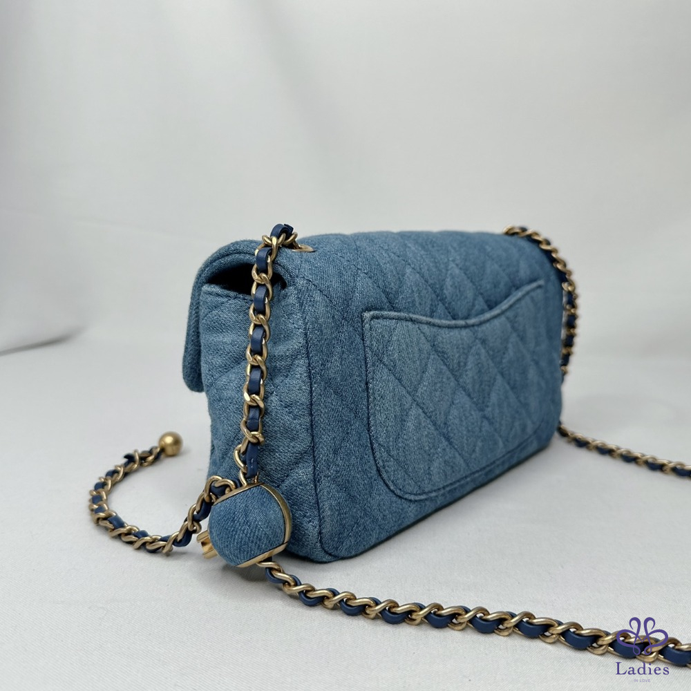 產品信息 【CHANEL 全新CF 20丹寧金球口蓋包】 #金扣晶片版 #牛仔金球款 22年早春系列小香最火的牛仔口蓋包 丹寧牛仔布x炙手可熱金球款 極具收藏價值 整體包況約9成9新,二手商品均有正常存放痕跡 型號:AS1787 尺寸:20x12x7cm 附件:原廠盒、原廠紙袋、冊本 #A113092602