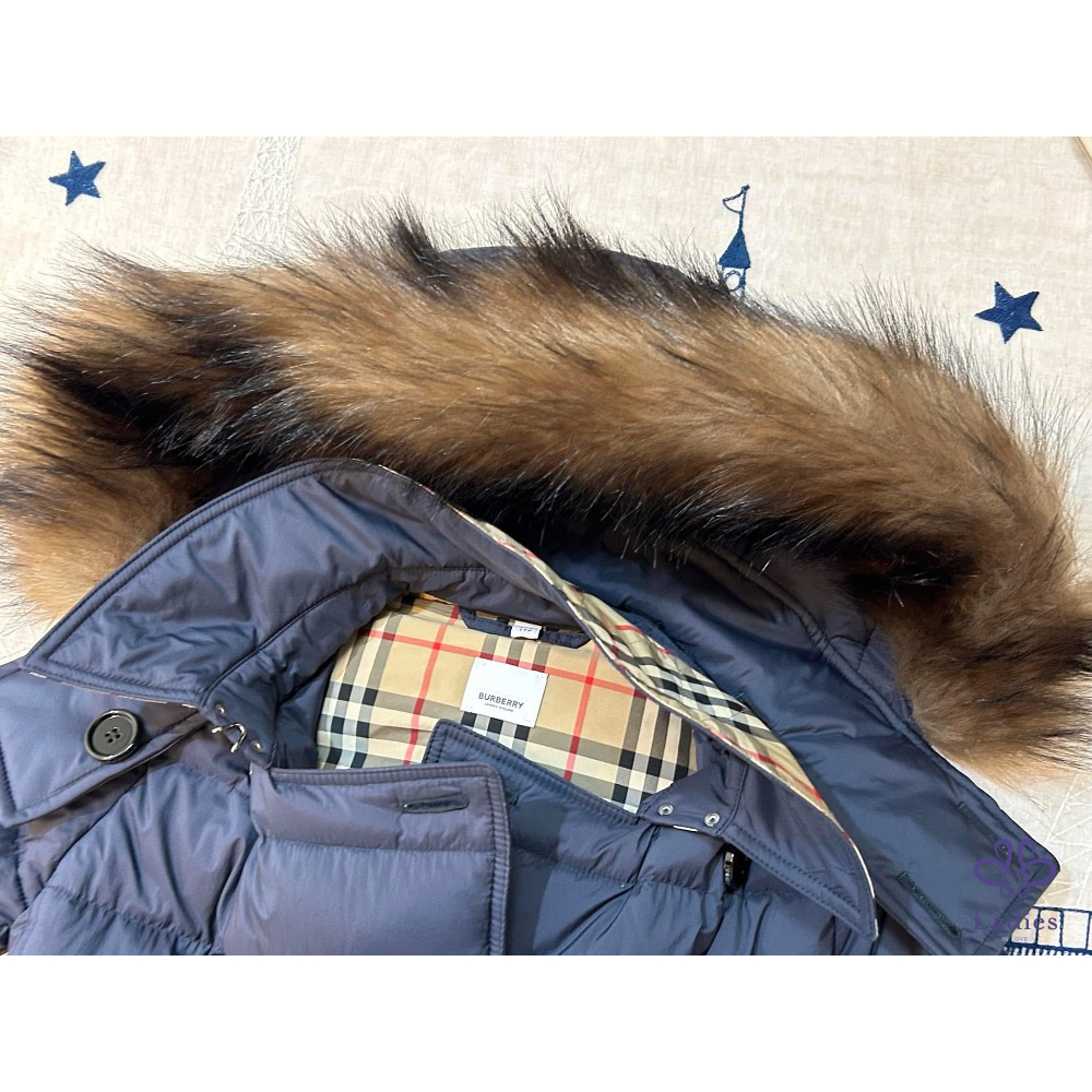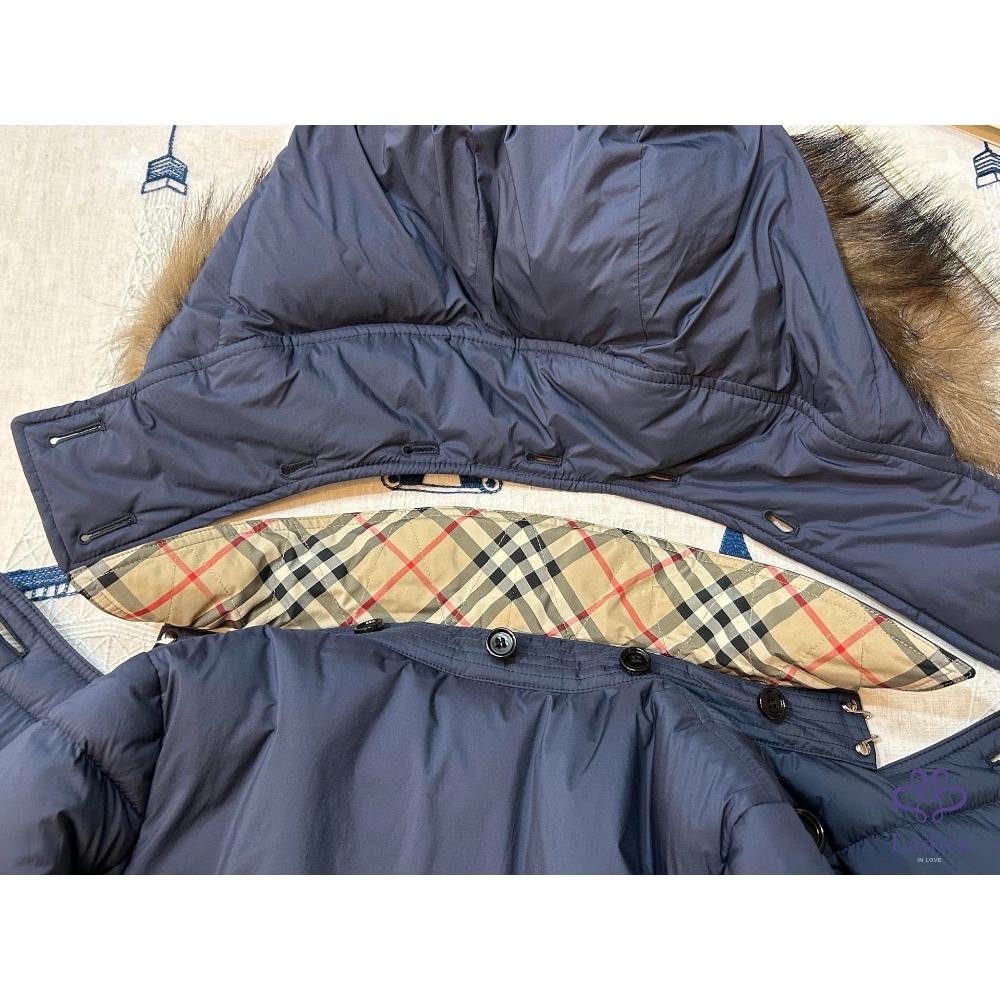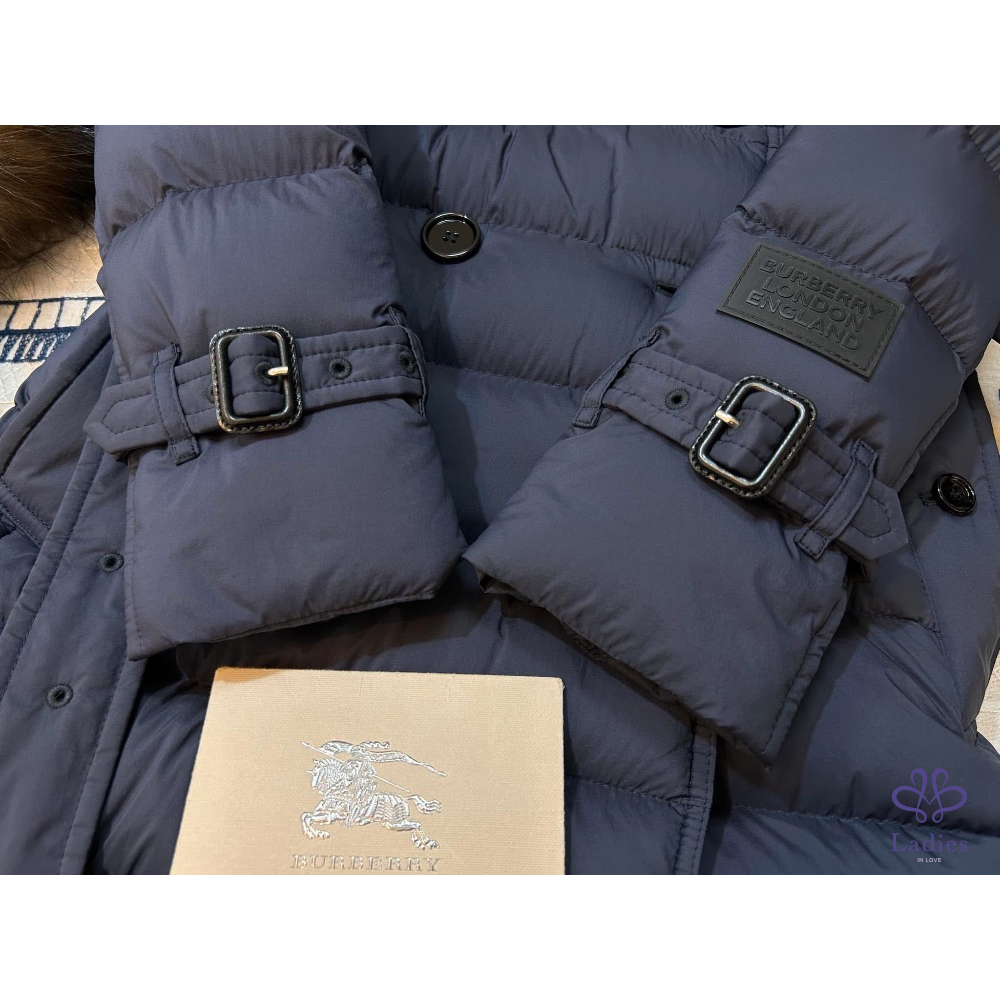 ????BURBERRY英國黑標海軍藍連帽鵝絨大衣