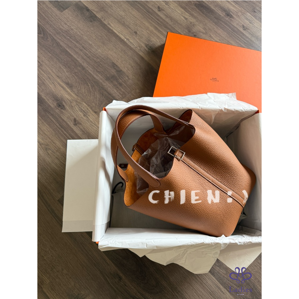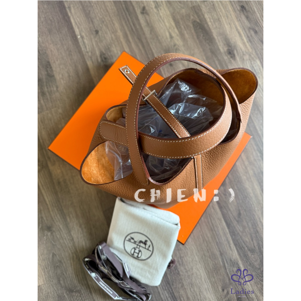 全新HERMÈS Borsa Picotin Lock 22 金棕。銀