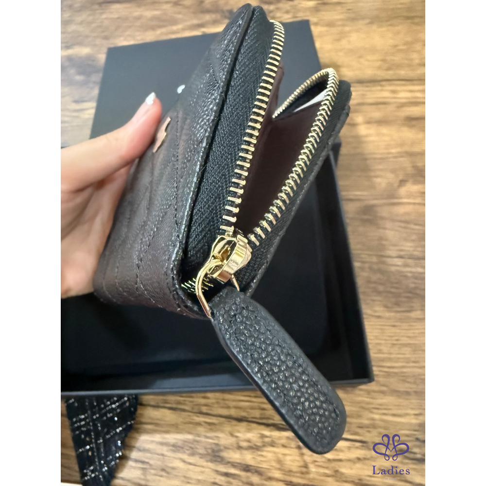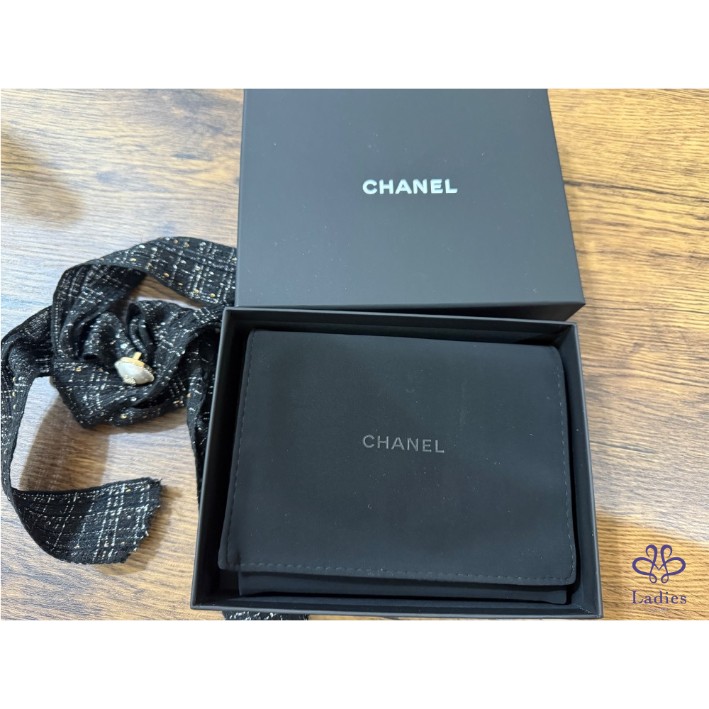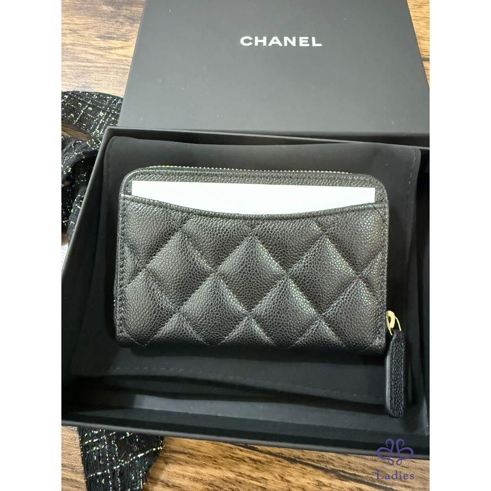 Chanel 加大版 拉鍊零錢包 黑金牛 全新全配