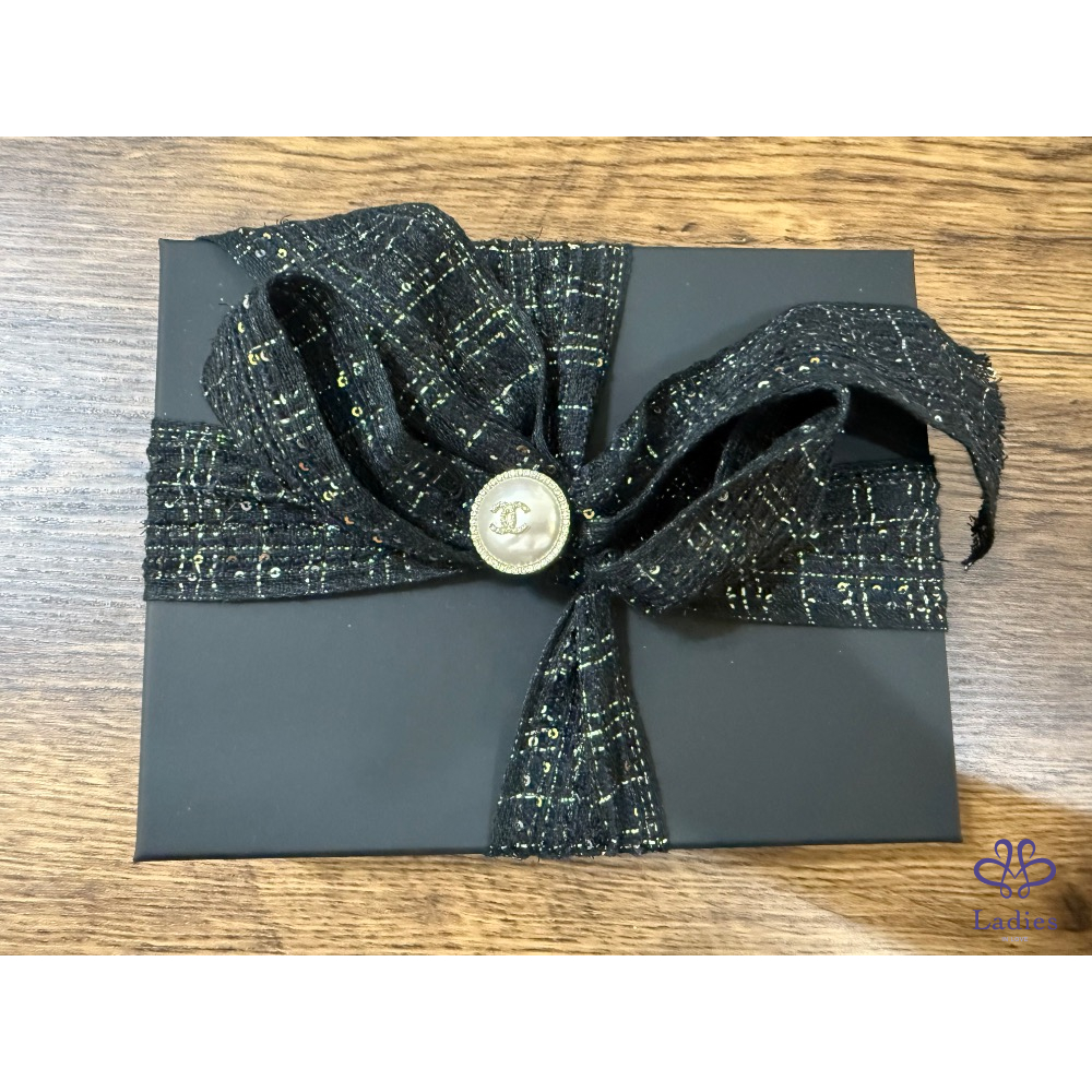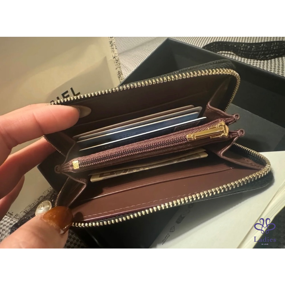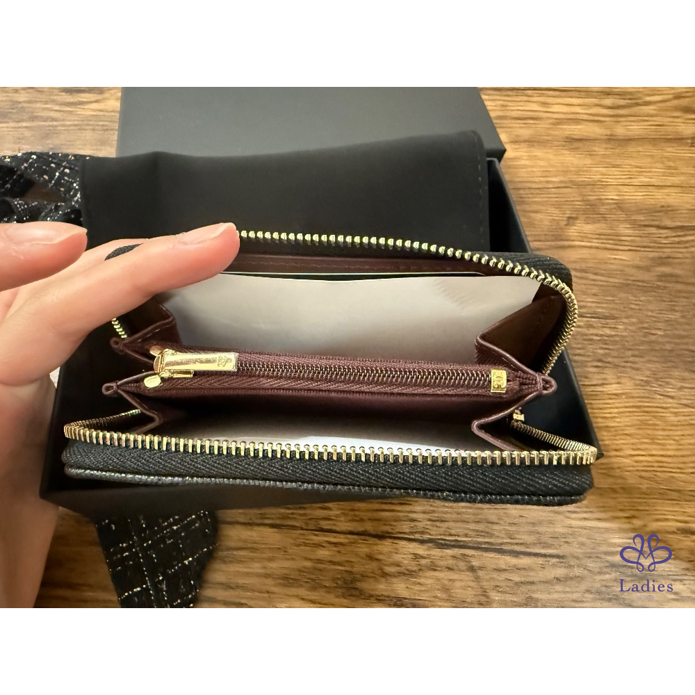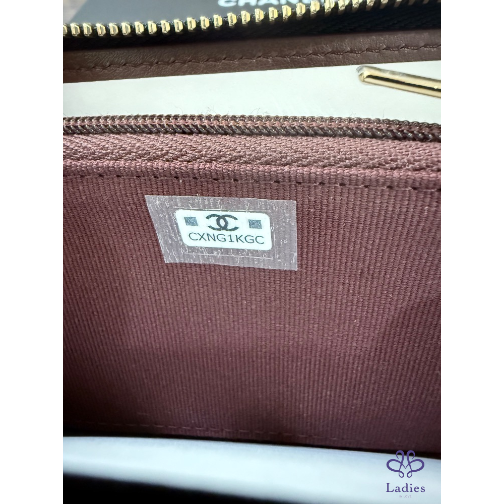 Chanel 加大版 拉鍊零錢包 黑金牛 全新全配