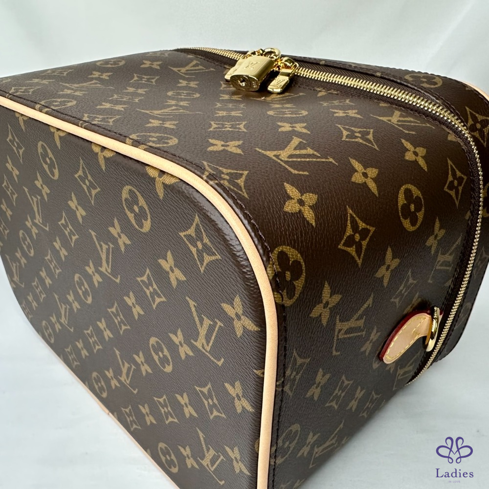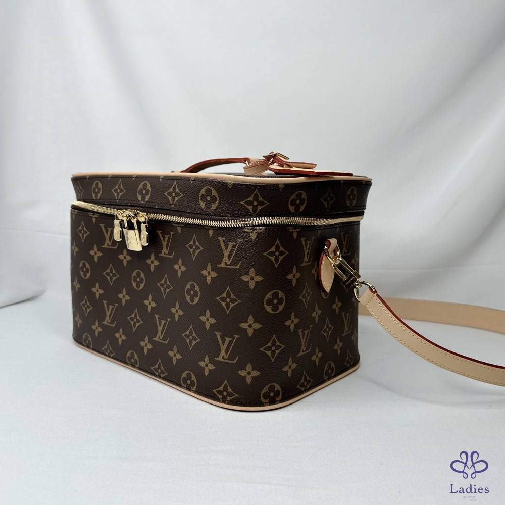產品信息 【LV 全新新款Nice Vanity大化妝箱】 #晶片版 #專櫃價10萬4千 經典Monogram帆布打造,實體容量絕非開玩笑 超大型容量非常適合新秘/造型化妝師等職業 新款雙邊設有D扣+背帶,也可隨心更換背帶使用 整體包況約9成9新,二手商品均有正常使用/存放痕跡 型號:M44935 尺寸:31.5x20x21cm 附件:原廠防塵袋x2、原廠背帶、鎖匙組 #A113032101