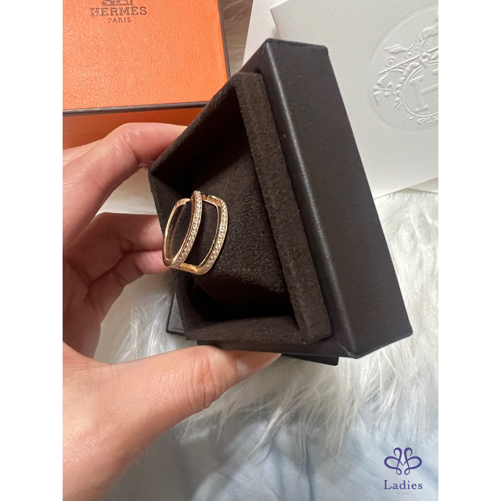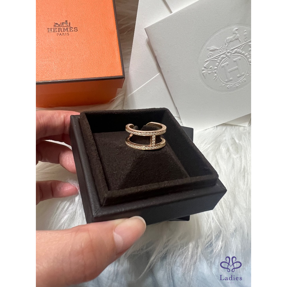 首頁 精品配件 售95新Hermes 經典全鑽玫瑰金戒指