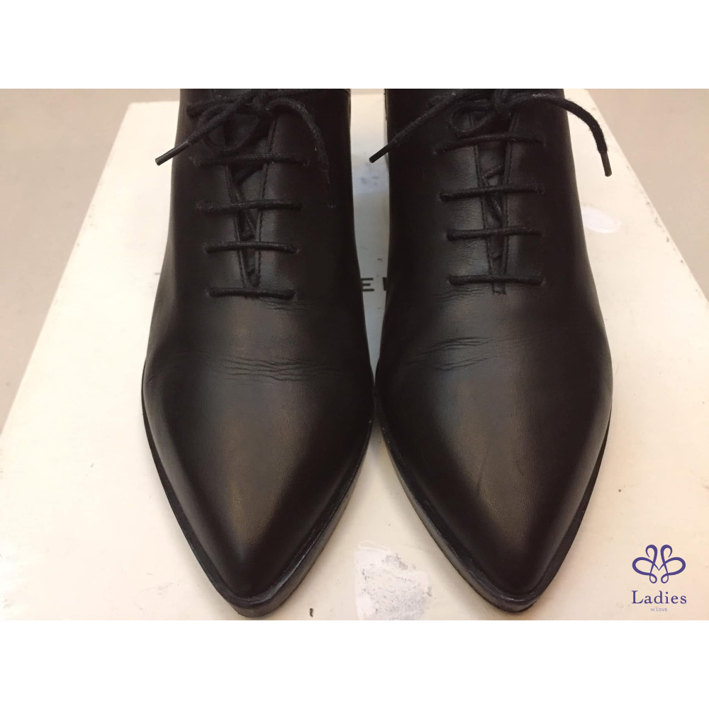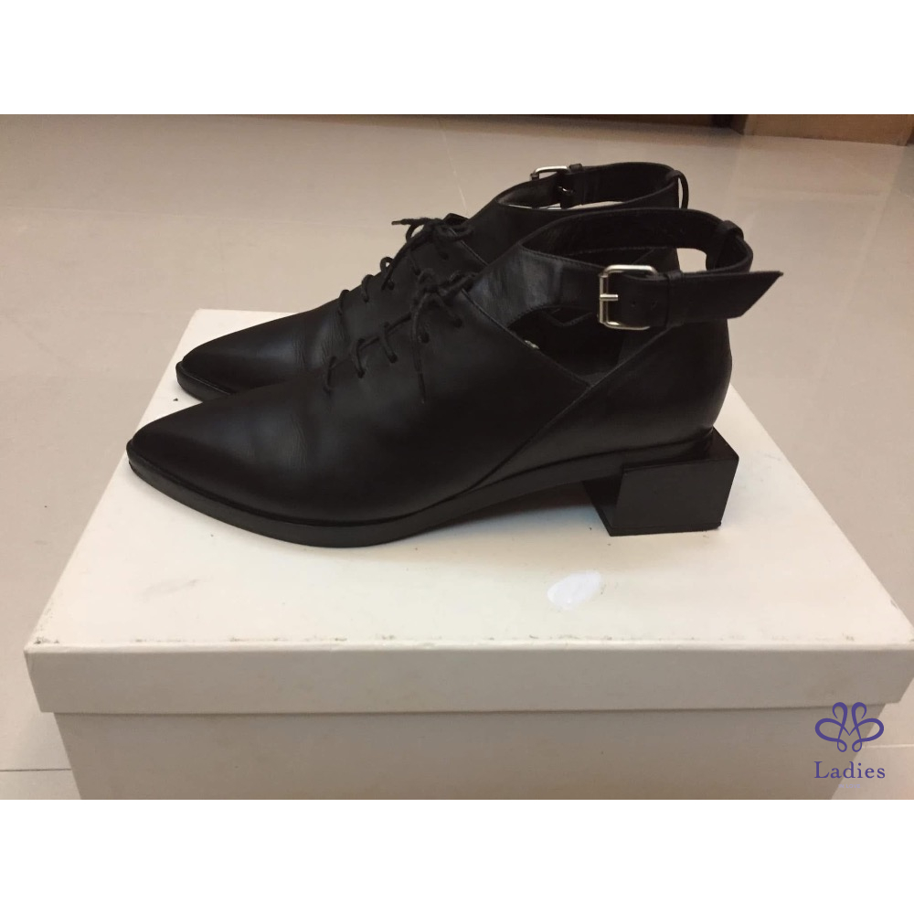 這雙超有造型的皮鞋全真皮皮質柔軟好穿尖頭綁帶腳背處連結側邊鞋釦四方形後跟超有個性帥氣有型無論褲子.裙裝都很適合喔附件:鞋盒 出清價$7280含運售出不退感謝辛苦管理員謝謝美女們推喔她團