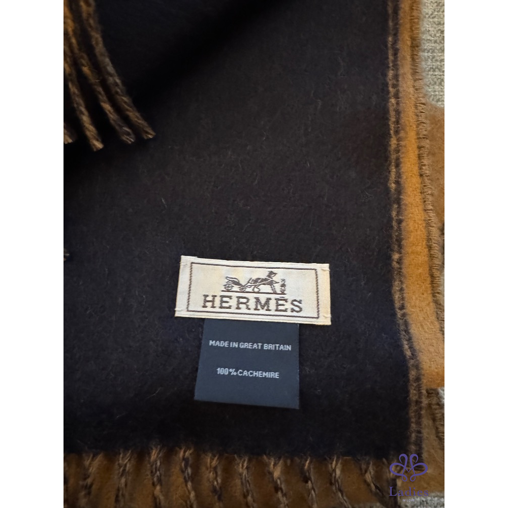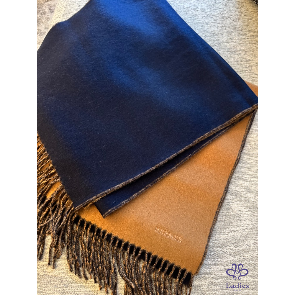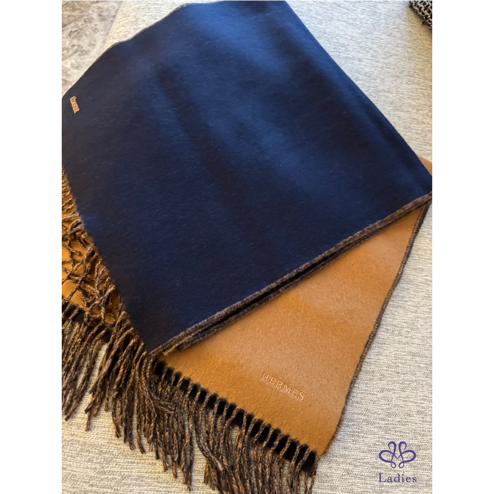 素色雙面喀什米爾圍巾飾有精心刺繡的"Hermès"標誌。