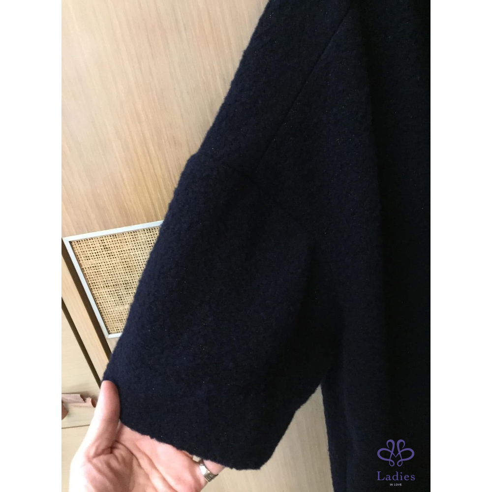 深藍色毛呢大衣濃濃的日式風格領子處也可自己調整想要的感覺兩側有口袋左側還有一條腰帶營造出慵懶的氛圍感重點是裡層摻金線車縫會讓外層看起來一閃一閃發亮真是低調的華麗衣服很新沒有瑕疵 出清價$7880含運售出不退感謝辛苦管理員謝謝美女們推喔她團