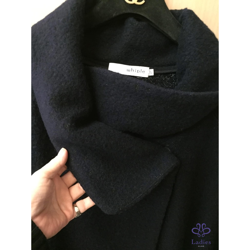 whiple藍色毛呢大衣購於專櫃約$18000穿過幾次尺寸F長92胸70肩73寬鬆版沒什麼限制都可以穿