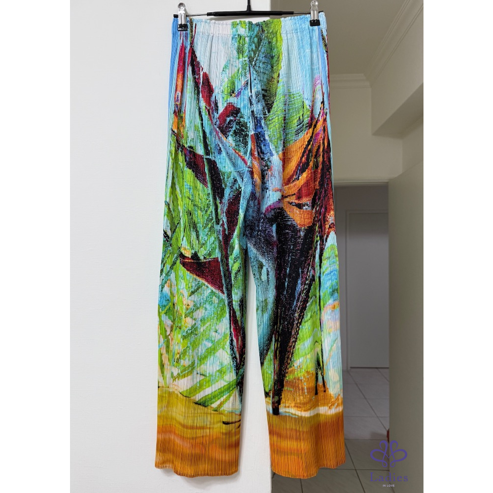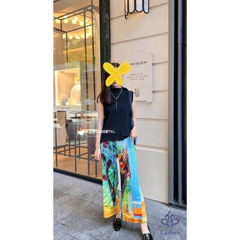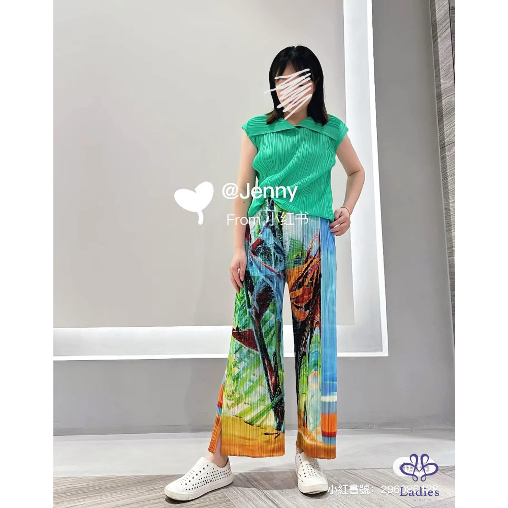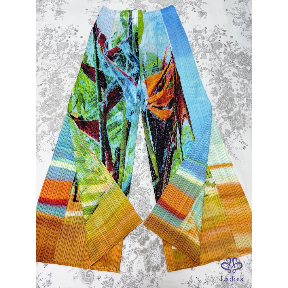 售三宅一生Pleats Please 南國冰晶花霧皺褶寬褲,23年7月經典款, 融入空氣中飄揚的印花靈感,帶有優雅質感,與同色系單品或是相近色搭配,顯現白皙好氣色,營造出眾高級感;