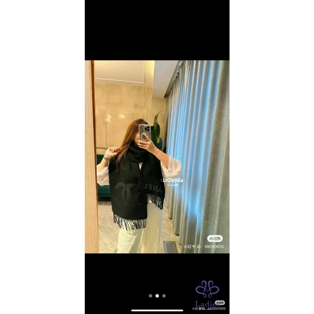 產品信息 香奈兒24A羊絨羊毛圍巾黑色戴銀線閃C 小香家代表的黑色圍巾,在冬天是一條難求~ 此款有55%羊毛、28%Cashmere,柔軟舒適 又有厚度跟長度、保暖好圍 黑色搭配銀色線織成的大雙C及Chanel字樣LOGO 隱隱約約的閃亮,低調又高級、很有質感, 是銀線織成的雙C,沒有掉粉的困擾 全新全配,台灣購證 售價:34500