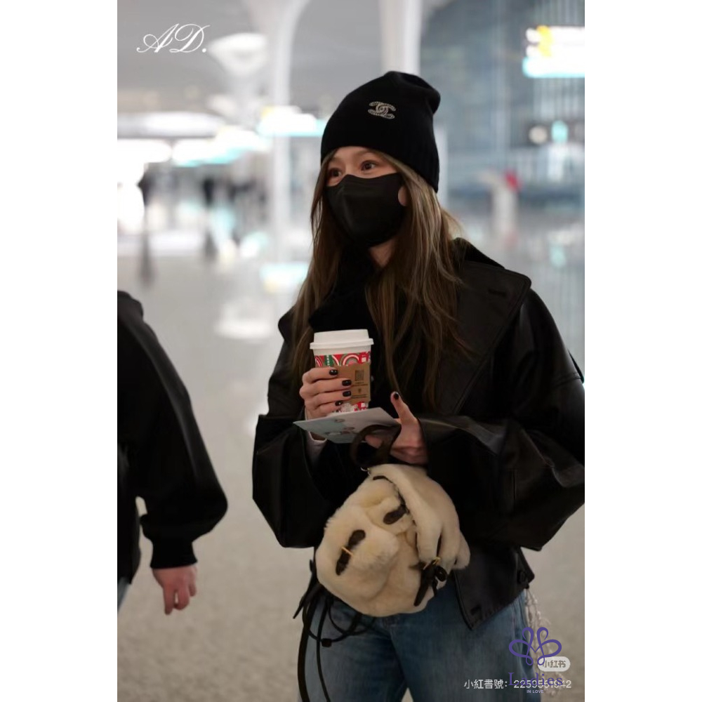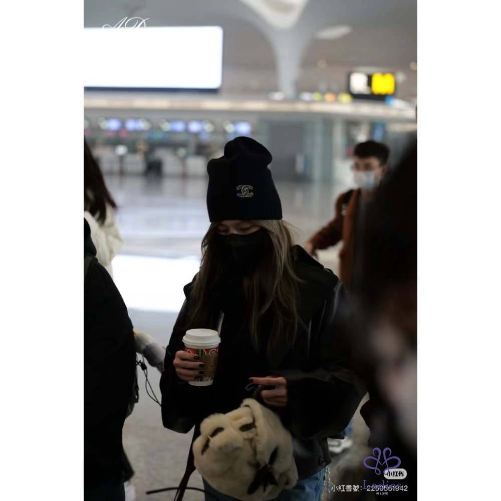 全新 王心凌同款 Chanel 25C 縫線外雙C logo 喀什米爾冷帽毛帽