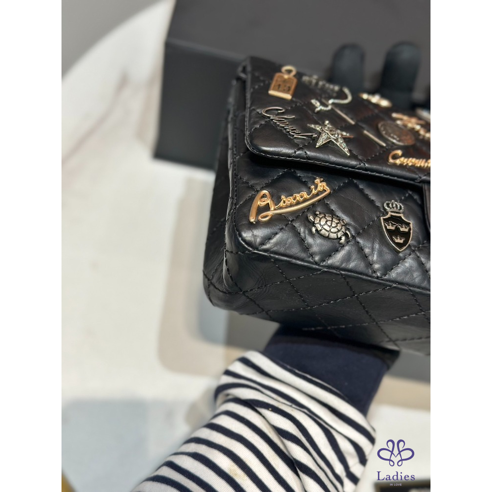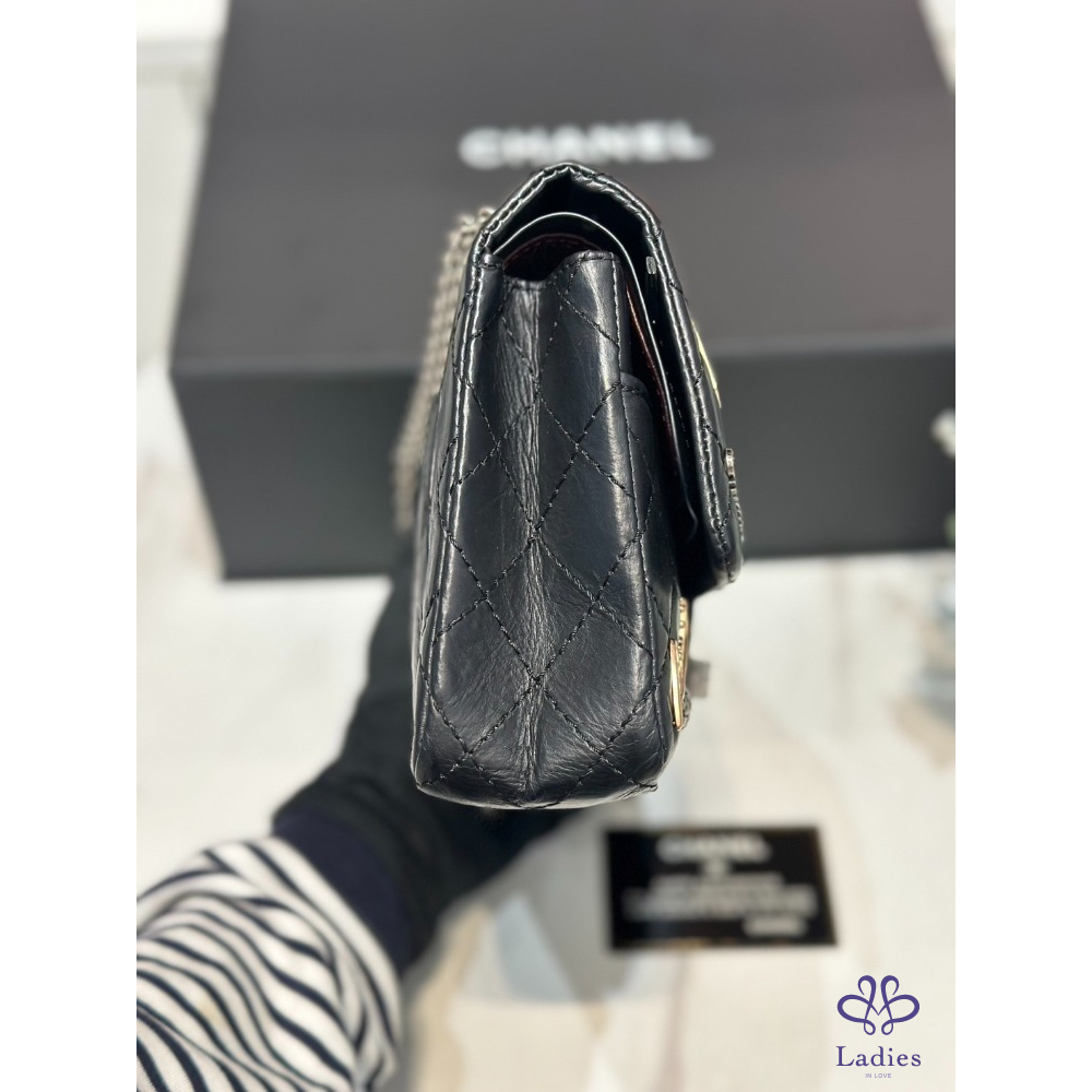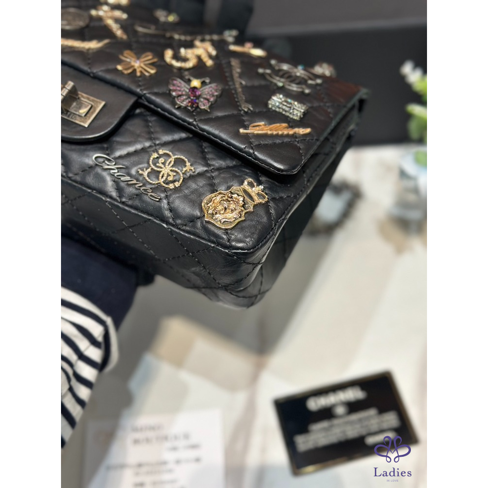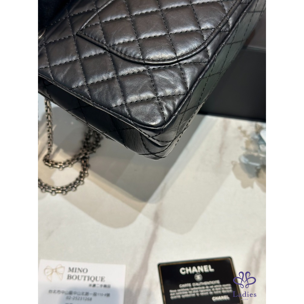 Chanel 2.55限量徽章 牛皮銀釦