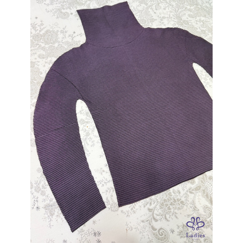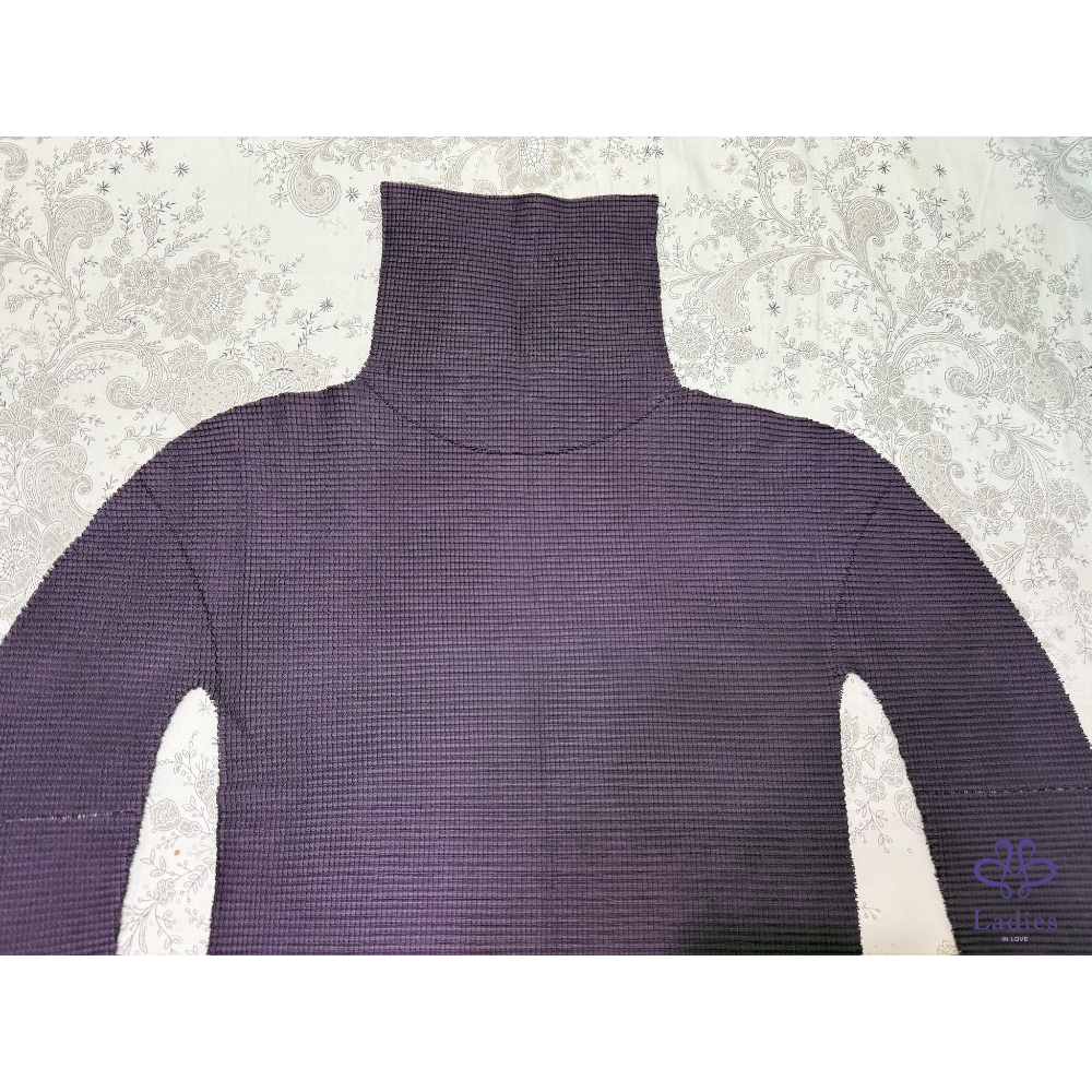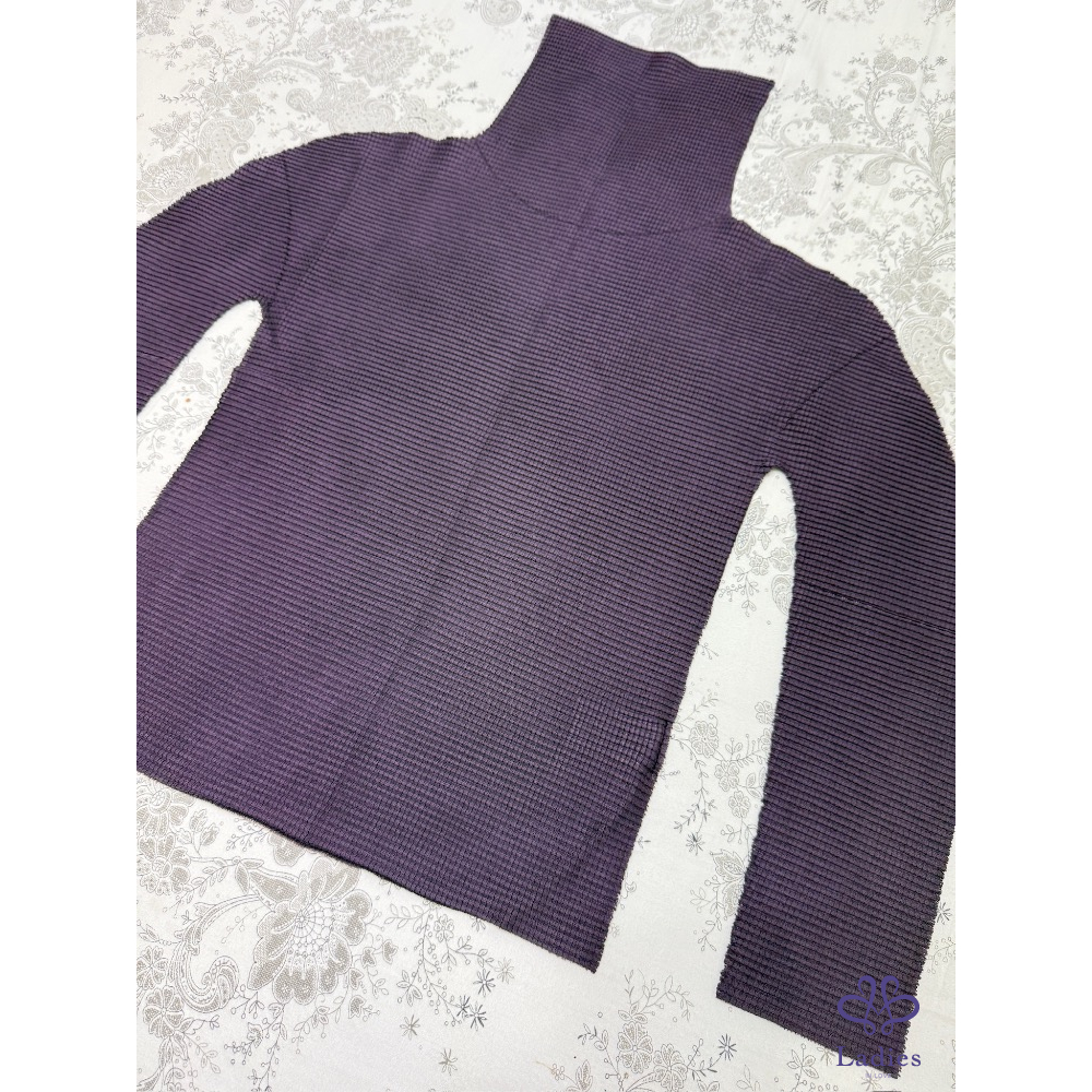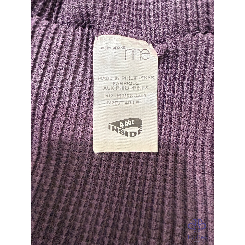 售三宅一生Issey Miyake Me 系列紫色a-poc褶皺上衣,經典基本款,這系列的衣服有特殊設計,可以自由剪裁喜歡的長度,可隨意改成圓領,7分袖或包肩袖,非常好穿,