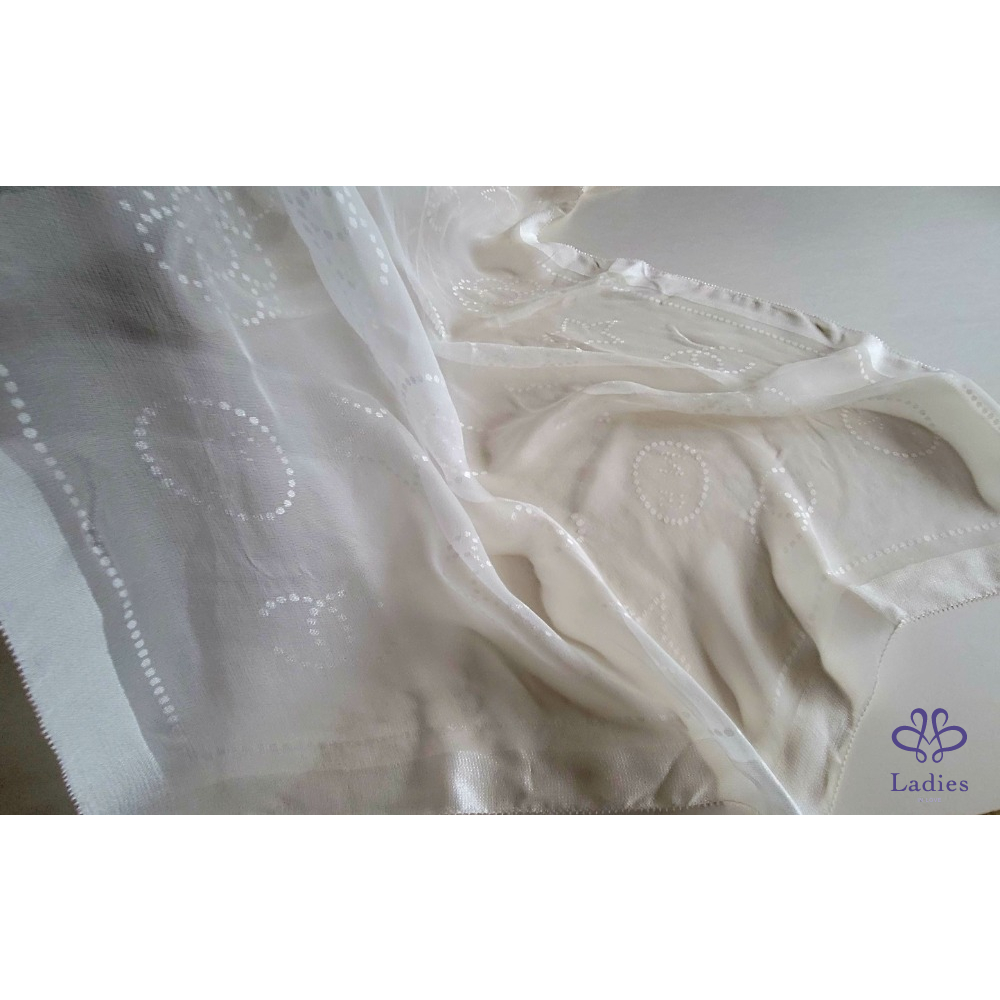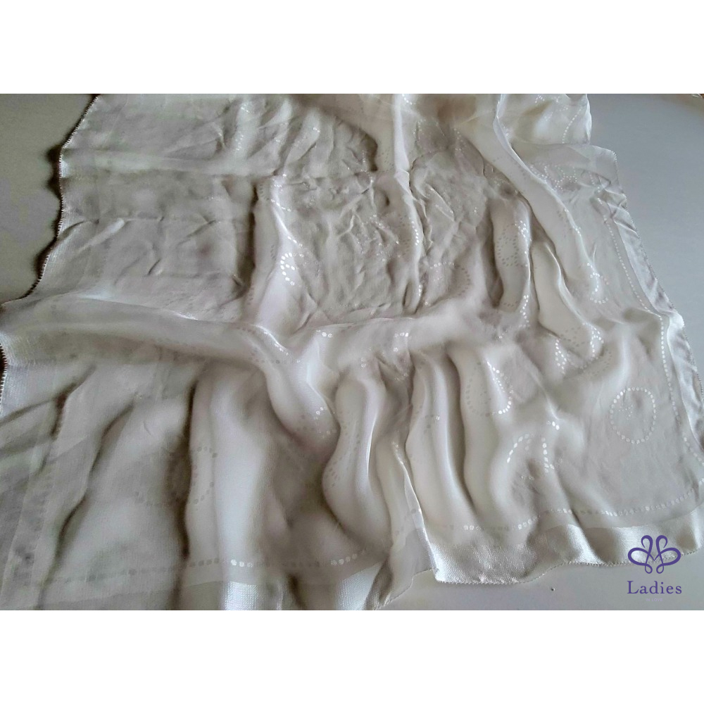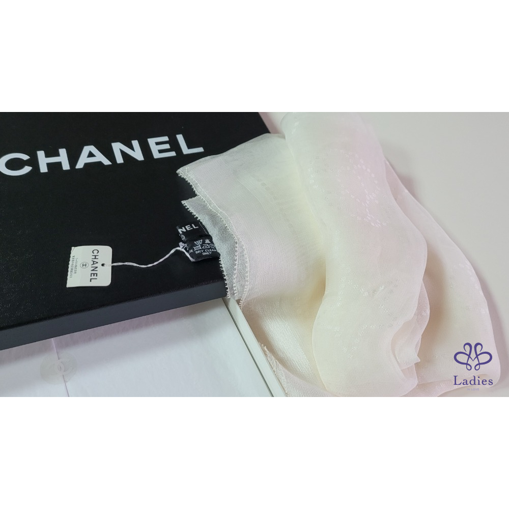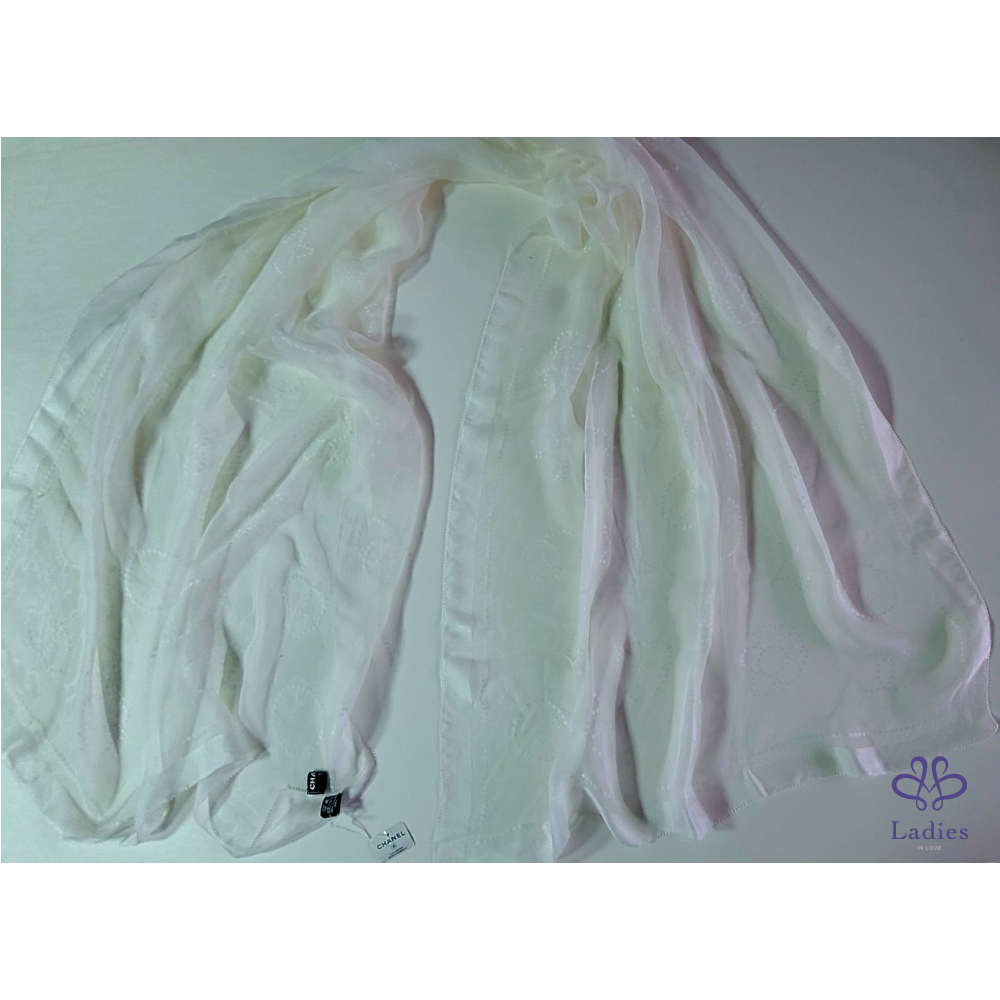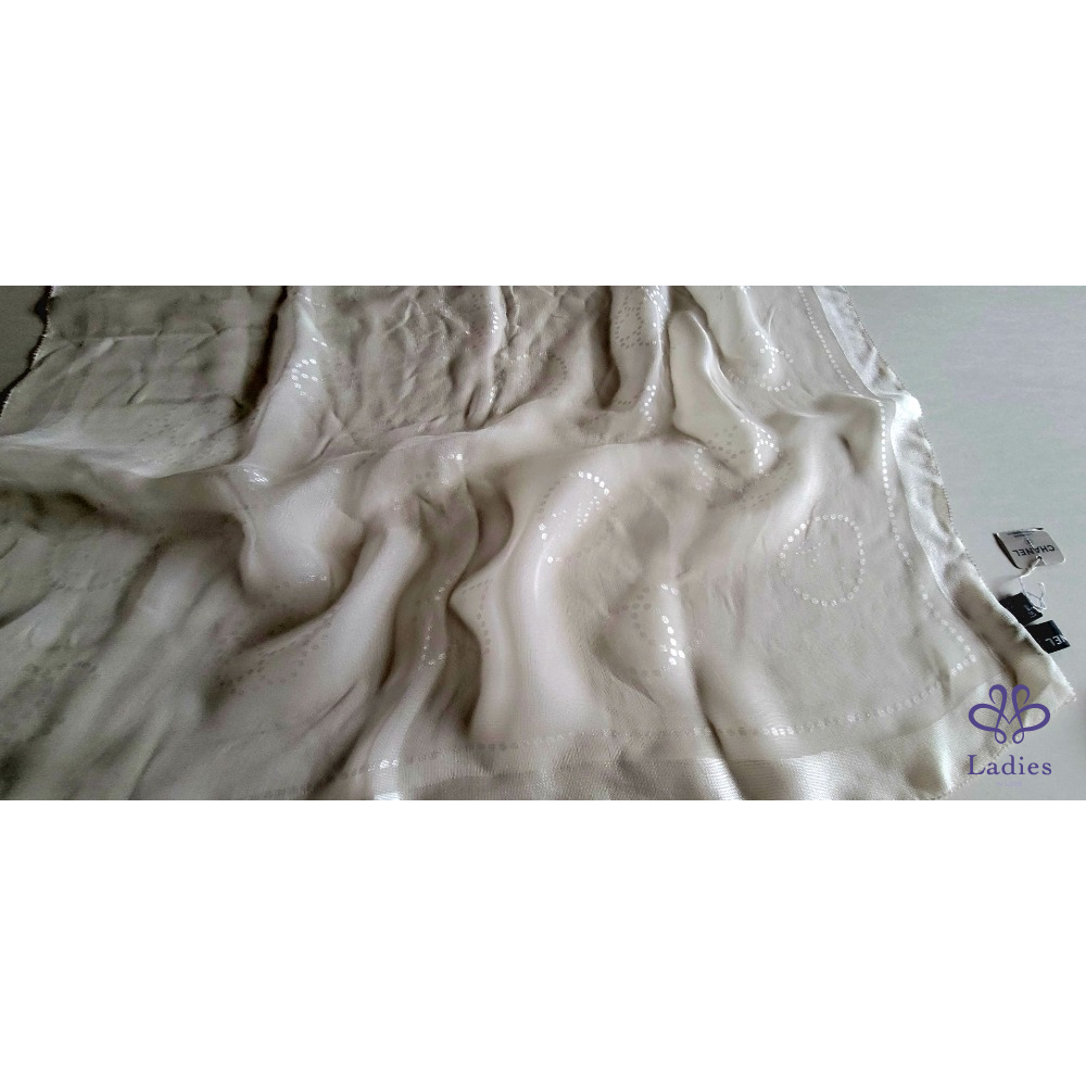 ~CHANEL全新 珍珠色雙C圖案透明紗175x63cm長圍巾