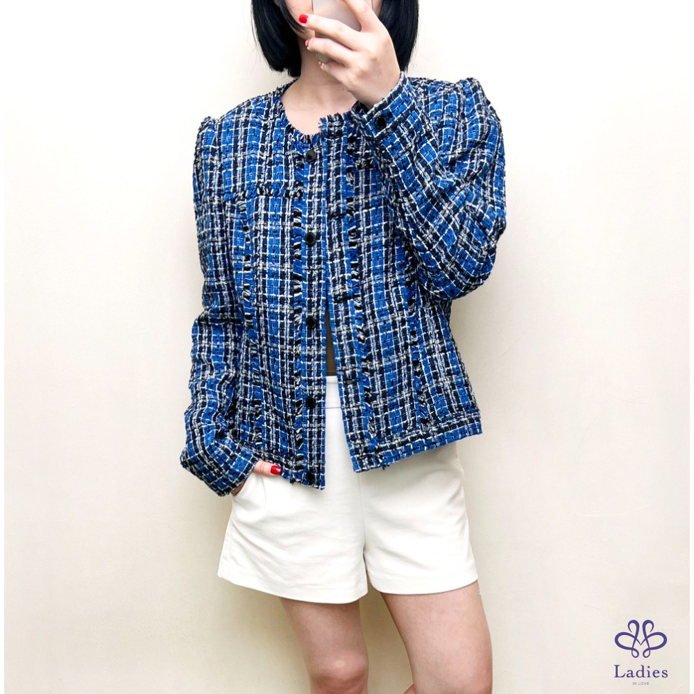 二口袋未拆 / 漆黑釦 / 細部抽鬚不收邊 / 肩袖版型立體可愛