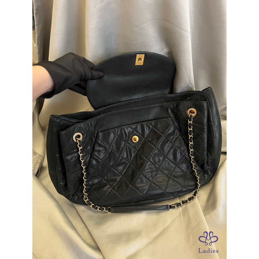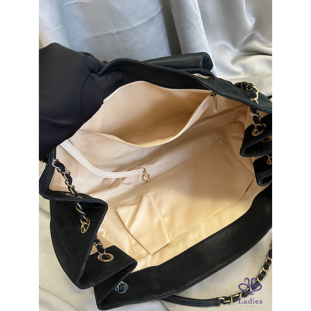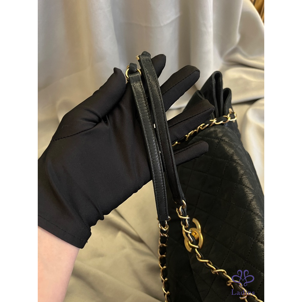 產品信息 香奈兒超稀有餃子包款式! 牛皮質料好清洗整理,自帶細微閃光,實體超級美 內裡耐裝,分隔夾層多超好使用 整體98新,僅使用過一次,膠膜剛撕 尺寸約28*43*11公分左右 附防塵袋、Entrupy國際證書 圖片已盡力拍攝高標請繞道謝謝