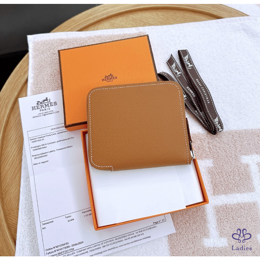首頁 精品配件 Hermes 絲巾短夾 12月W 金棕