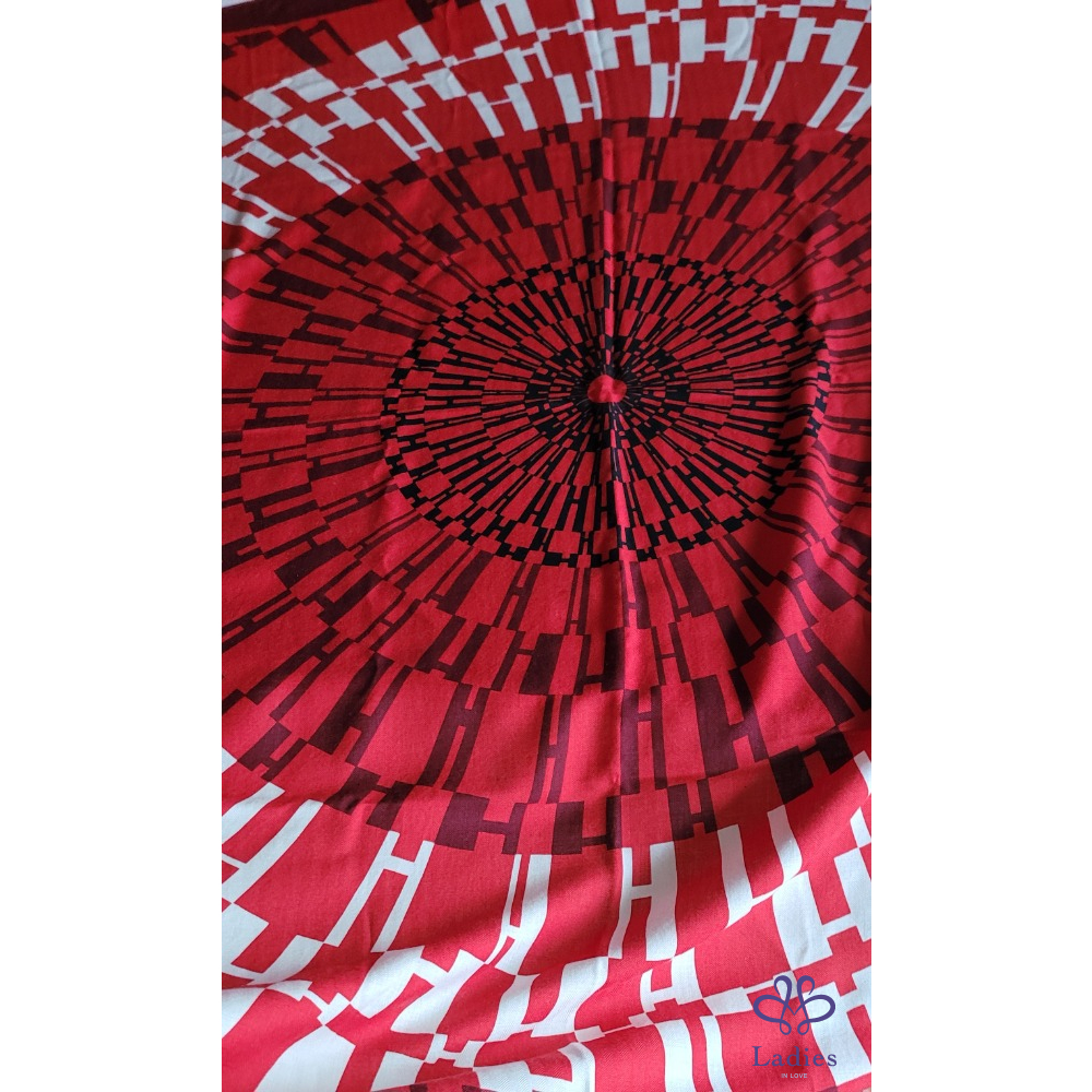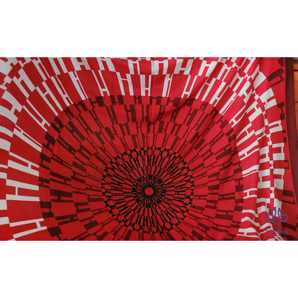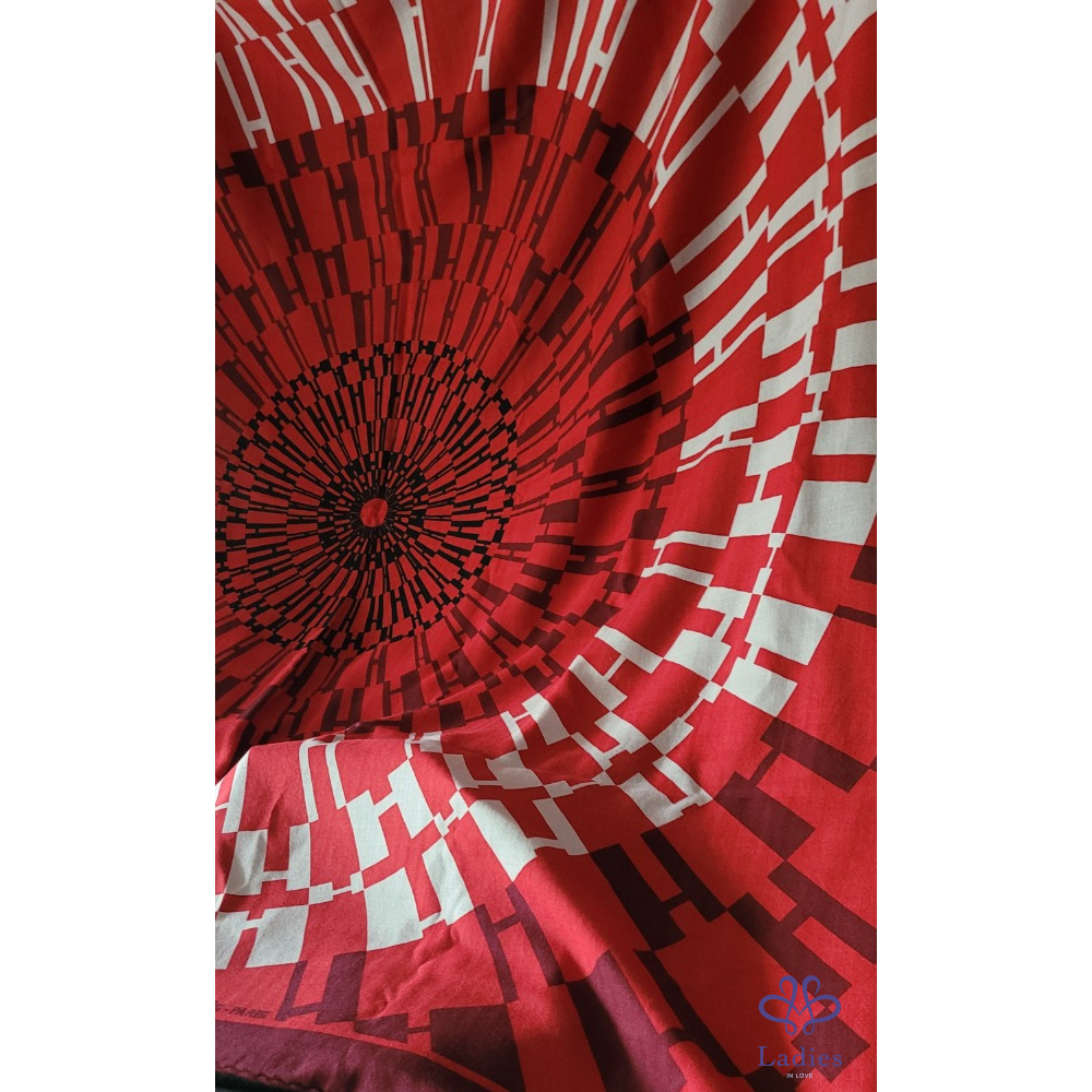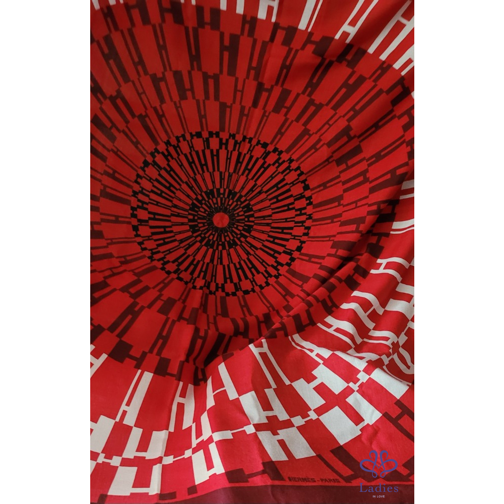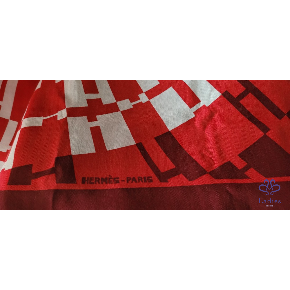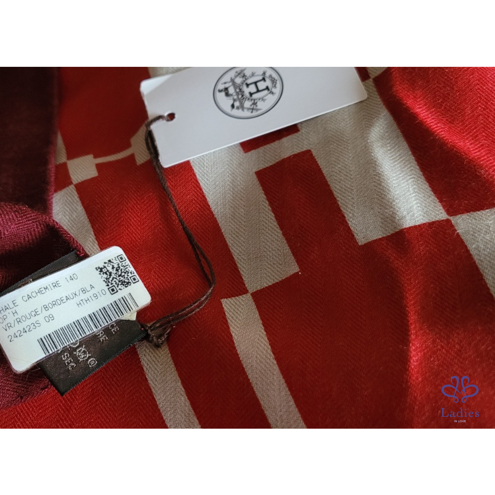 ~HERMES 全新70%CASHMERE 30%SILK 紅白H圖案140圍巾