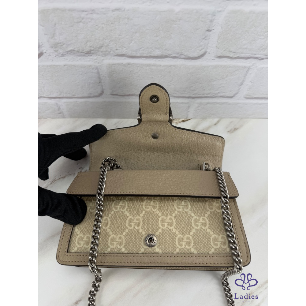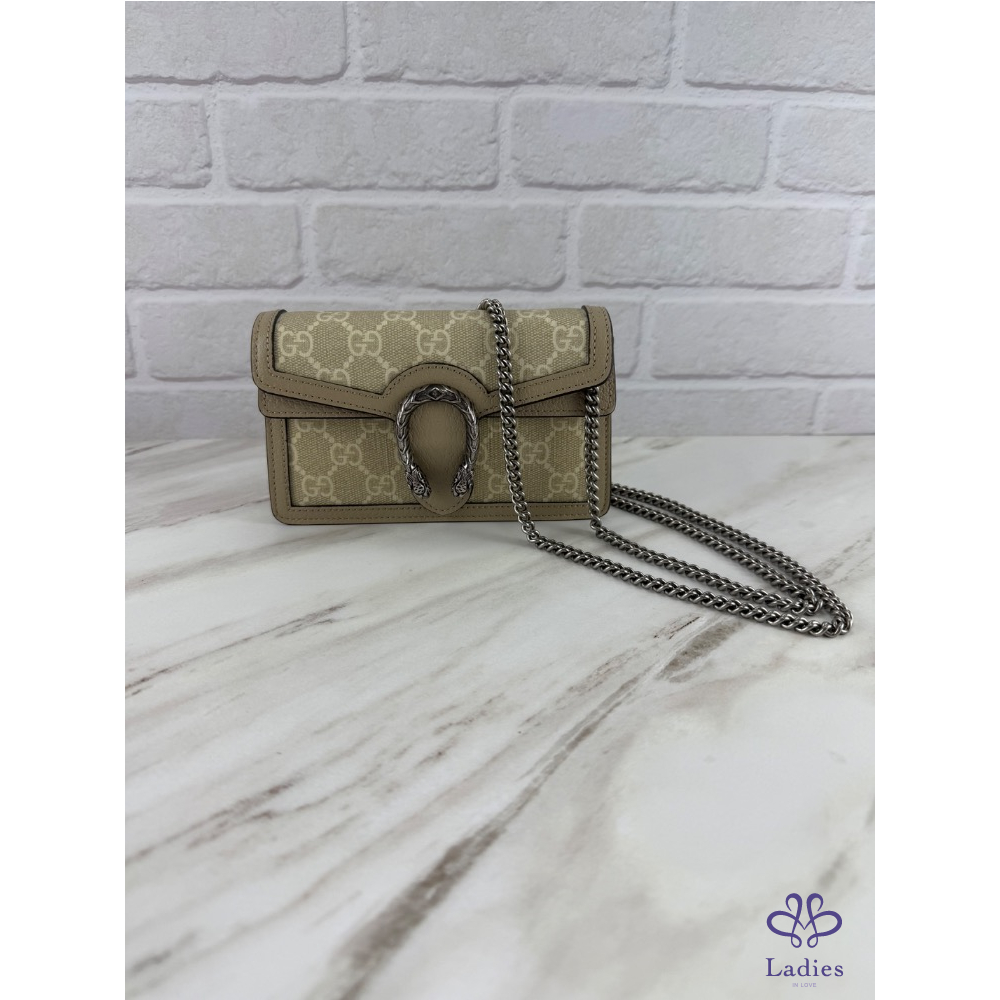 Mini酒神 經典印花Logo, 搭配奶茶色,精緻可愛 ,鏈條肩帶可以拆卸,當手拿包或是錢包使用,包內有勾勾也可以掛在大包上或者當腰包,實用百搭的時尚小單品