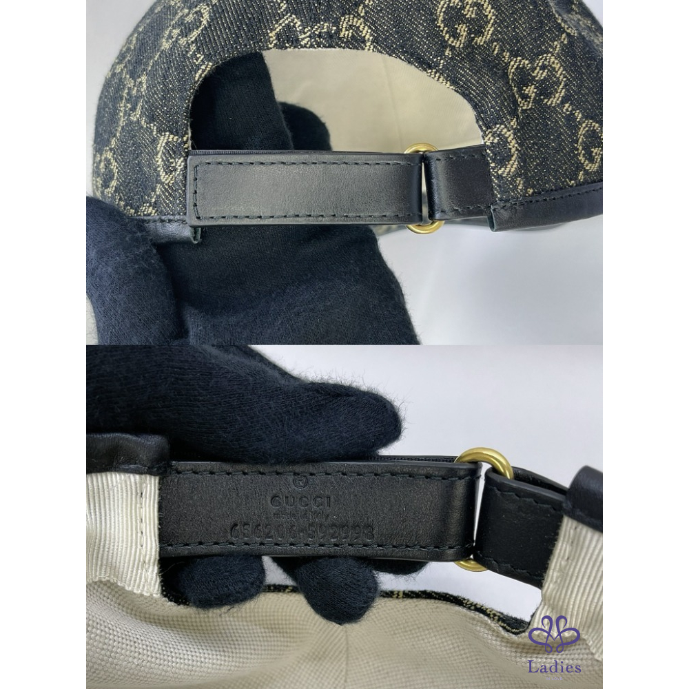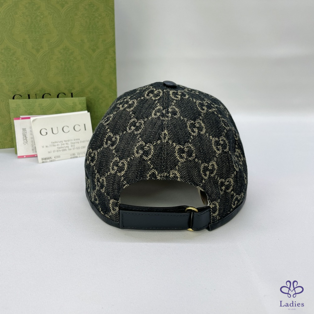 產品信息 【GUCCI 黑花雙G LOGO棒球帽】 #閒置近新品 全皮捲邊搭配丹寧布,既舒適又時尚 經典緹花款棒球帽,中性穿搭隨興百搭 *整體狀況9成8新,二手商品均有正常存放痕跡 *尺寸:L (59 cm),可自由調節 *型號:656206 *附件:原廠盒、台灣購證(去個資)、交易明細單、刷卡單 #A112102502