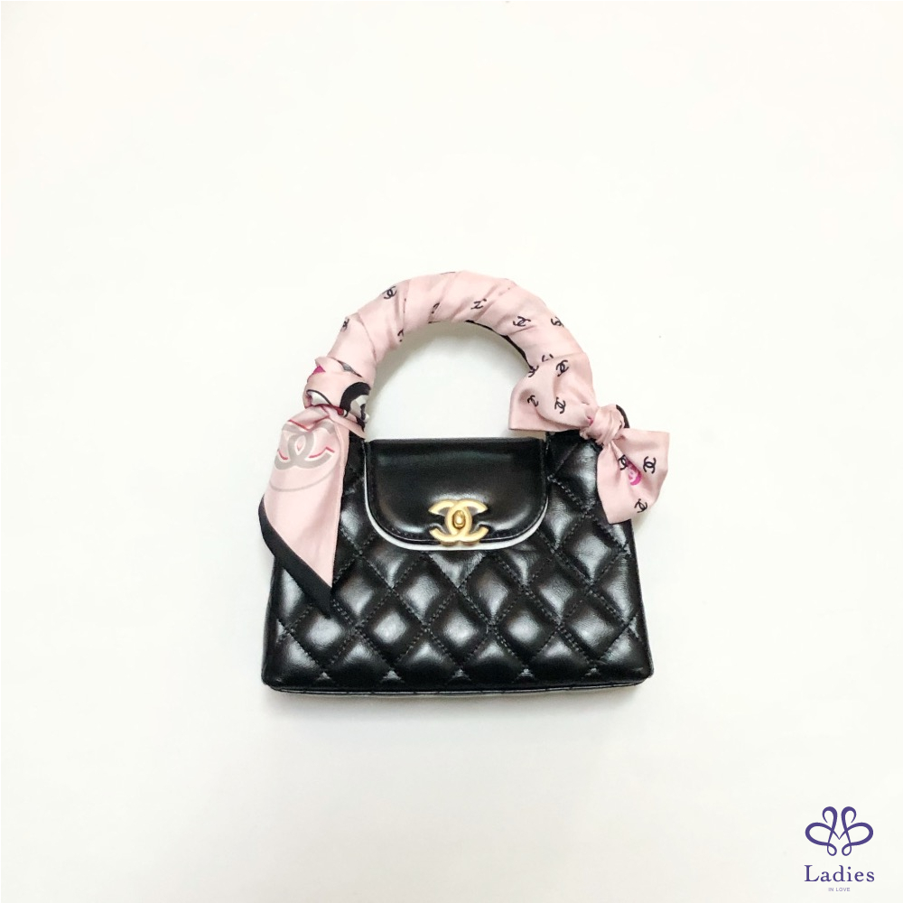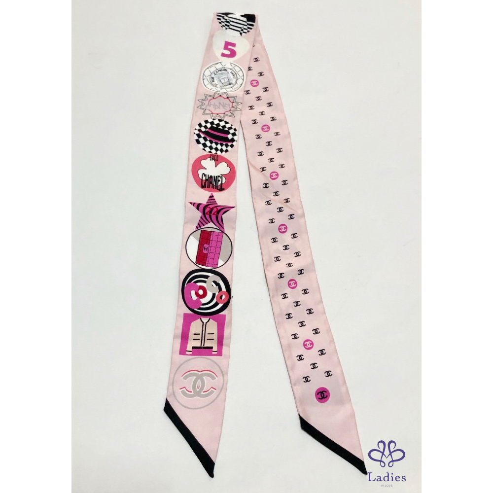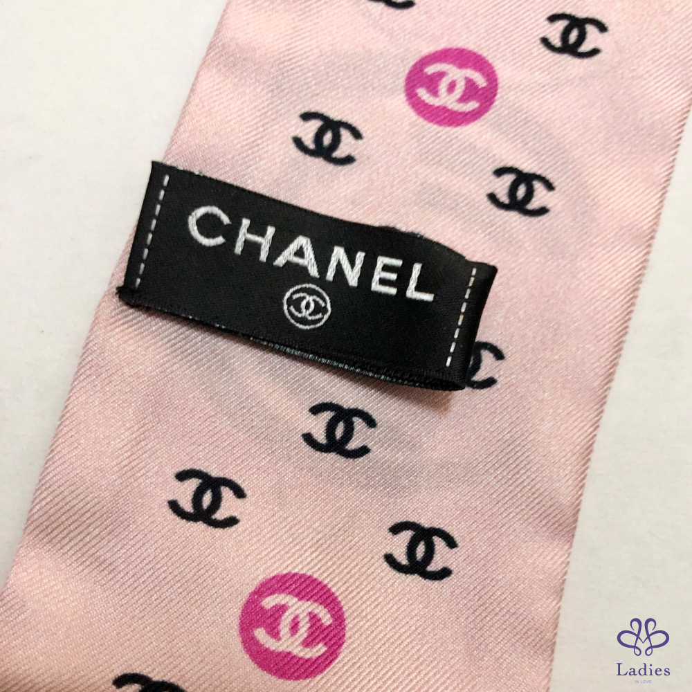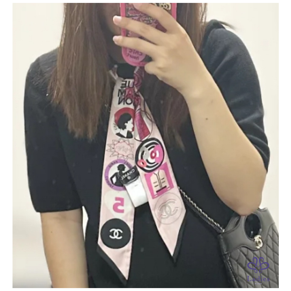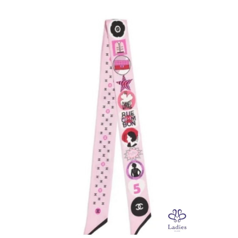 首頁 精品配件 CHANEL 香奈兒 小香 25C Twilly 粉色滿版 雙c logo 各式經典圖案 領巾 全新✨