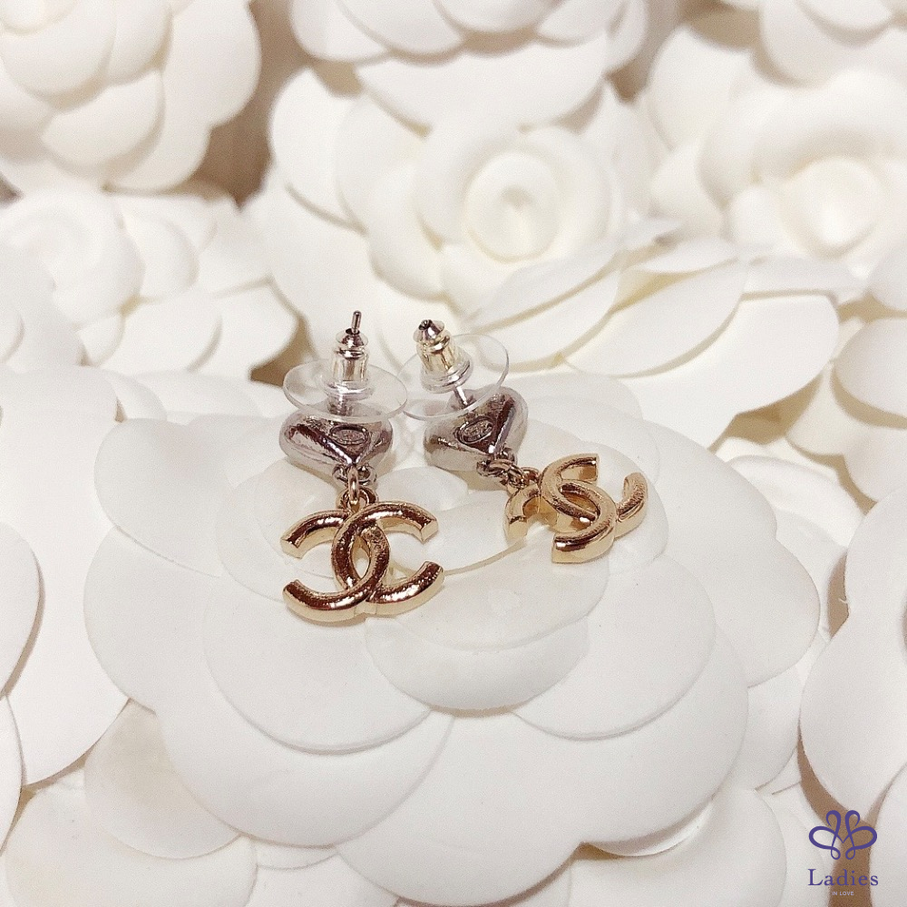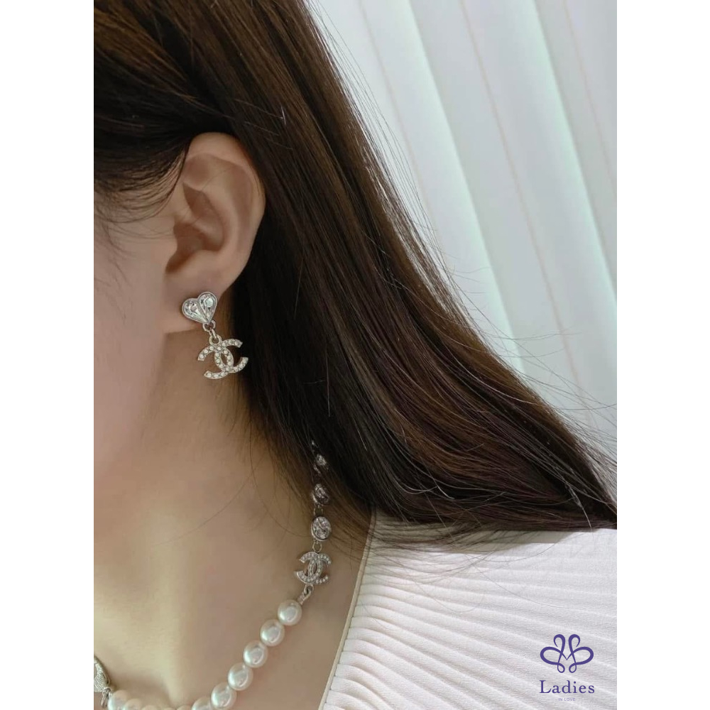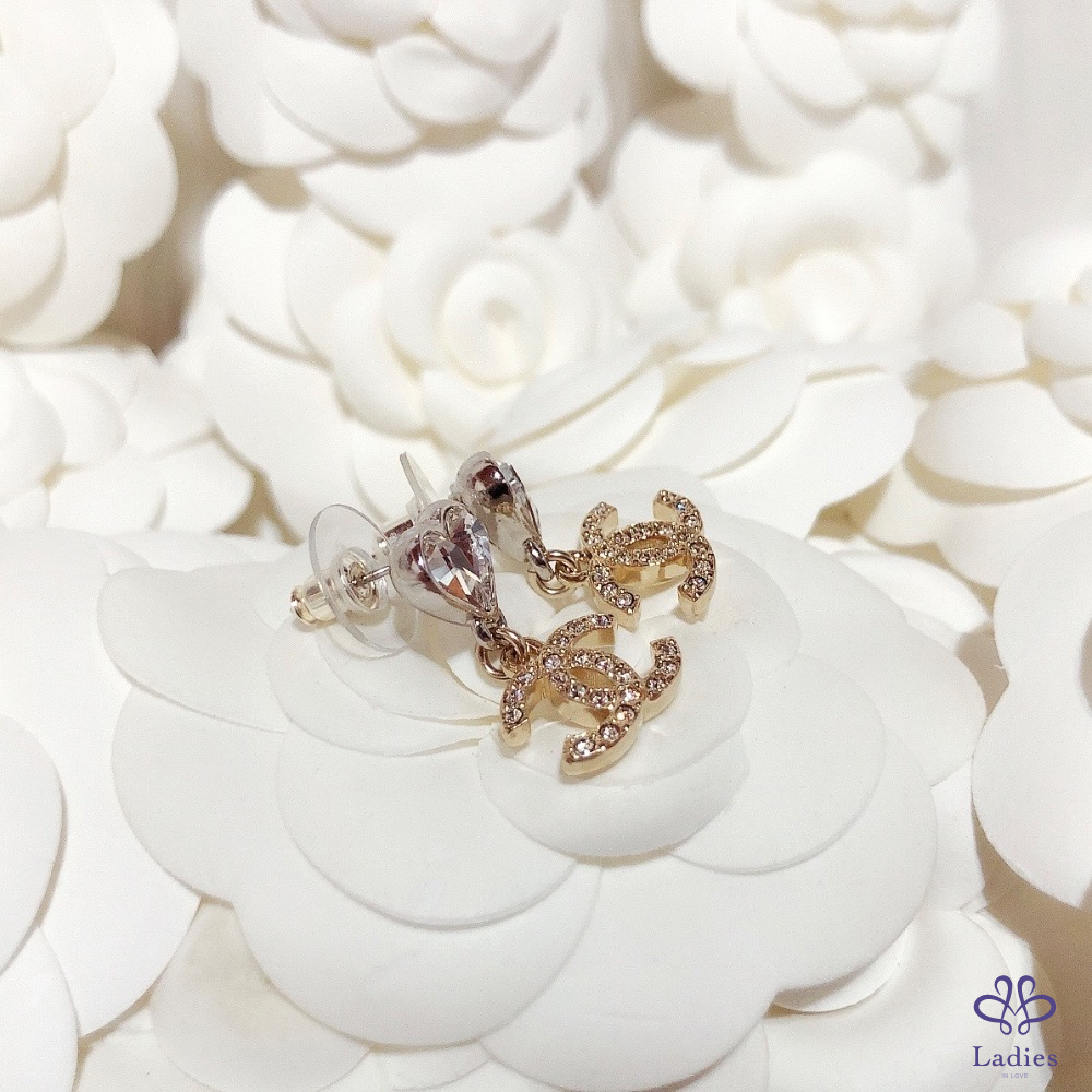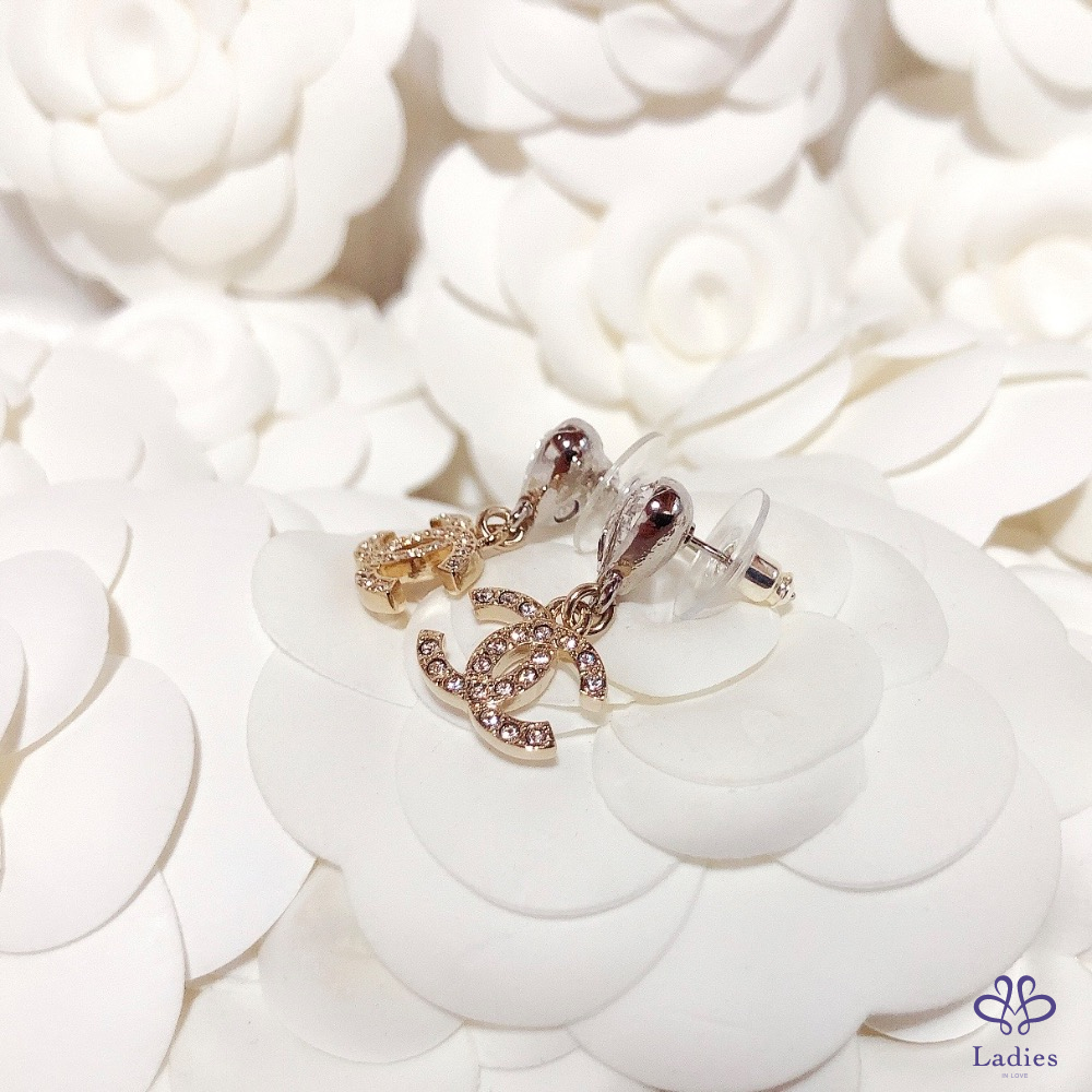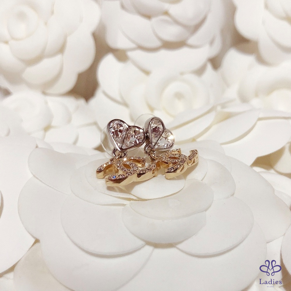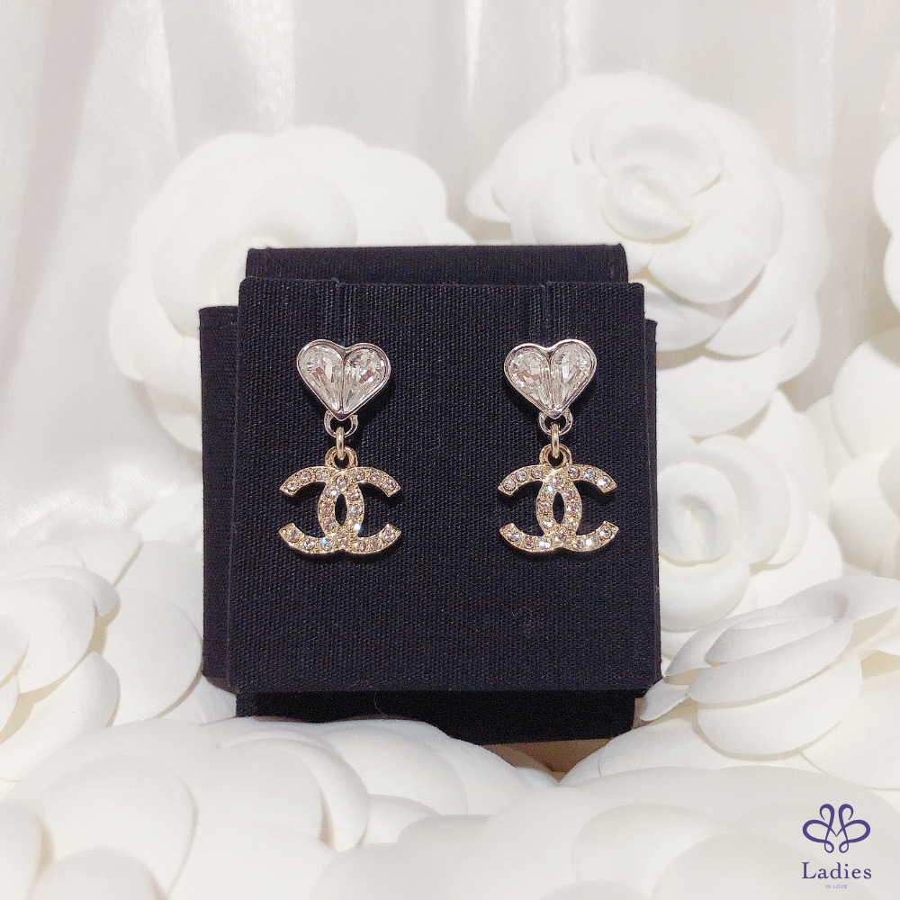 首頁 精品配件 CHANEL 香奈兒 小香  愛心水鑽 垂釣雙C logo 針式 耳環 全新✨