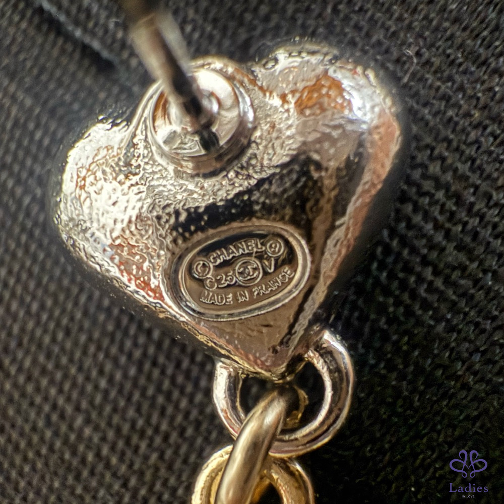 CHANEL 香奈兒 小香  愛心水鑽 垂釣雙C logo 針式 耳環 全新✨