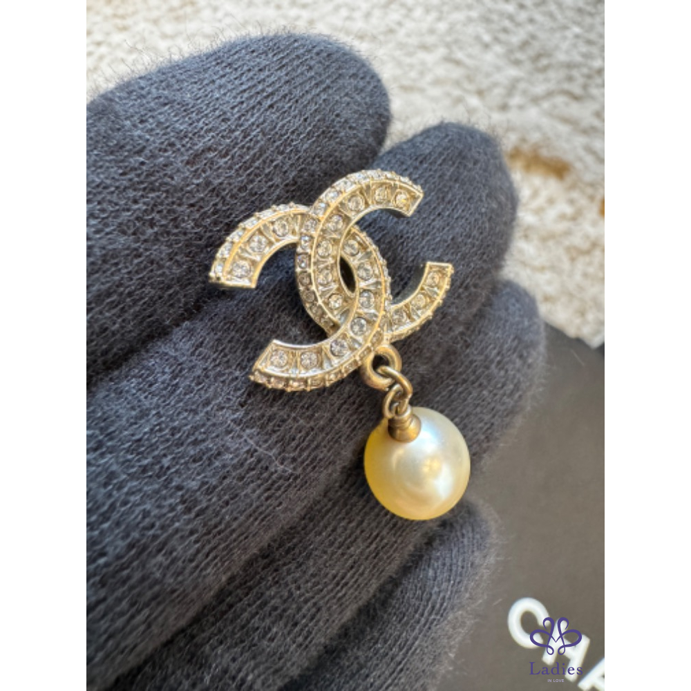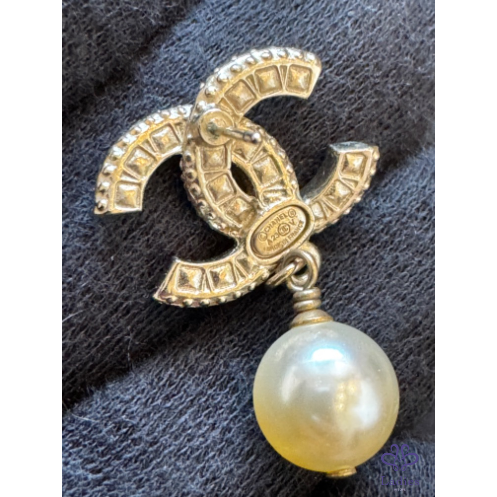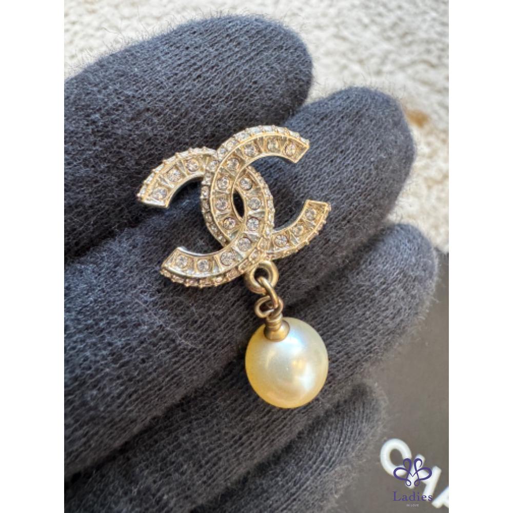 Chanel 香奈兒 經典水鑽垂墜珍珠耳環 耳針