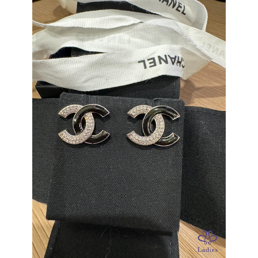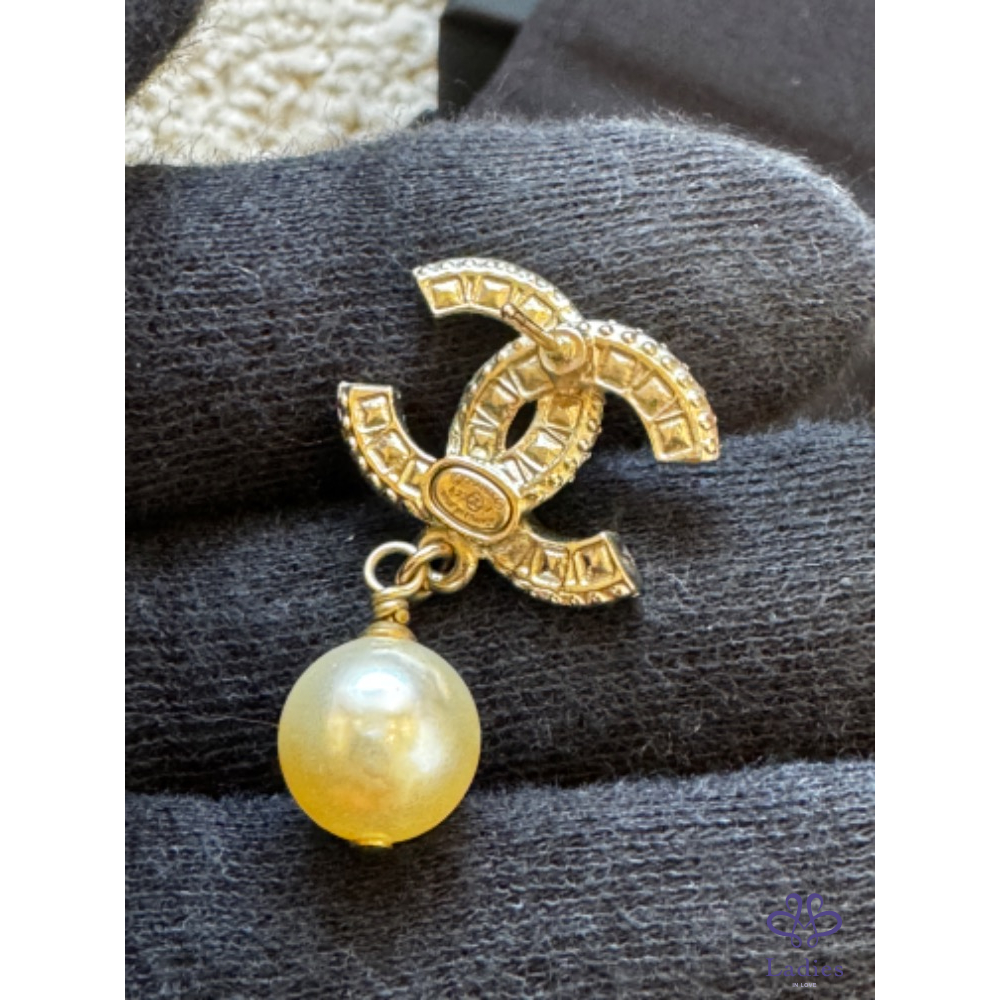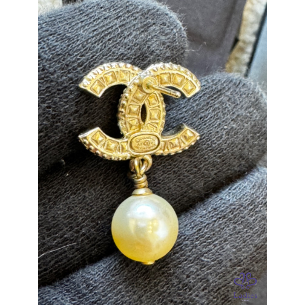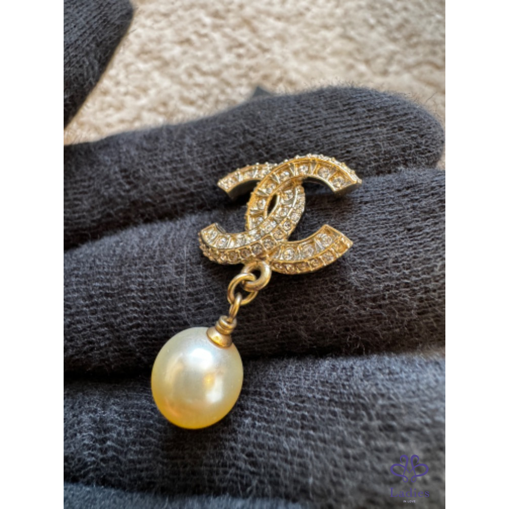 Chanel 香奈兒 經典水鑽垂墜珍珠耳環 耳針