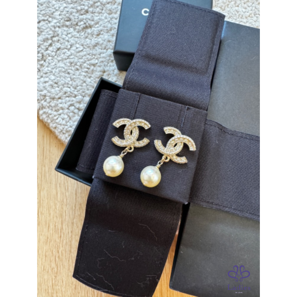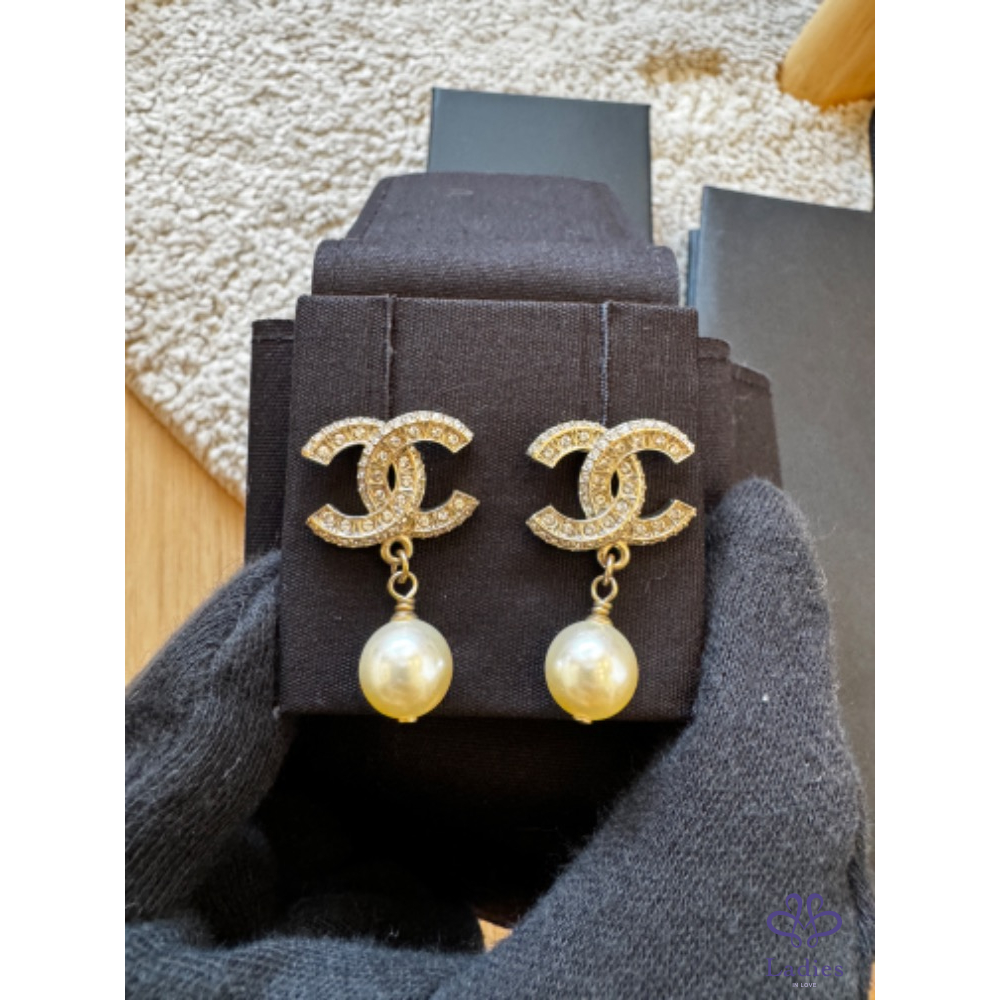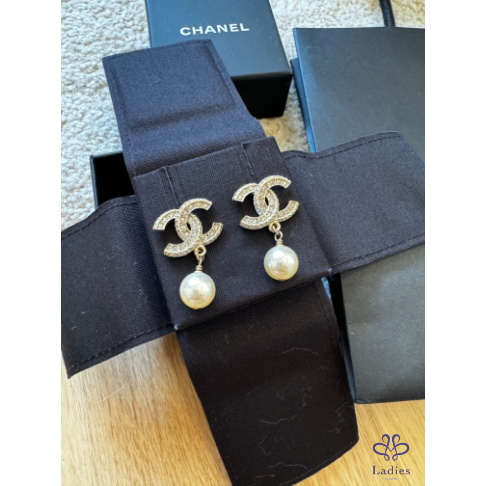首頁 精品配件 Chanel 香奈兒 經典水鑽垂墜珍珠耳環 耳針