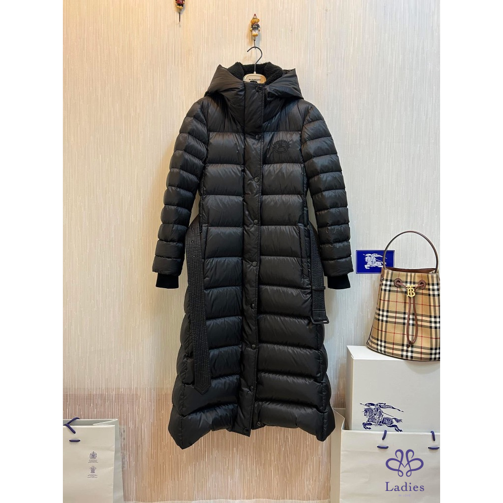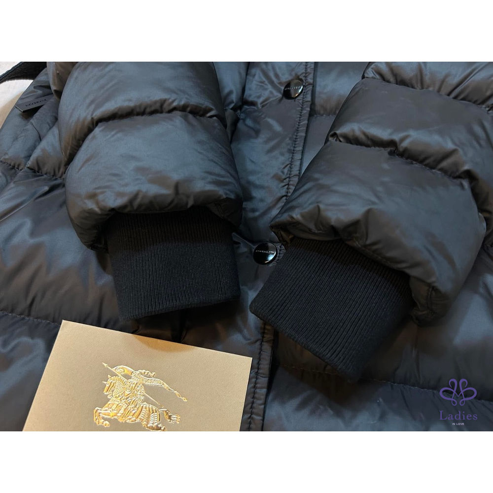 ????BURBERRY英國黑標黑色連帽鵝絨大衣