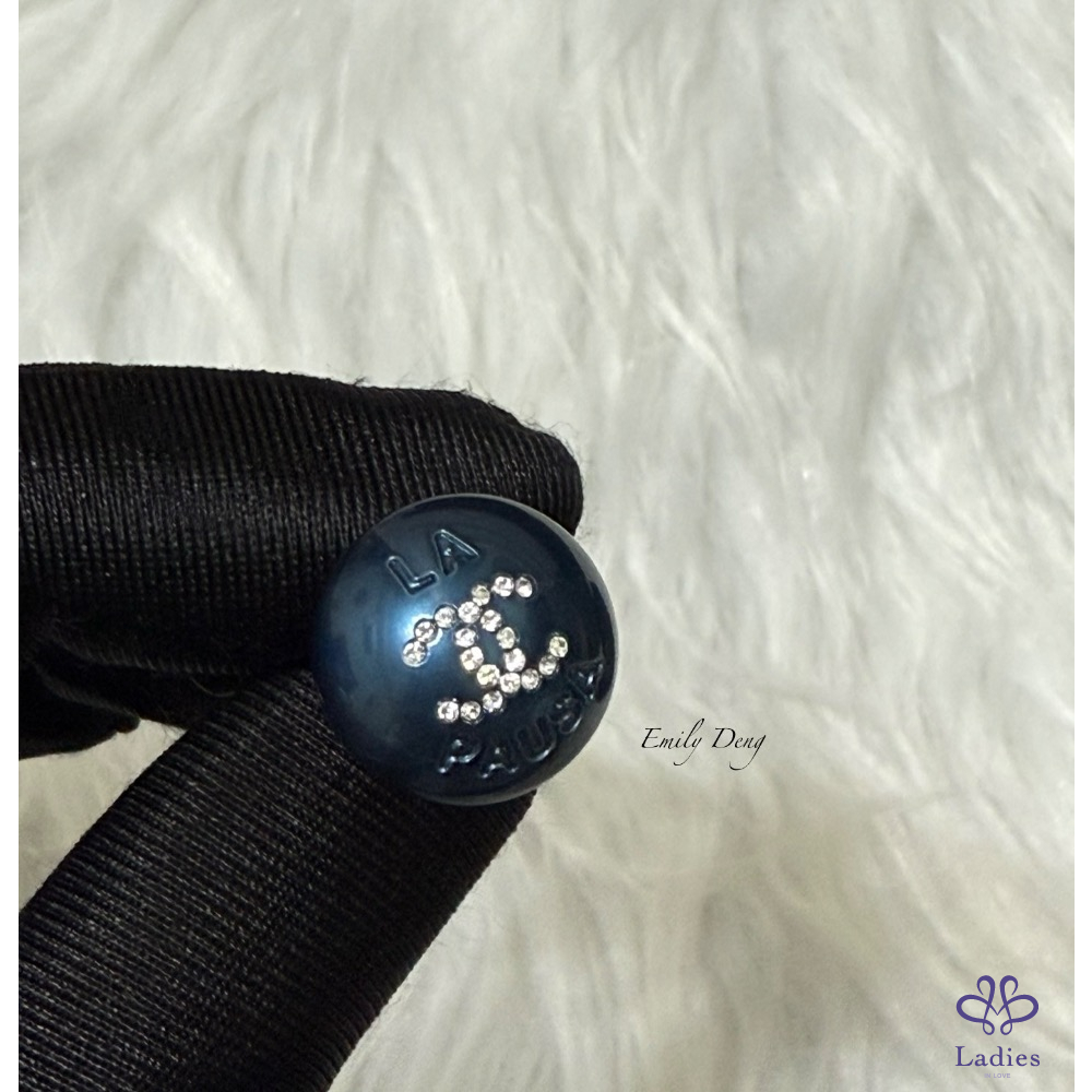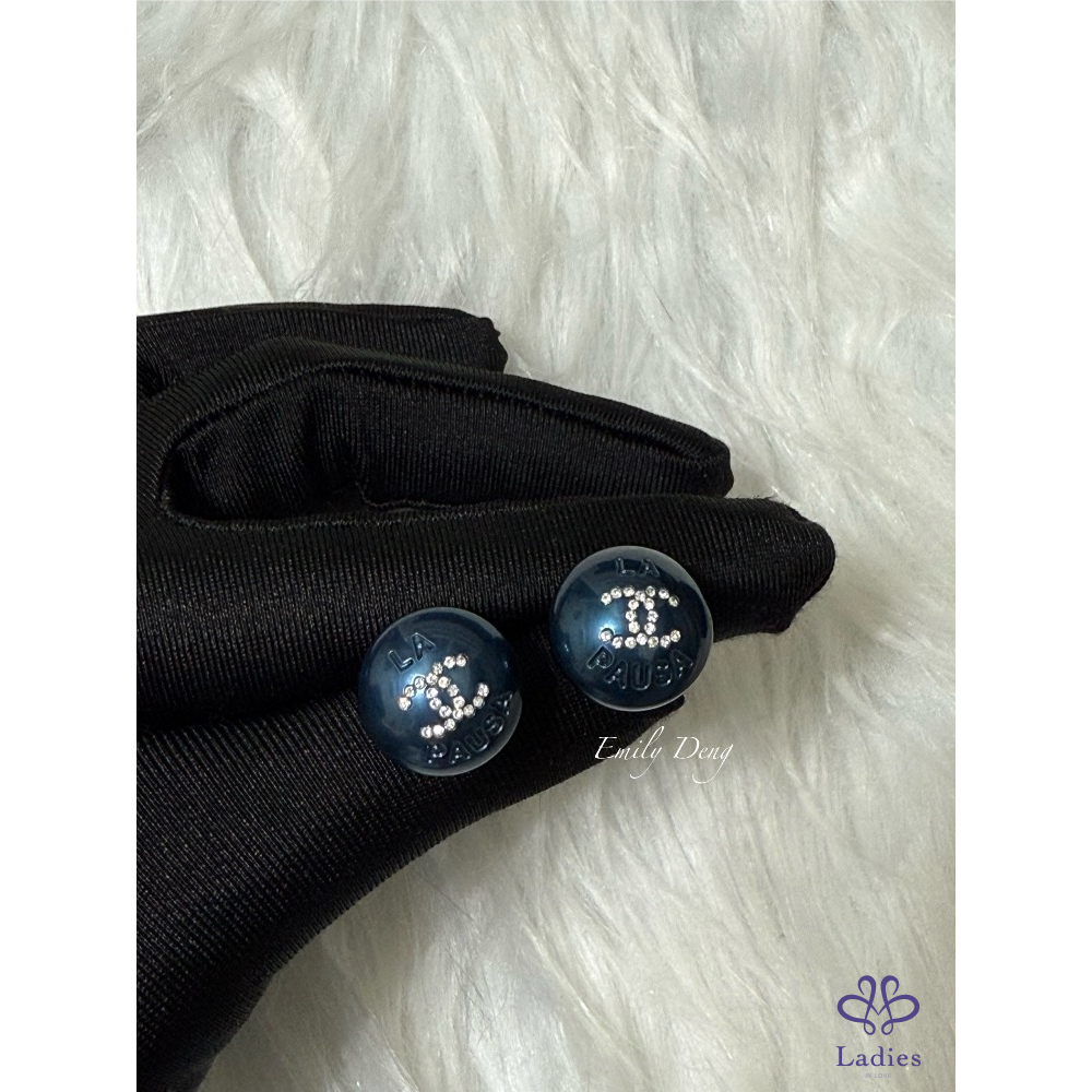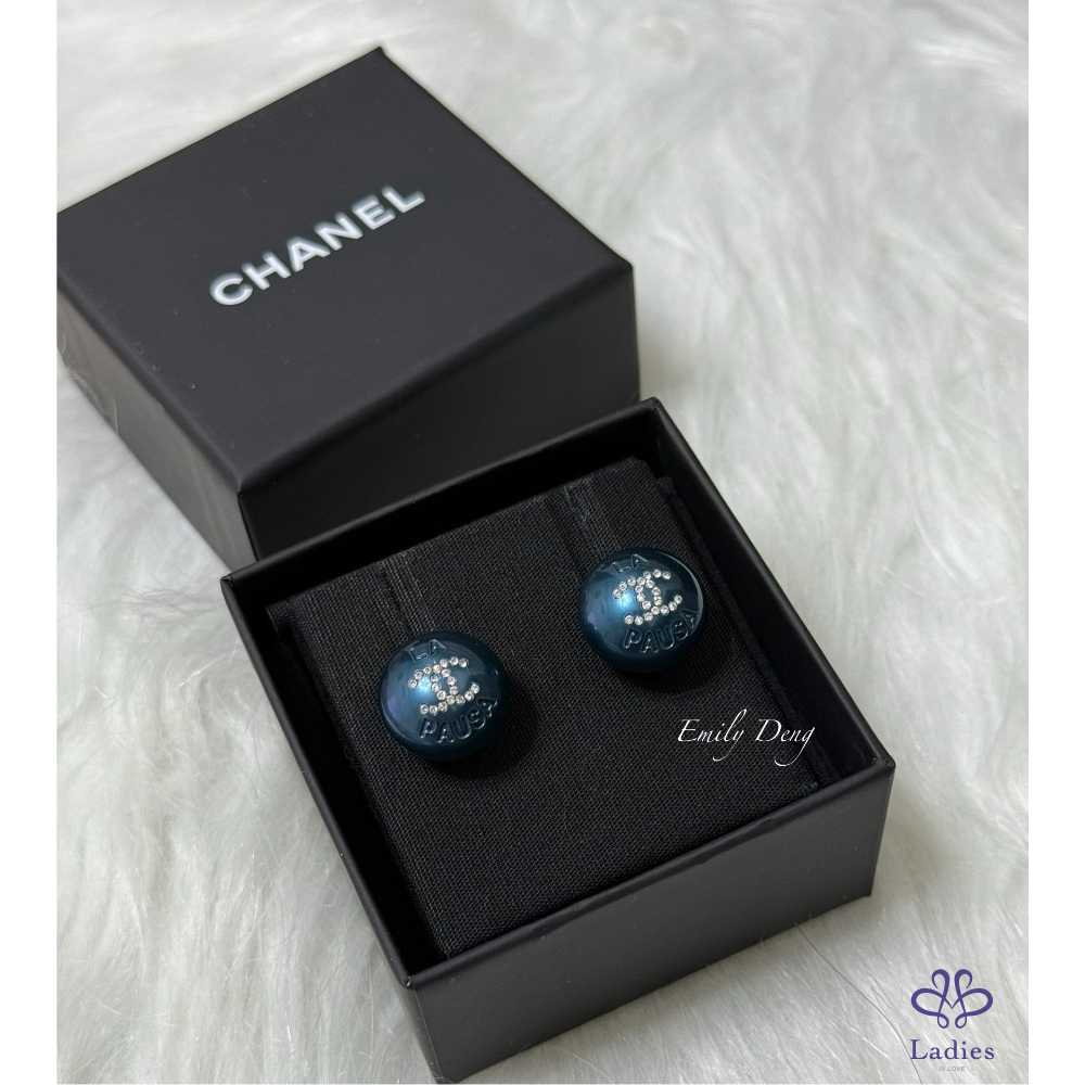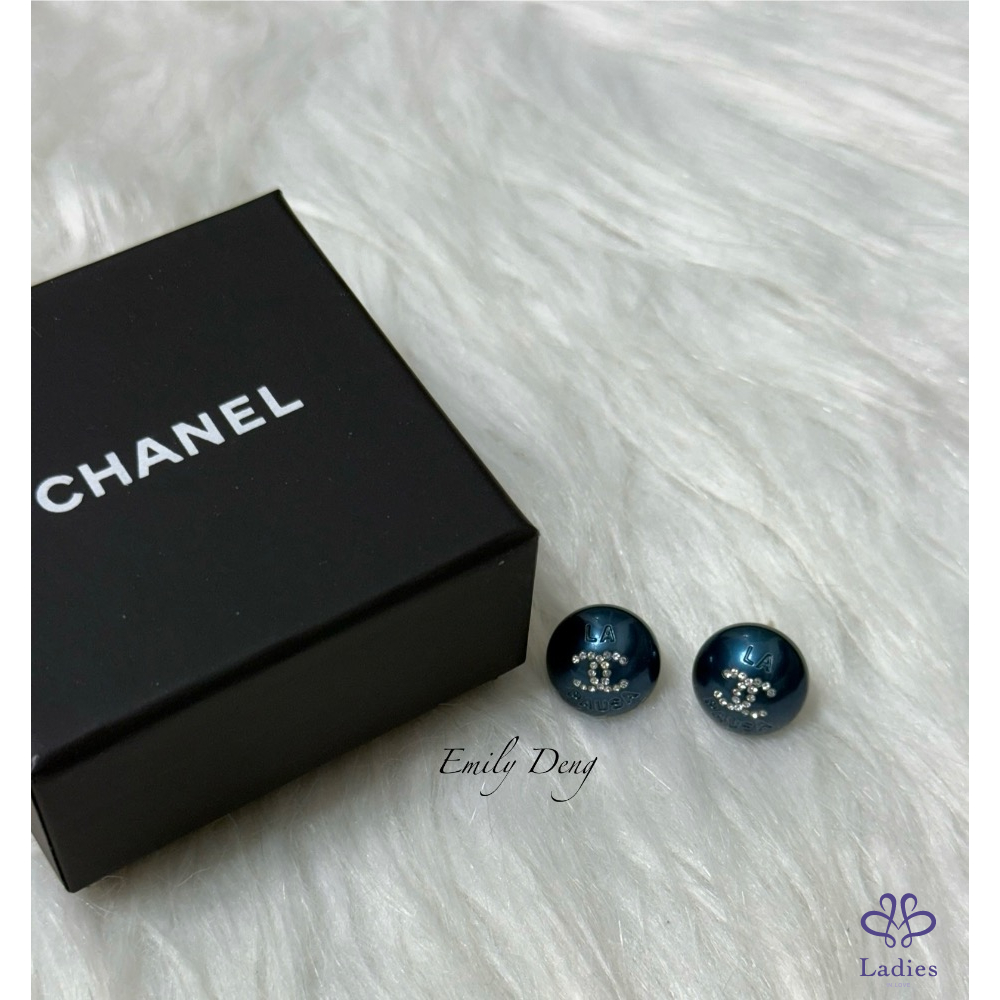 售# Chanel 藍色珍珠鑲嵌雙C水鑽耳環