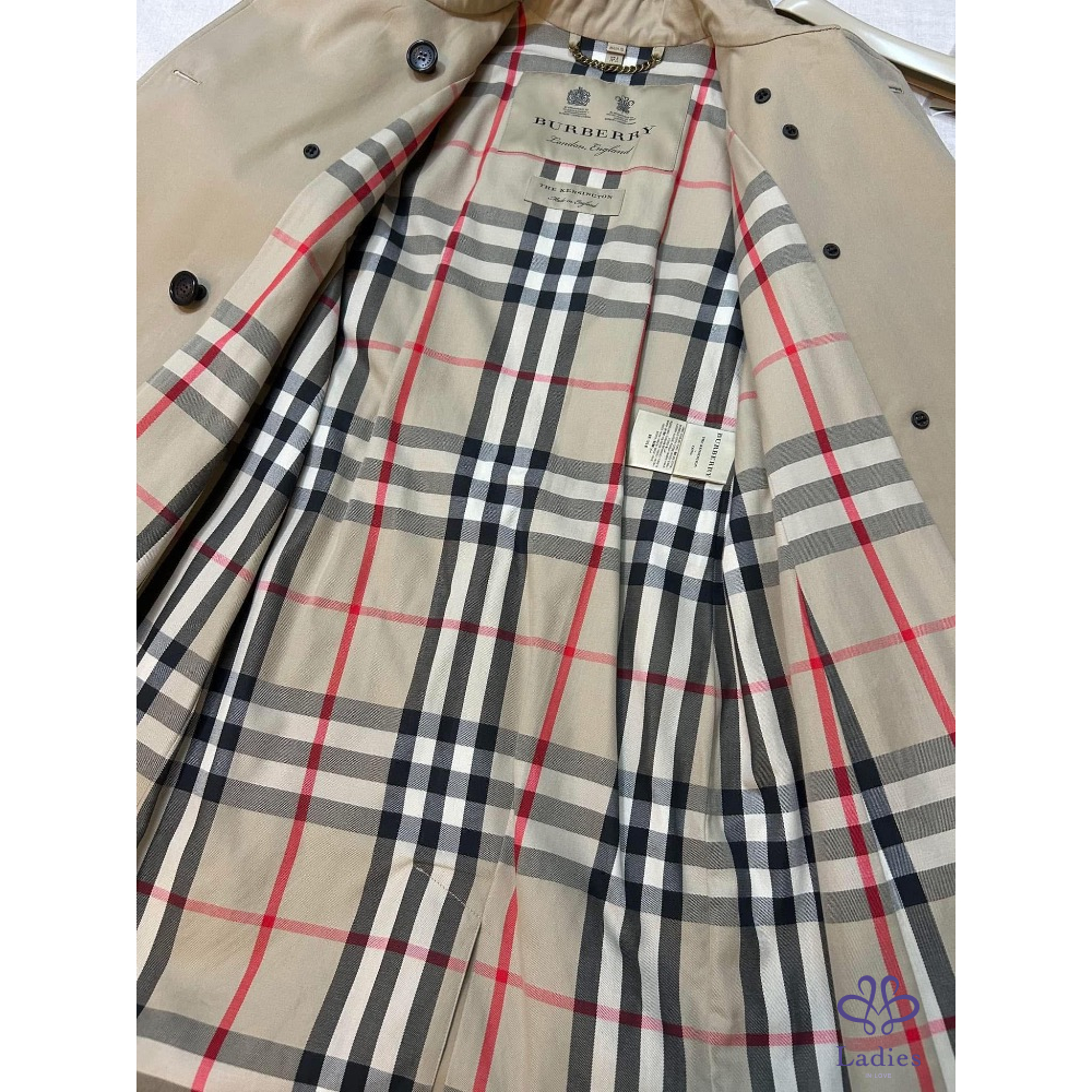 ????介紹:標誌性 Burberry Trench 風衣,選用防護性棉質嘎巴甸面料於英格蘭製成,內側為Burberry 格紋棉質材質,於1920 年起便廣泛用於品牌外套精品內襯。肯辛頓風衣來自Burberry Heritage 系列,融入嵌入式直袖設計,呈現常規版型。