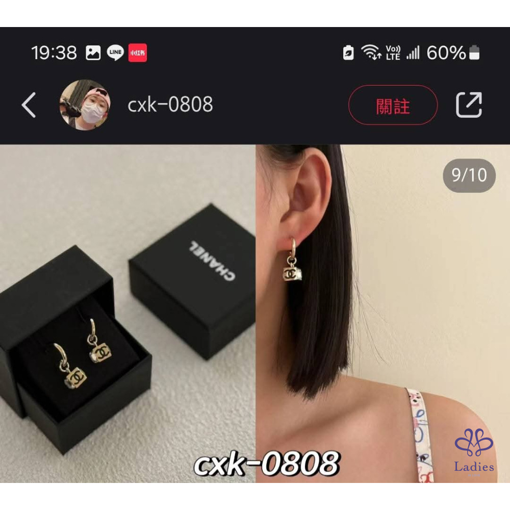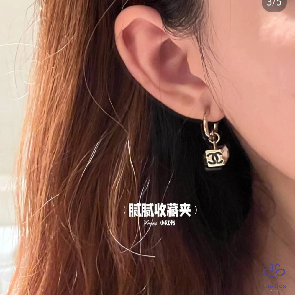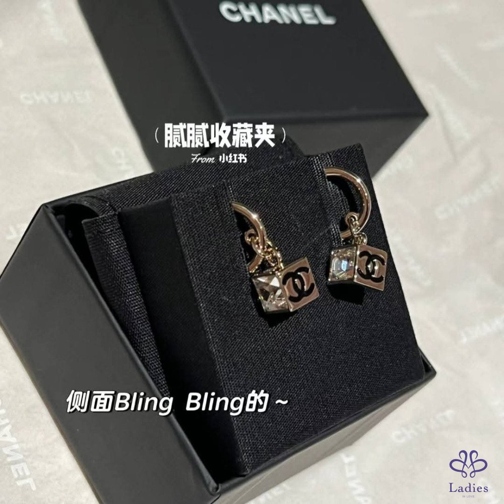 售 Chanel Earrings 香奈兒 方糖/方塊/淡金/logo/水晶/施華洛世奇 垂墜靈動針式耳環