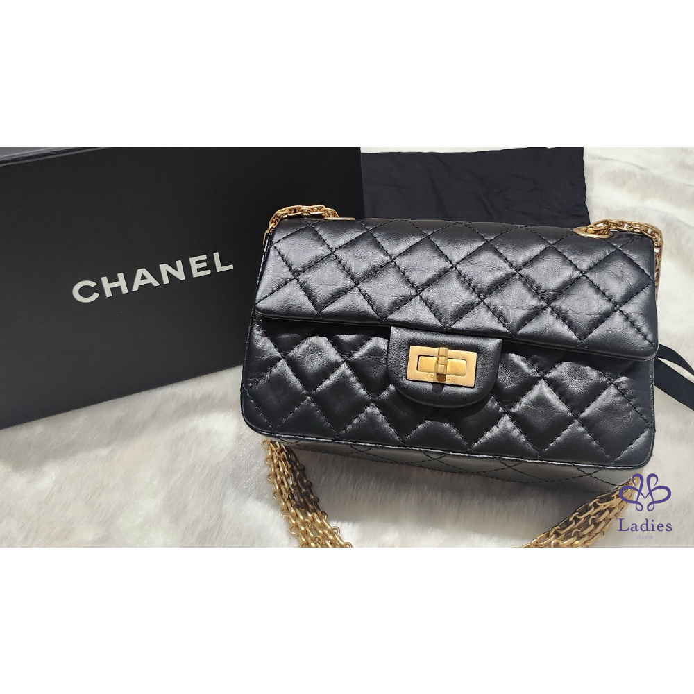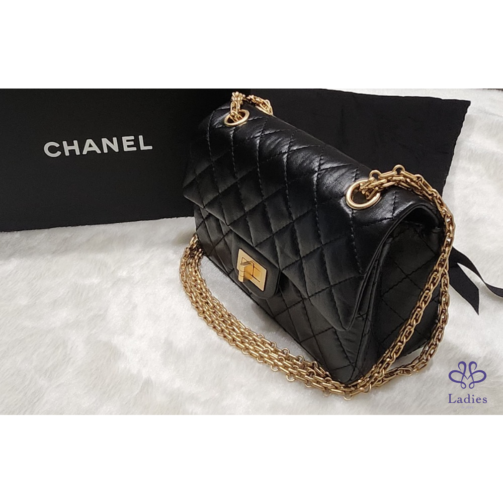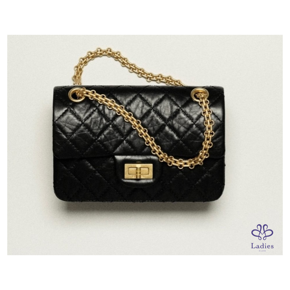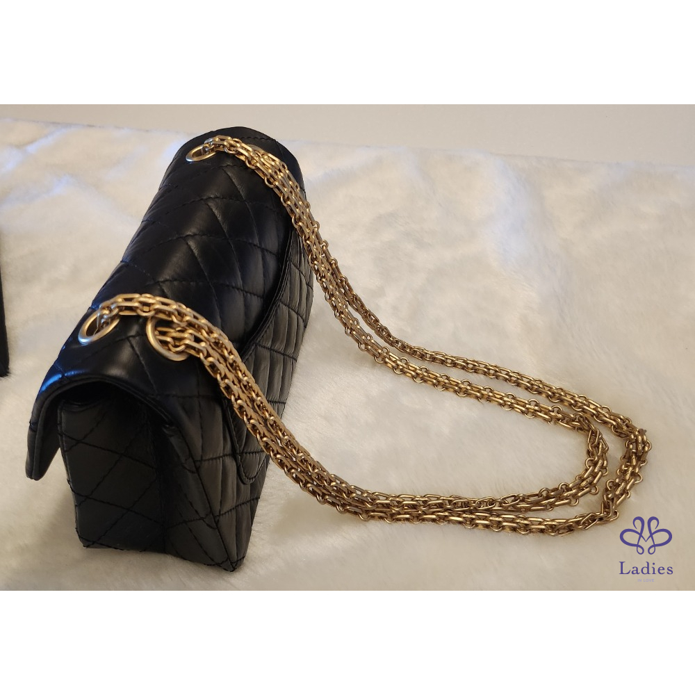 - 2.55黑金菱格紋口蓋鍊條肩背斜背包/天菜超美/ 復古經典款