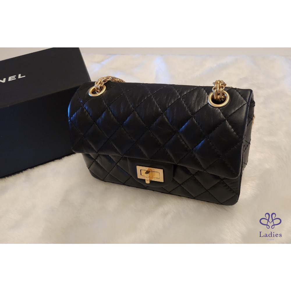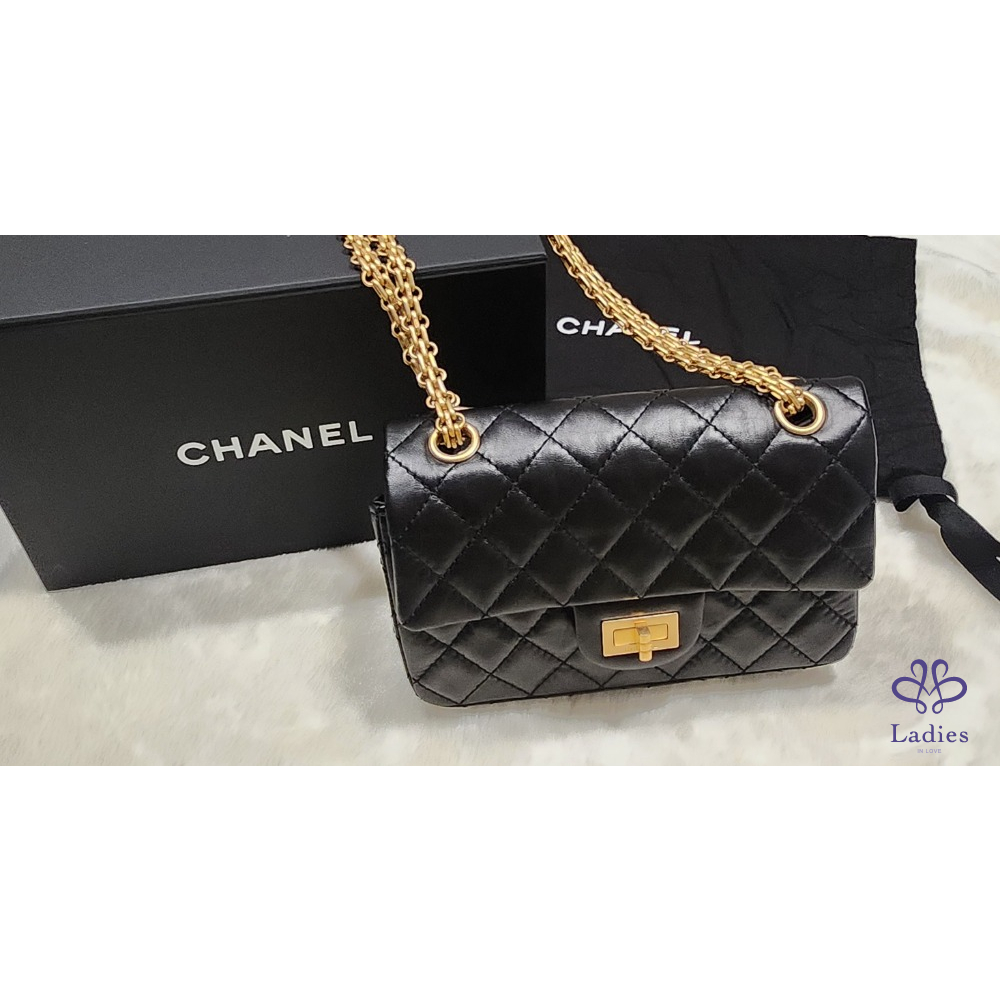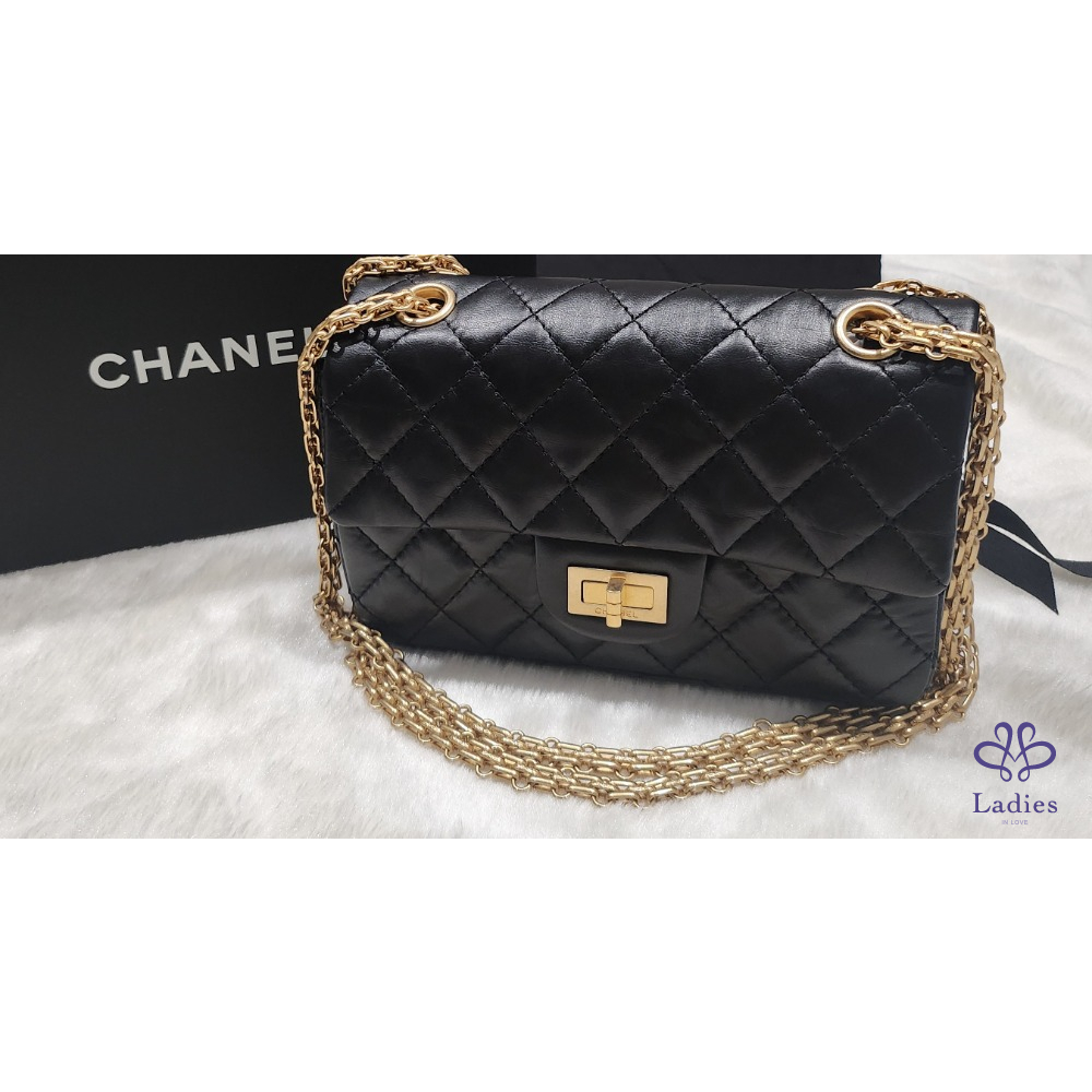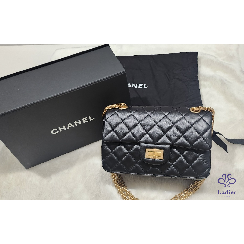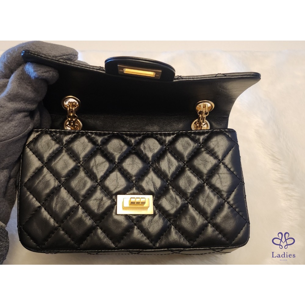 - 2.55黑金菱格紋口蓋鍊條肩背斜背包/天菜超美/ 復古經典款