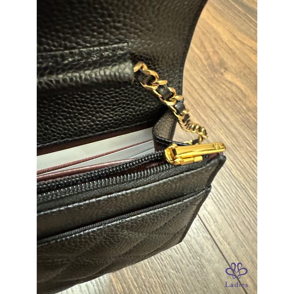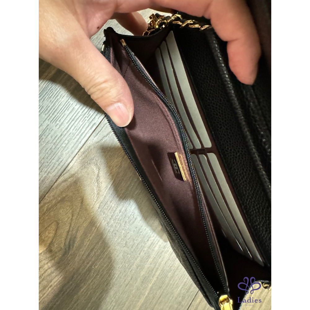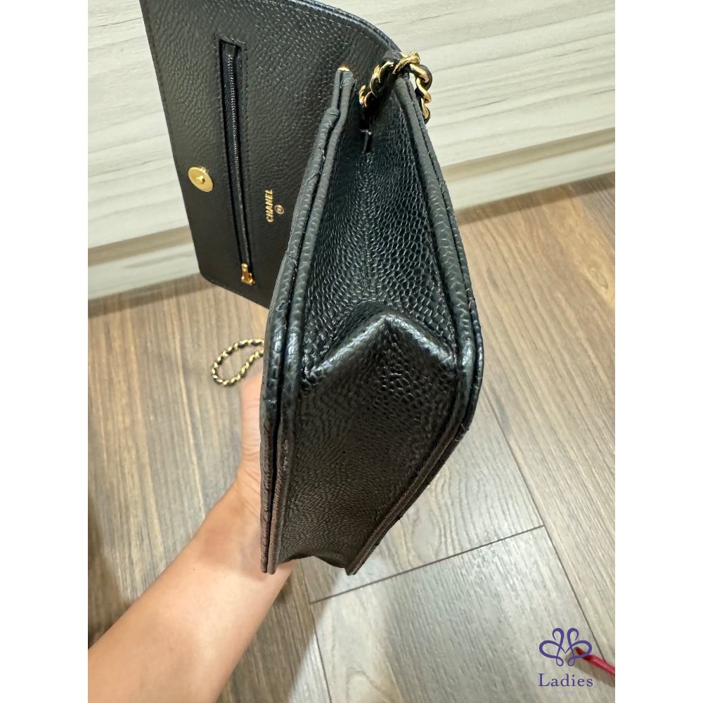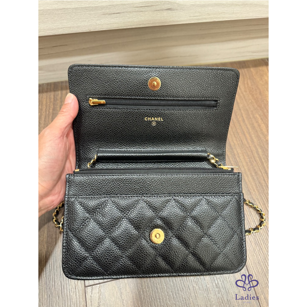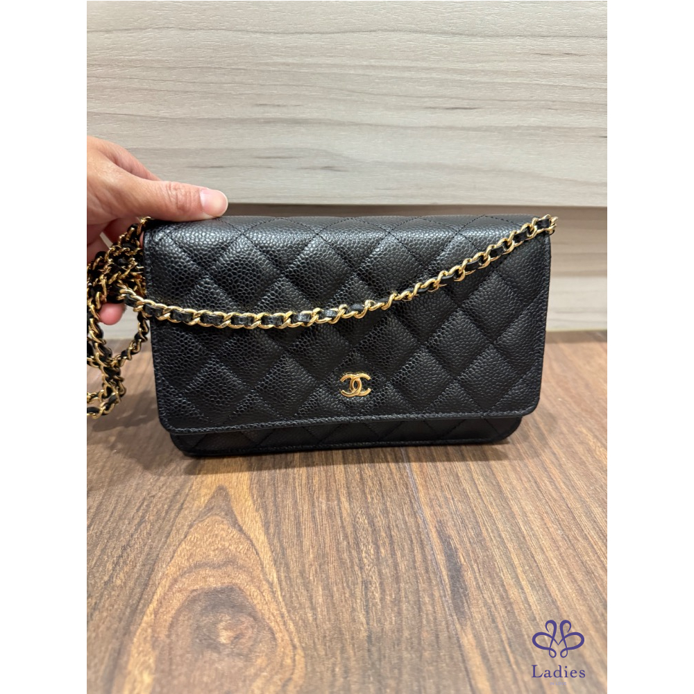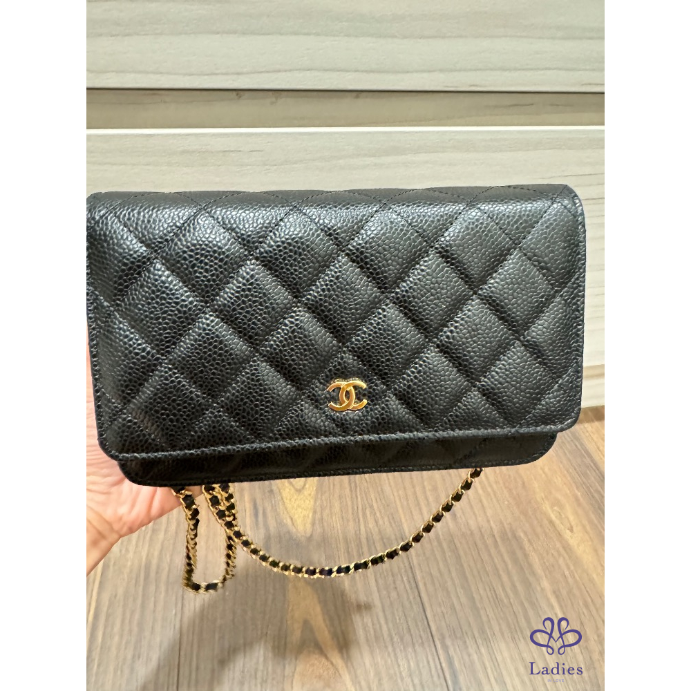 售香奈兒 Chanel woc鏈子錢包 黑金荔枝牛
