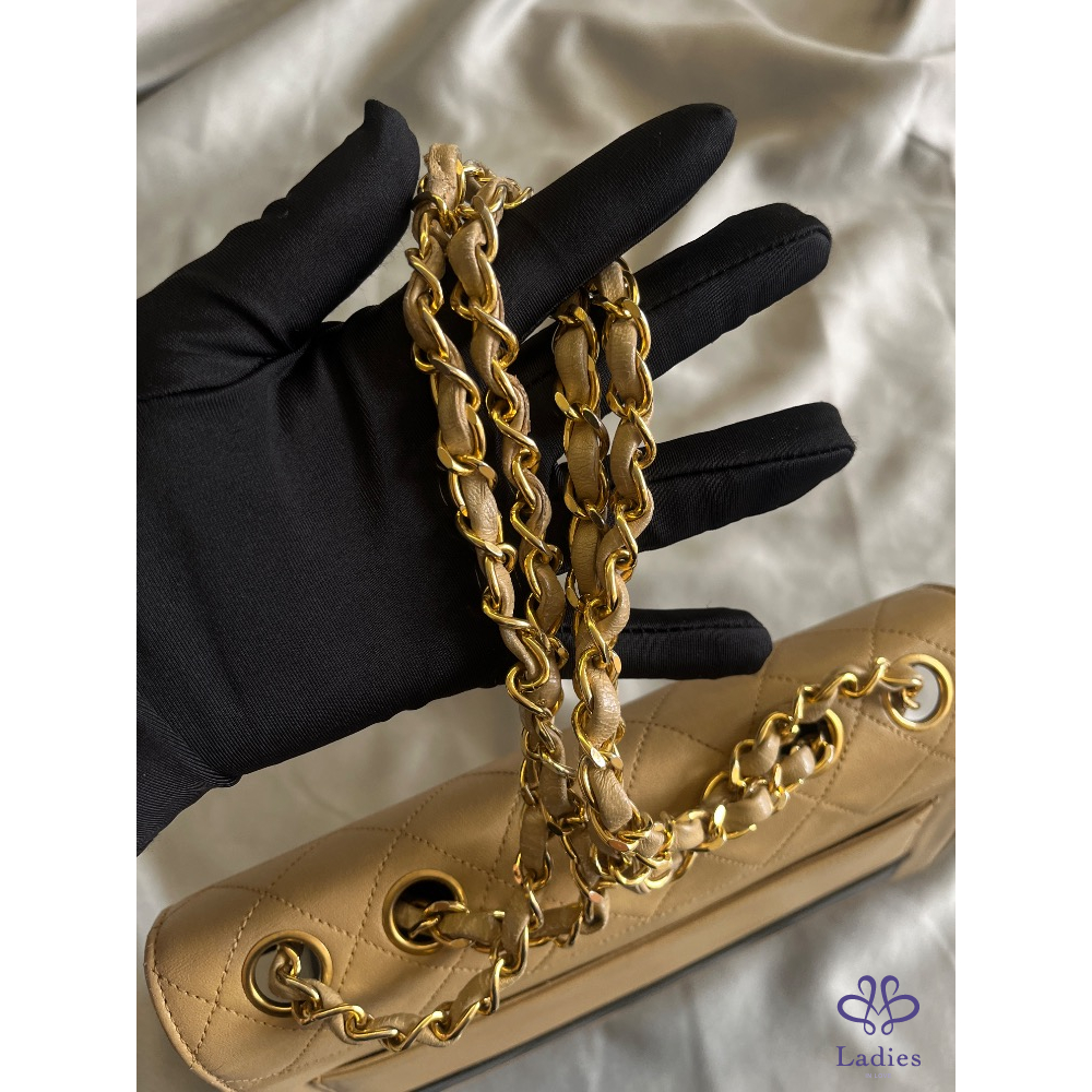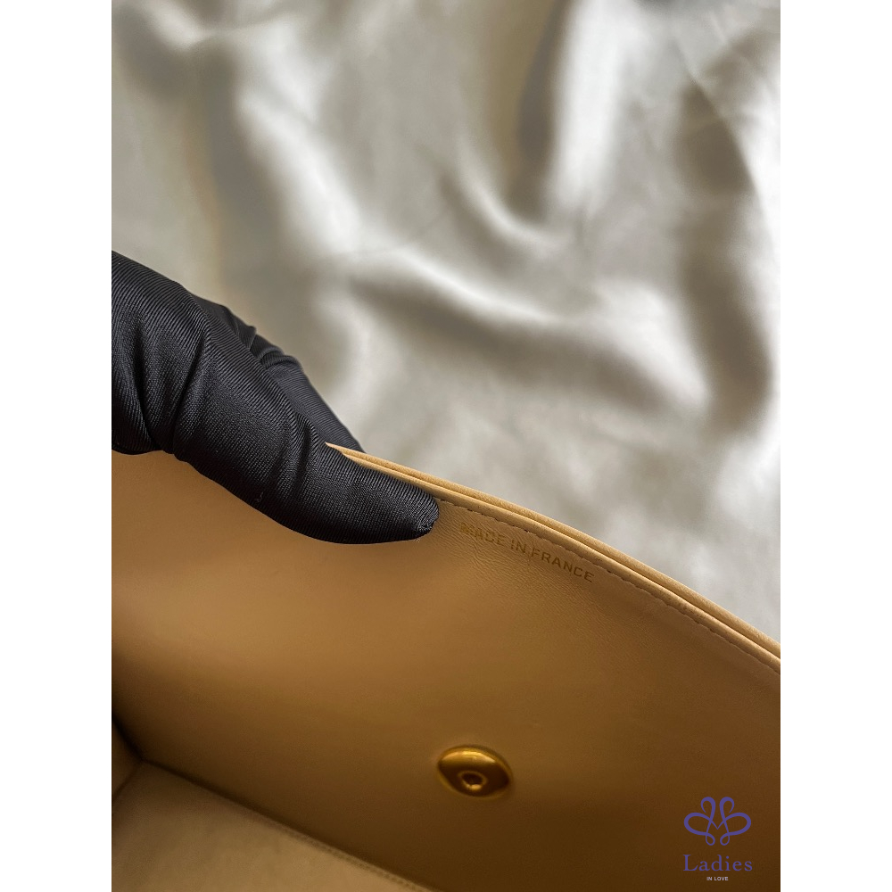 產品信息 超美的vintage梯形包款! 經典2.55金扣,梯形包背出去撞包機率超級低,杏黑的配色復古又吸睛 整體九成新,正常使用痕跡,內裡乾淨 尺寸約25*8.5*20cm 左右 附防塵袋、盒子、Entrupy國際證書 圖片已盡力拍攝高標請繞道謝謝