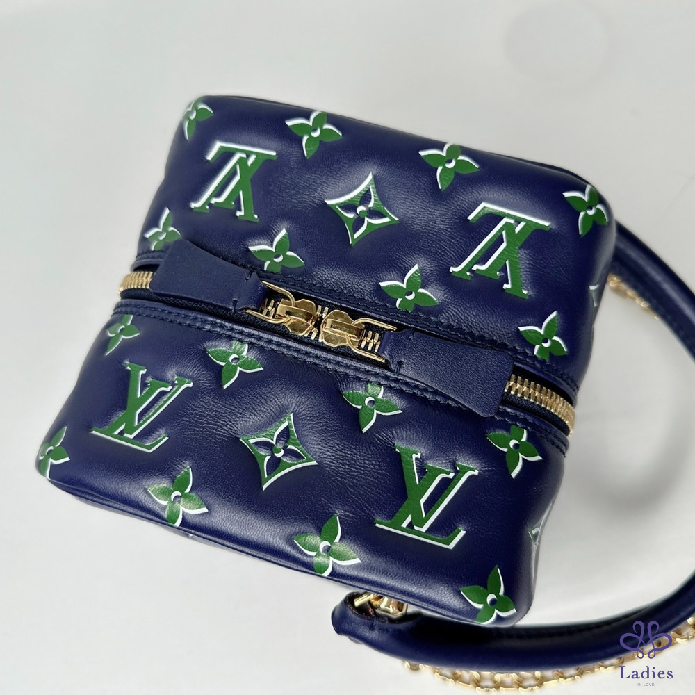 產品信息 【LV Square藍綠羊皮骰子包】 #23年秋冬秀款 #櫃上價近12萬 #閒置極新部份膠膜未拆 以藍綠的巴黎門牌配色,搭配蓬鬆Monogram壓花小羊皮製作 矚目的立方體構型在藍綠色襯托下,更具造型感 皮革手柄和精緻可拆式鏈帶 可作多種方式攜帶 整體包況約9成6新,二手商品均有正常使用/存放痕跡 型號:M23464 尺寸:16x16x16cm 附件:原廠盒、原廠紙袋、原廠防塵袋、原廠鏈帶、小卡 #B113121004
