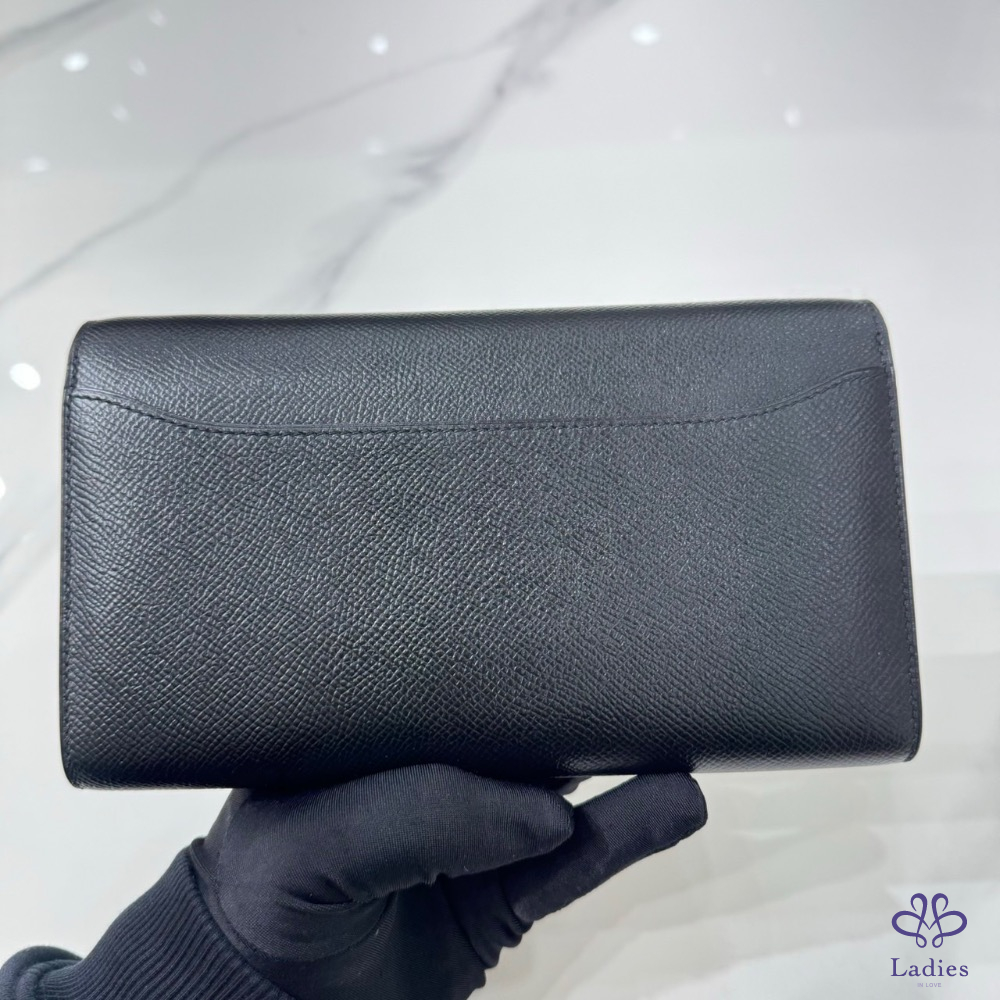 Hermes 康康 To Go黑色金扣,手機、鑰匙、各種卡、鈔票零錢通通能塞進去~非常符合出門輕便的需求。錢包內共有6個卡片夾層和2個大夾層,且中間有可以放置硬幣的拉鍊袋,後側也有實用的暗袋,再加上標誌性的H Logo 作為整個包的設計靈魂,真的是太香了????