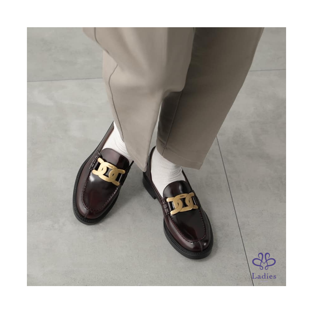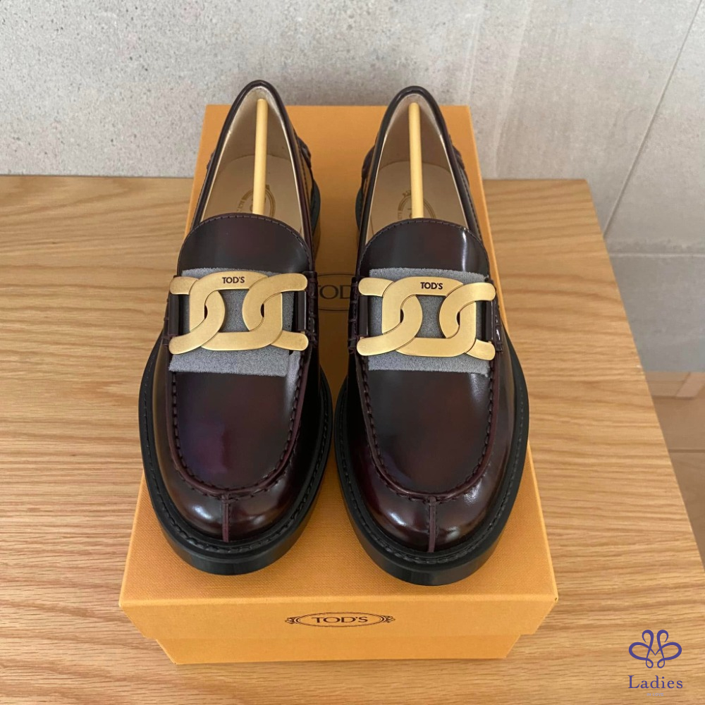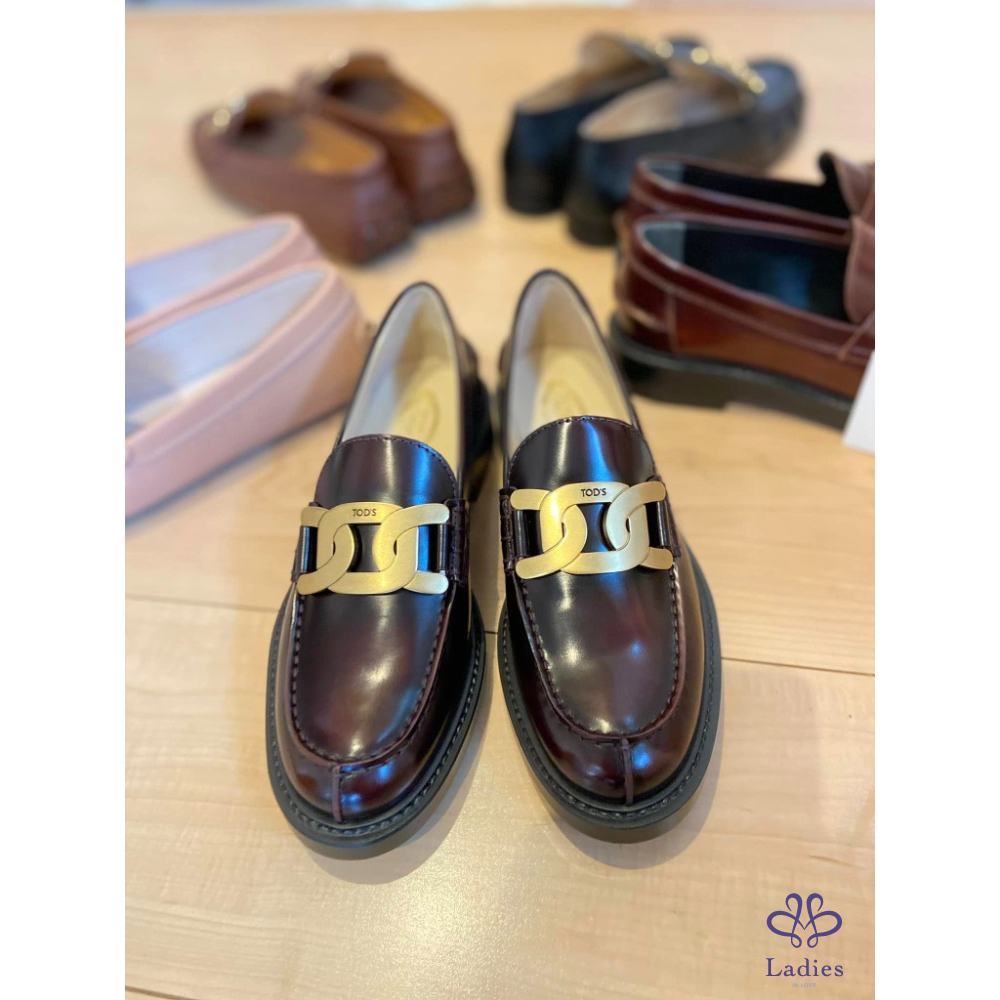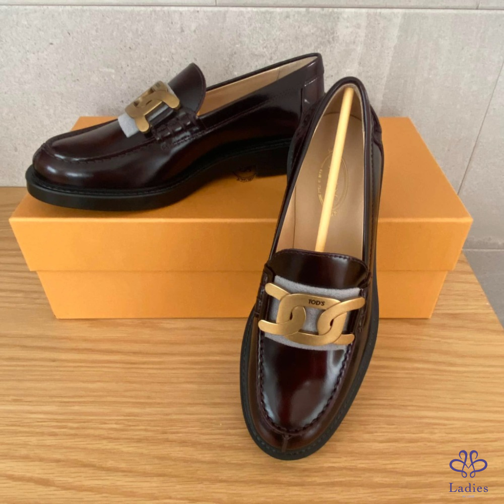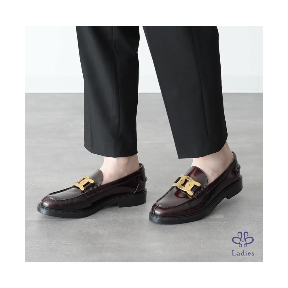 TOD’S Kate 霧面金屬扣 光面牛皮樂福鞋 酒紅色![]()