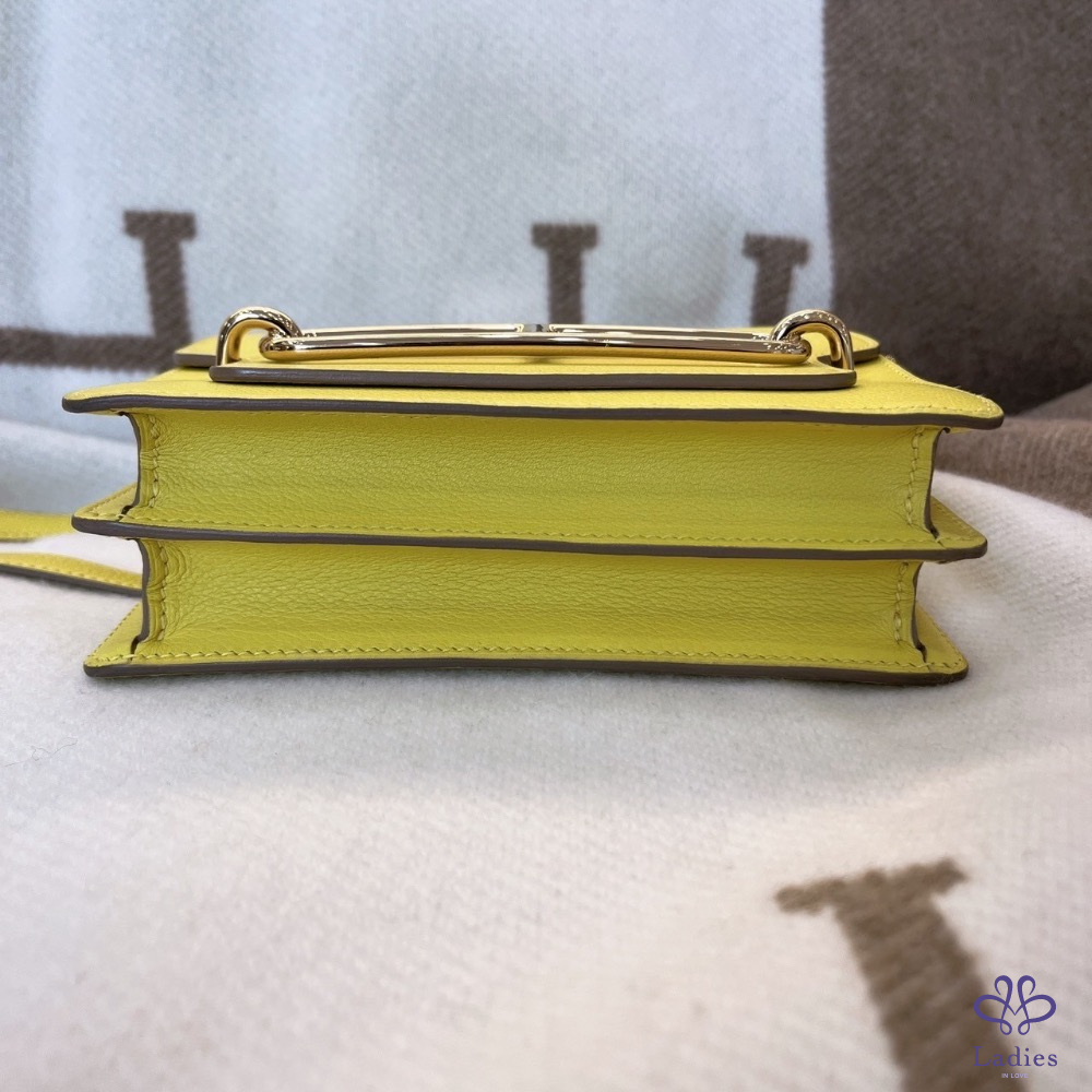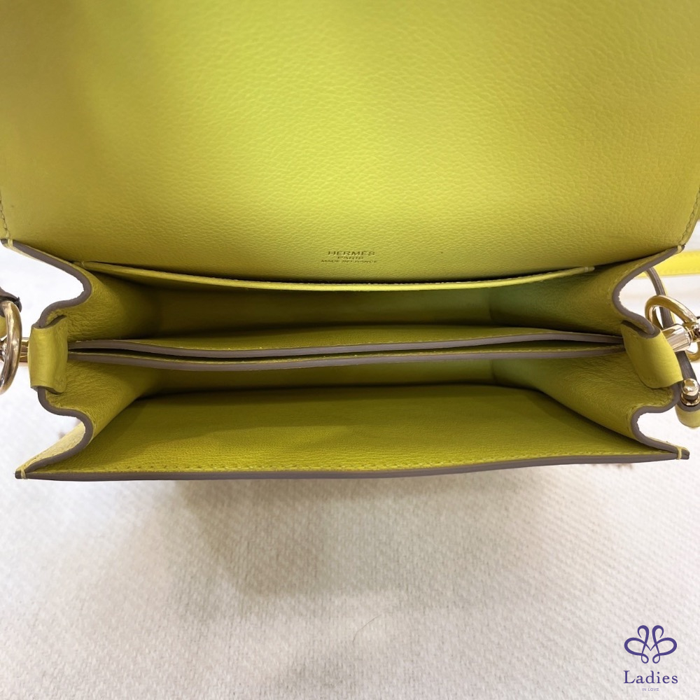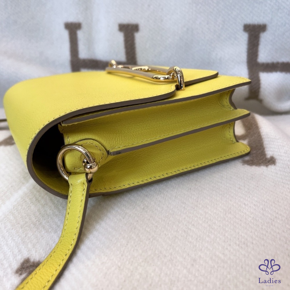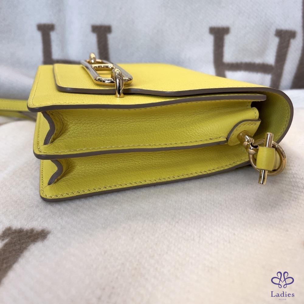 98新 Hermes Mini Roulis 9R Lime 檸檬黃香檳金釦 淺金釦 D刻 Evercolor