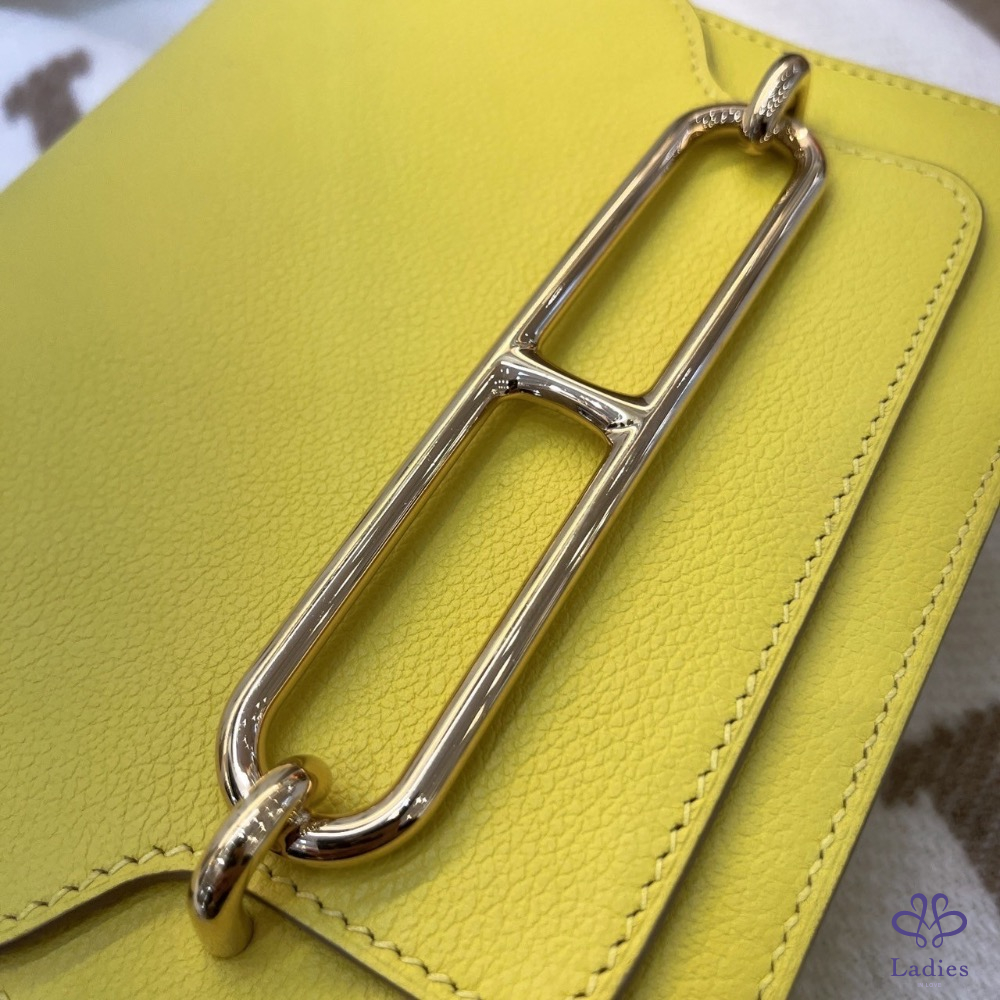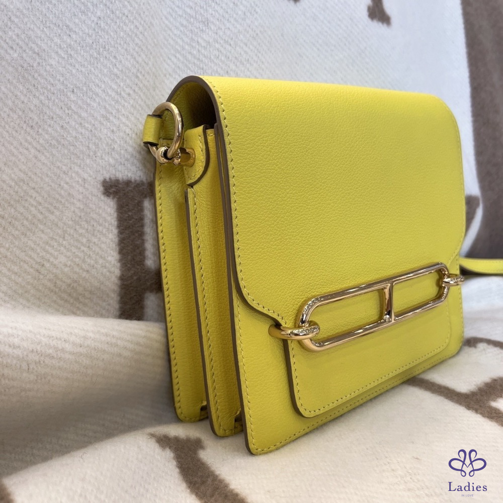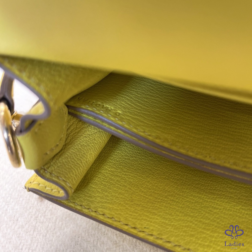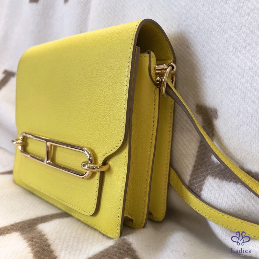 98新 Hermes Mini Roulis 9R Lime 檸檬黃香檳金釦 淺金釦 D刻 Evercolor