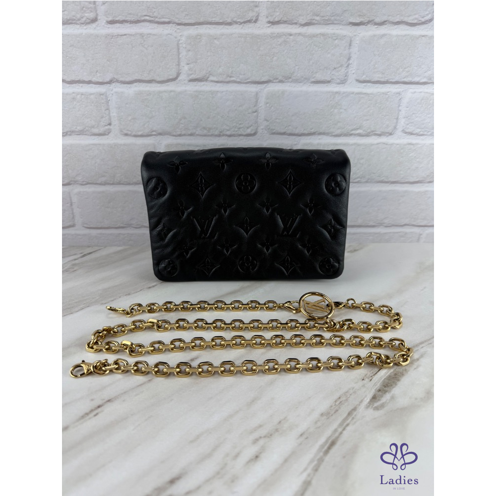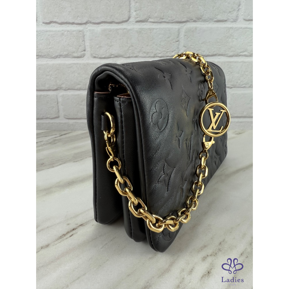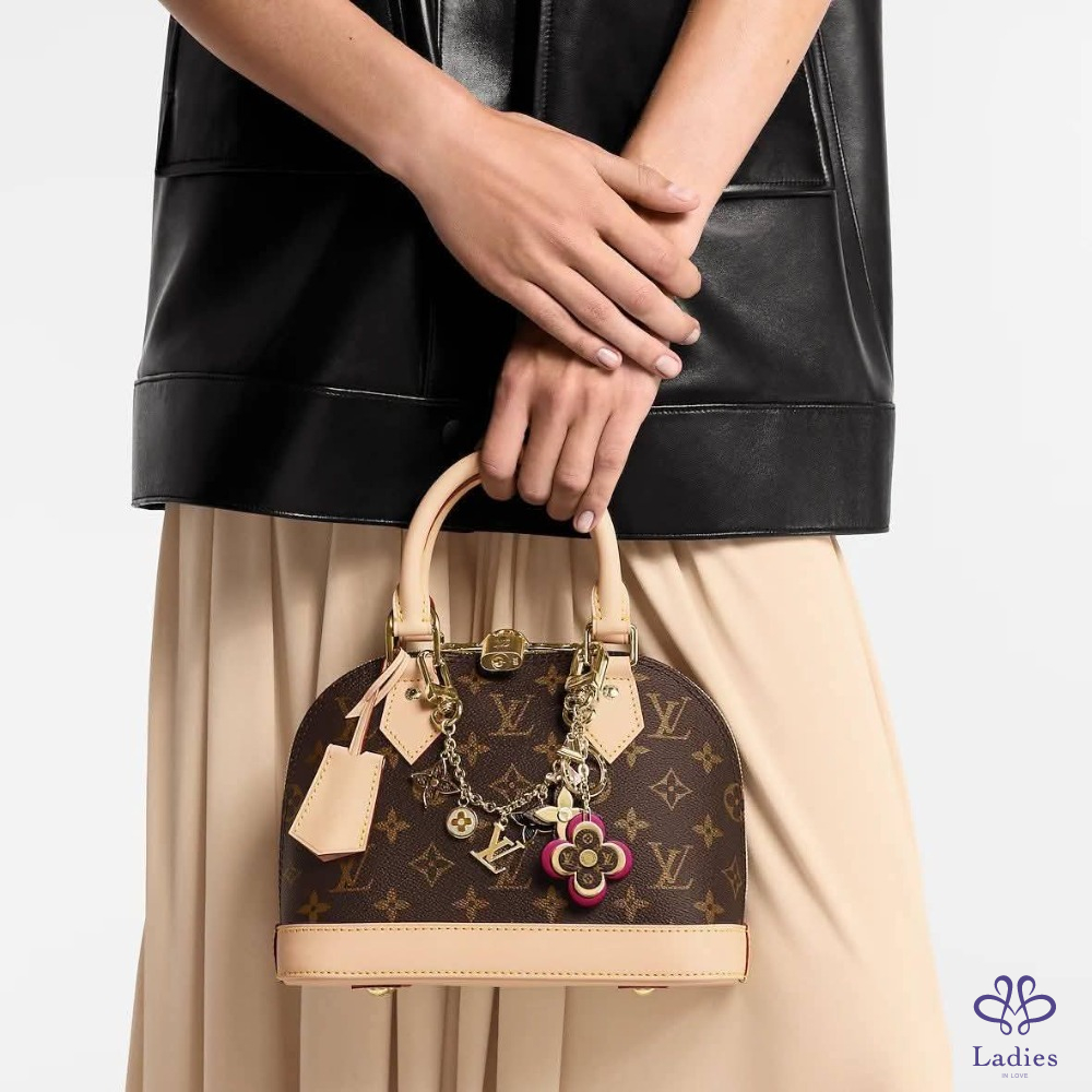 精緻優雅,華麗時髦,搭配可拆式鏈帶飾有Louis Vuitton吊飾,有多種攜帶方式,可手提亦可、肩背、斜背或掛於腰帶上,適合各種不同風格穿搭,專櫃九萬多。