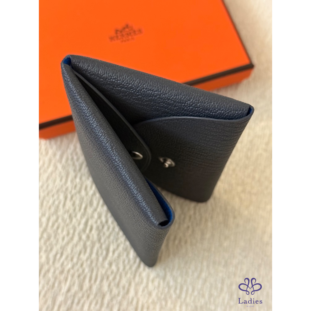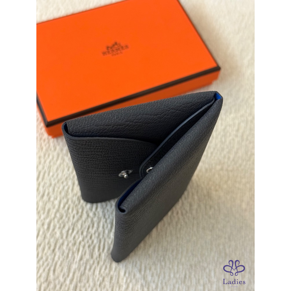 首頁 精品配件 全新全配 2025 W Hermes Calvi Duo 山羊皮卡夾 石板灰內拼藍