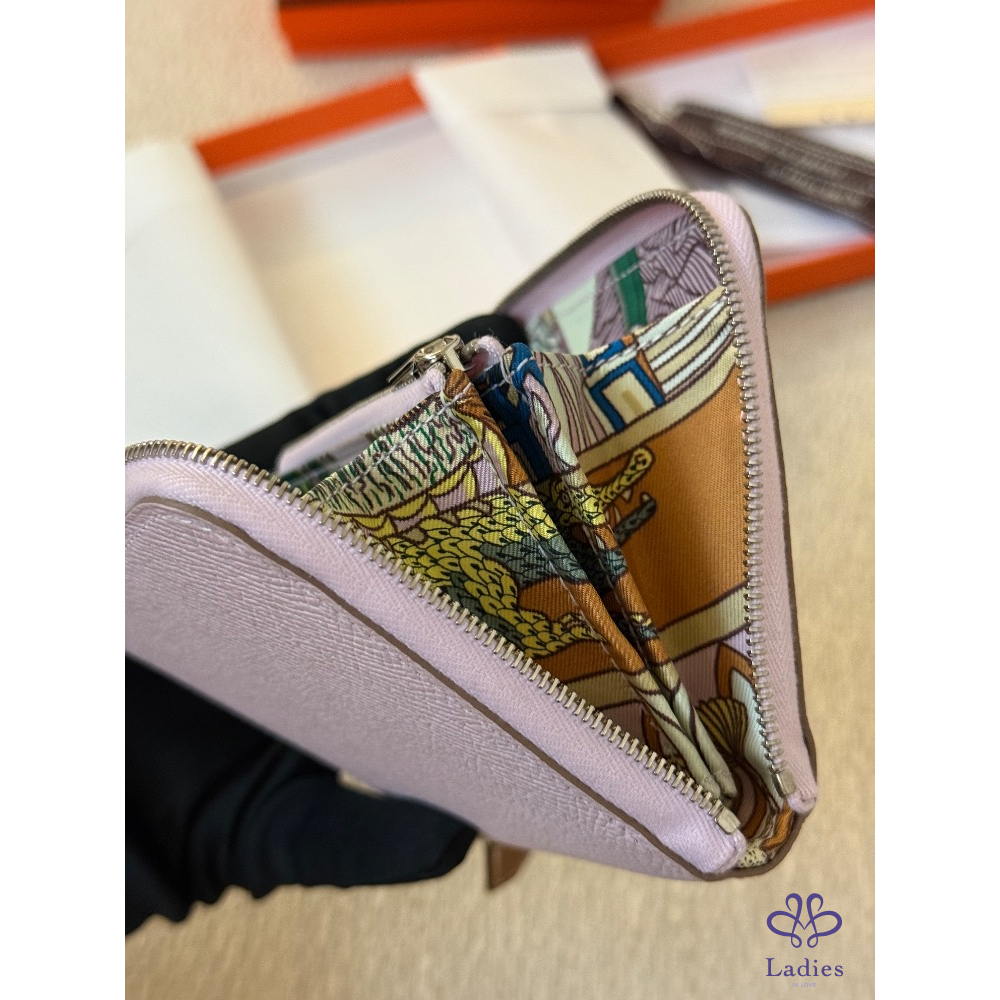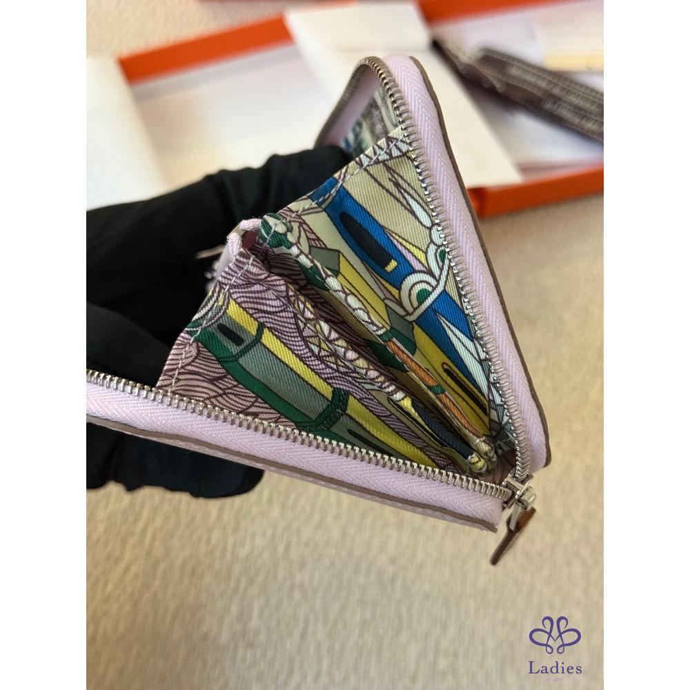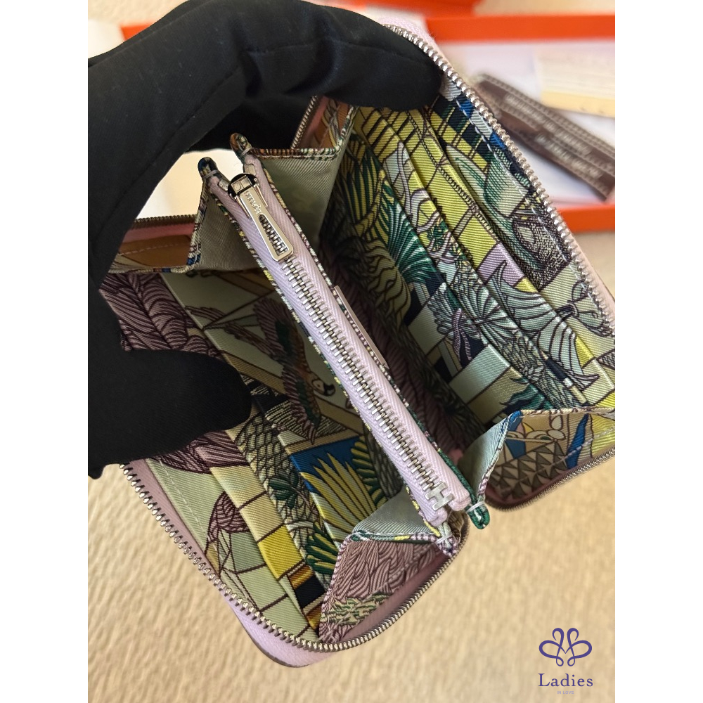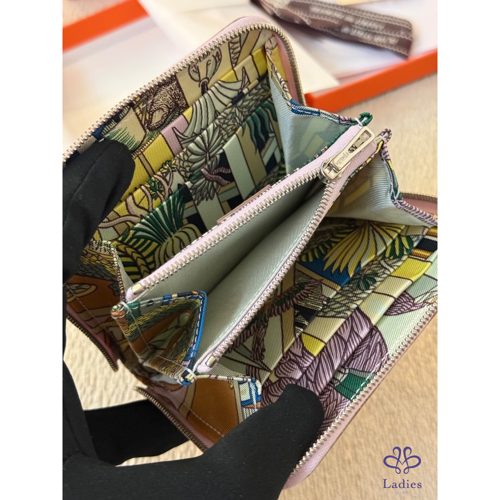 全新全配 Hermes Silk in compact wallet 夢幻紫粉絲巾短夾 2024 W 購證影本 動物之城