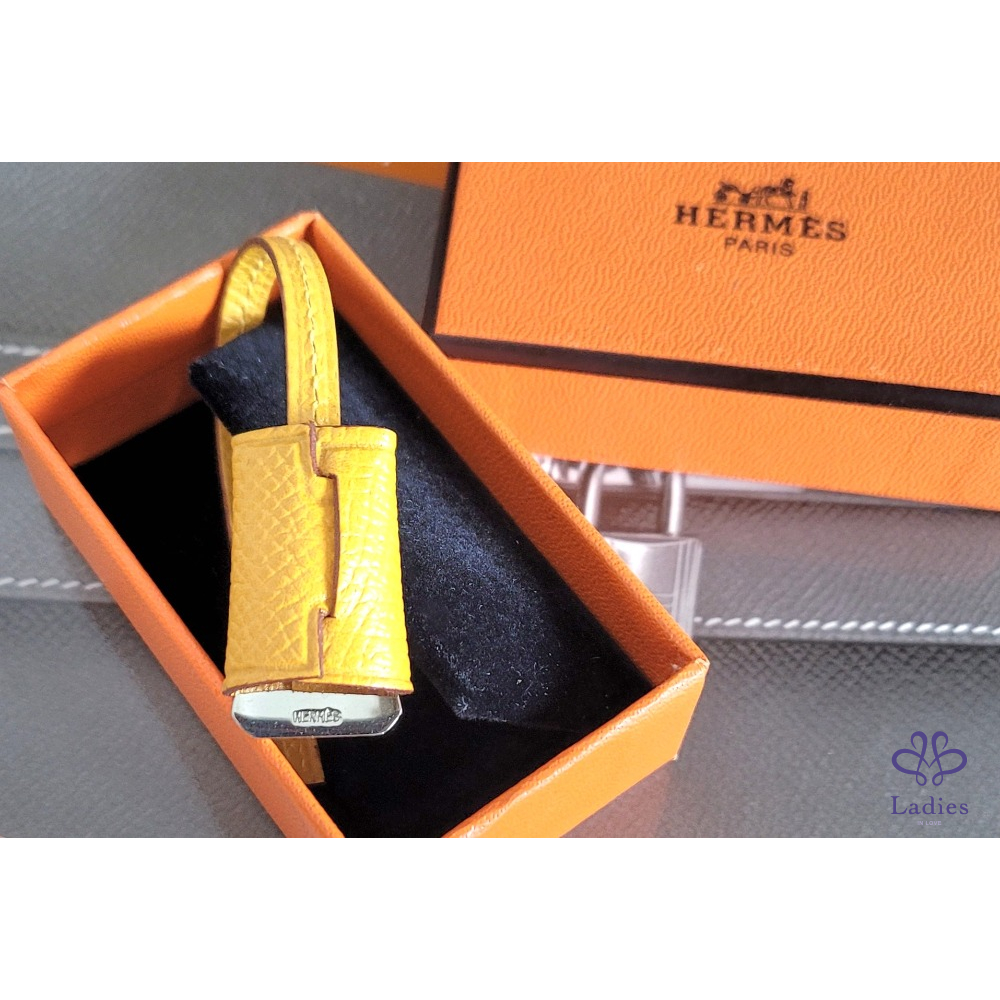 ~HERMES 未使用品 黃色皮革名牌掛飾