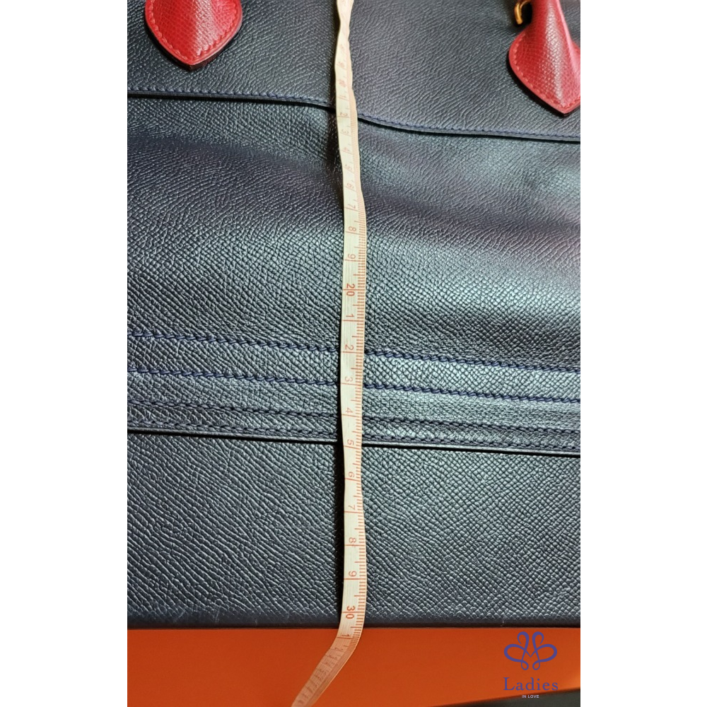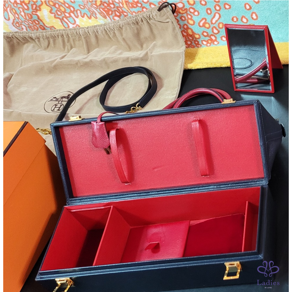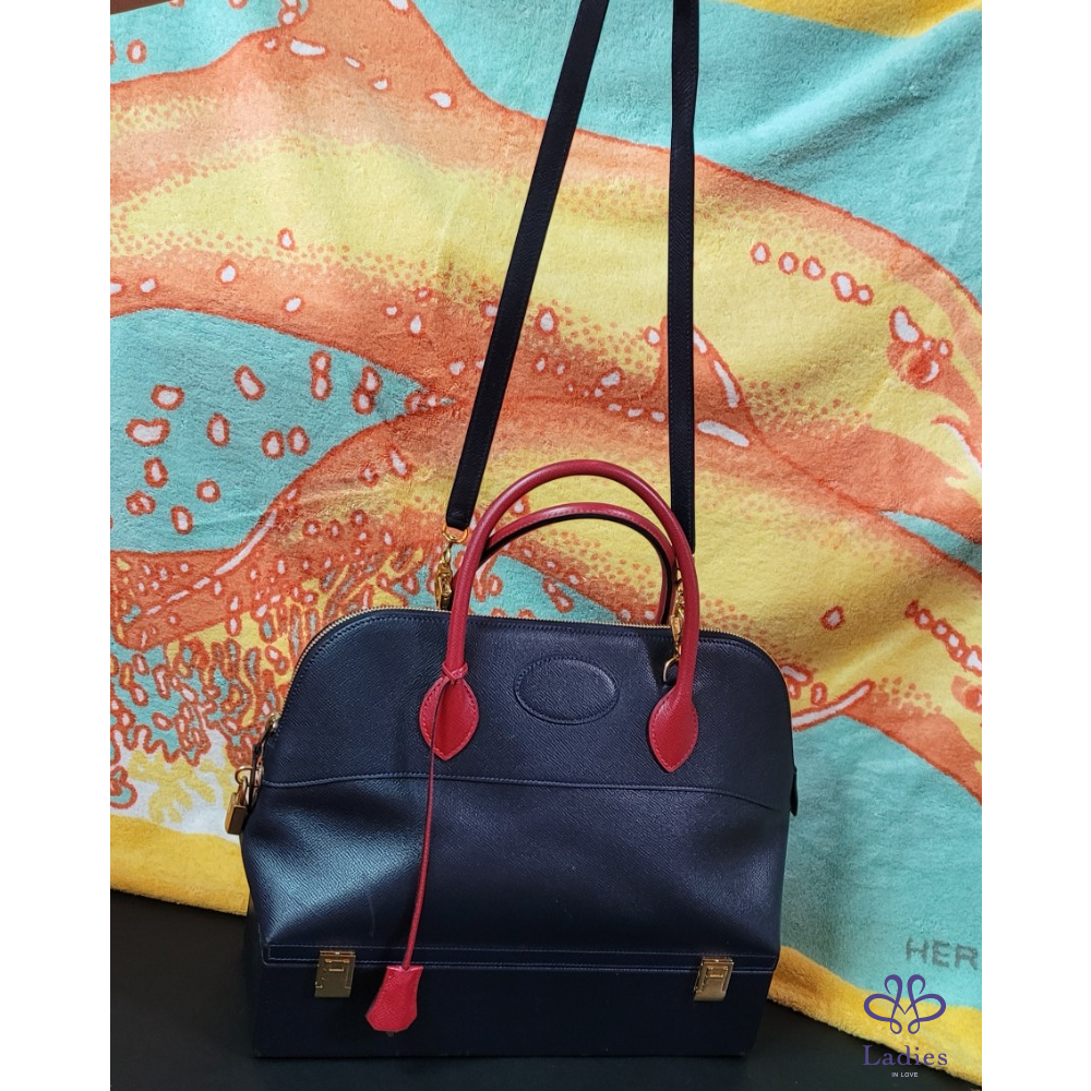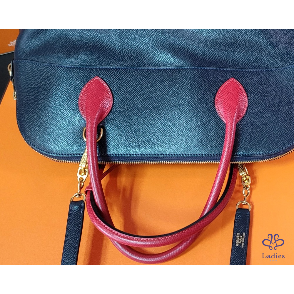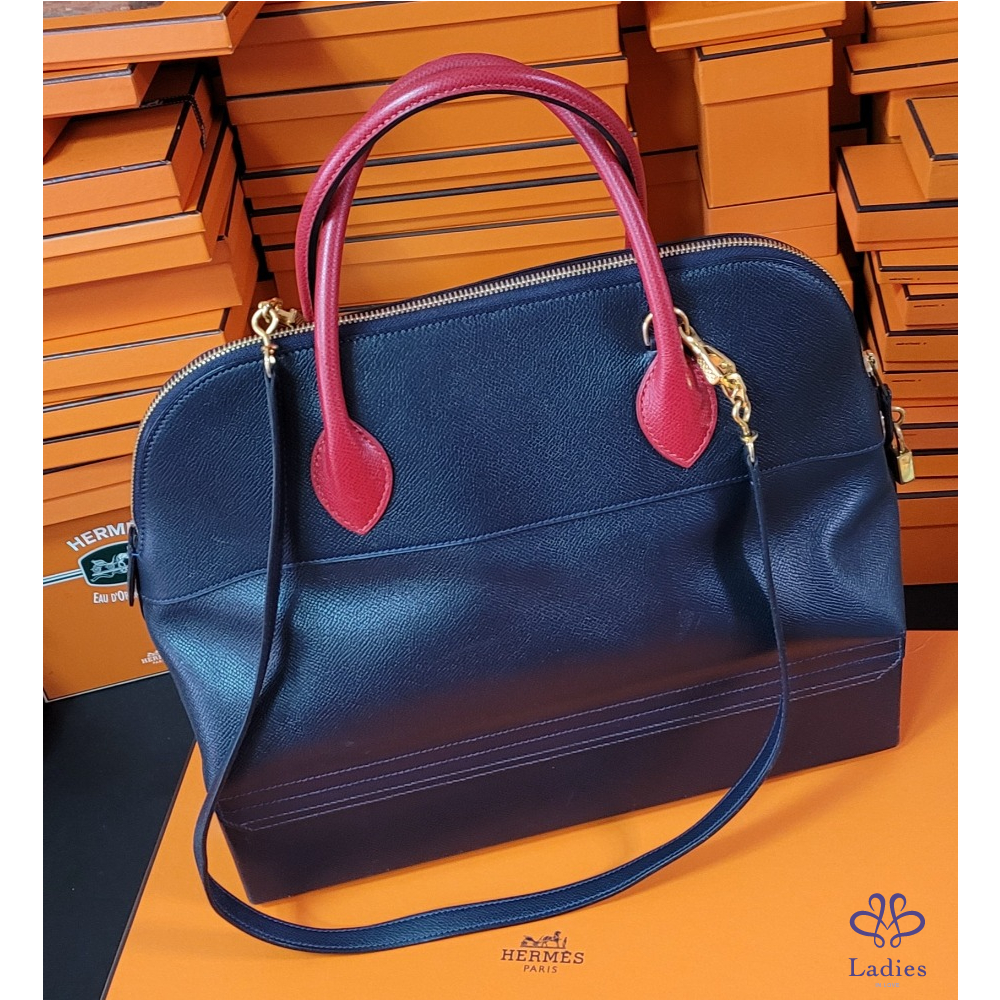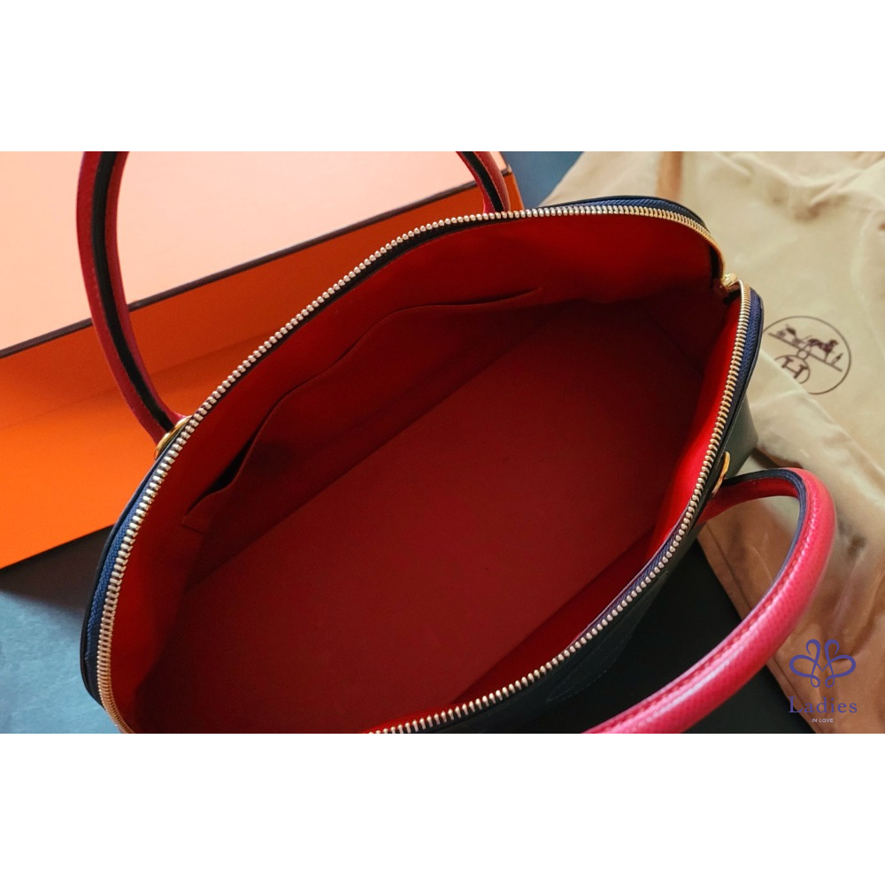 ~HERMES BOLIDE Vintage 金扣 藍黑+紅色 特別款雙拼色 肩背手提包