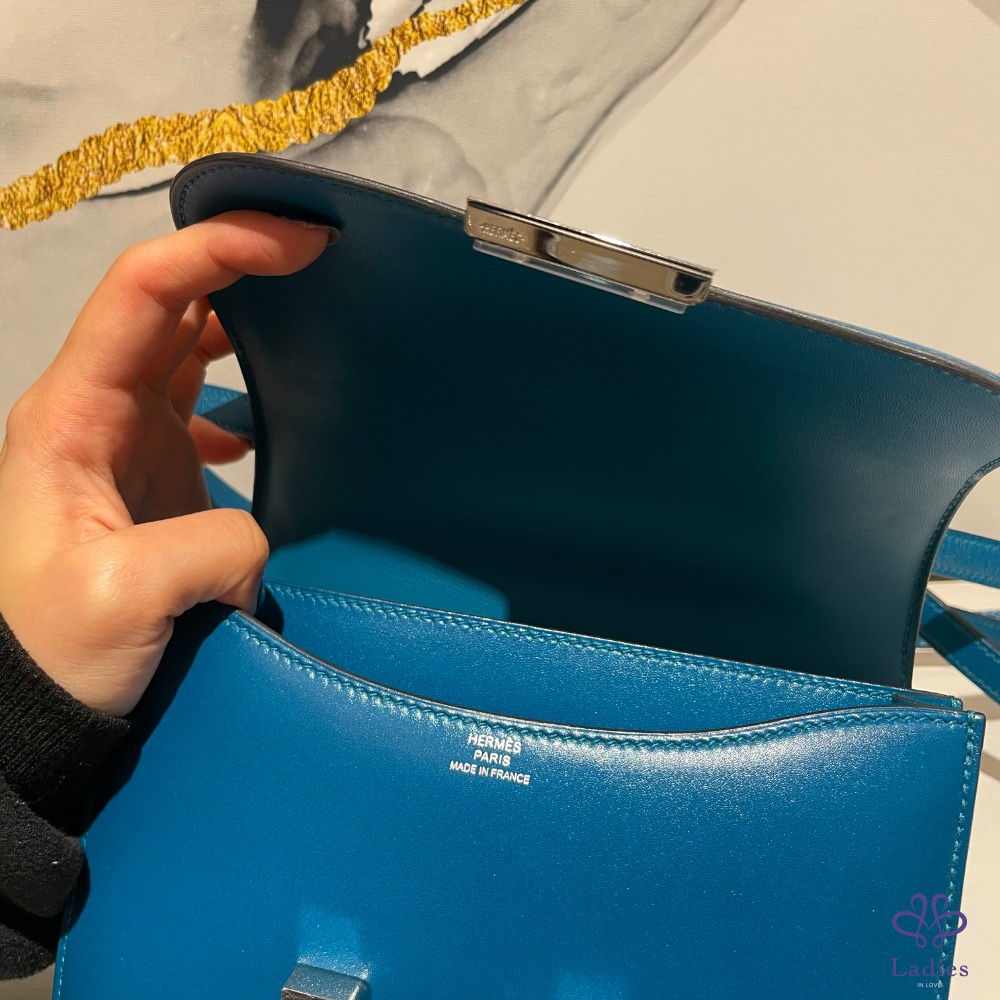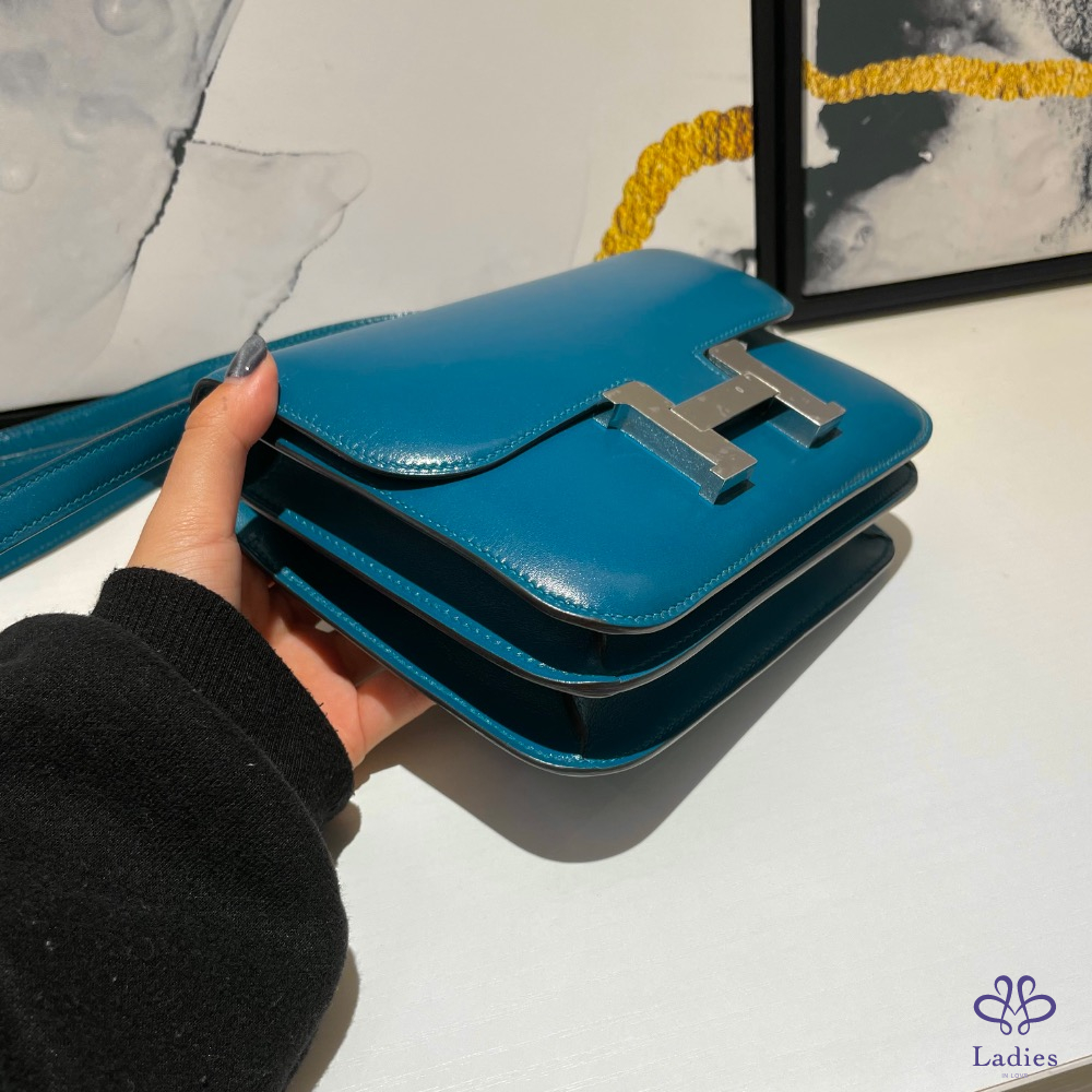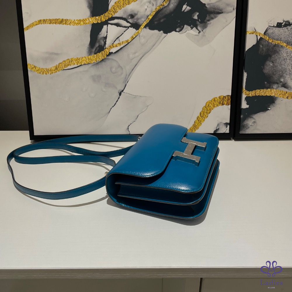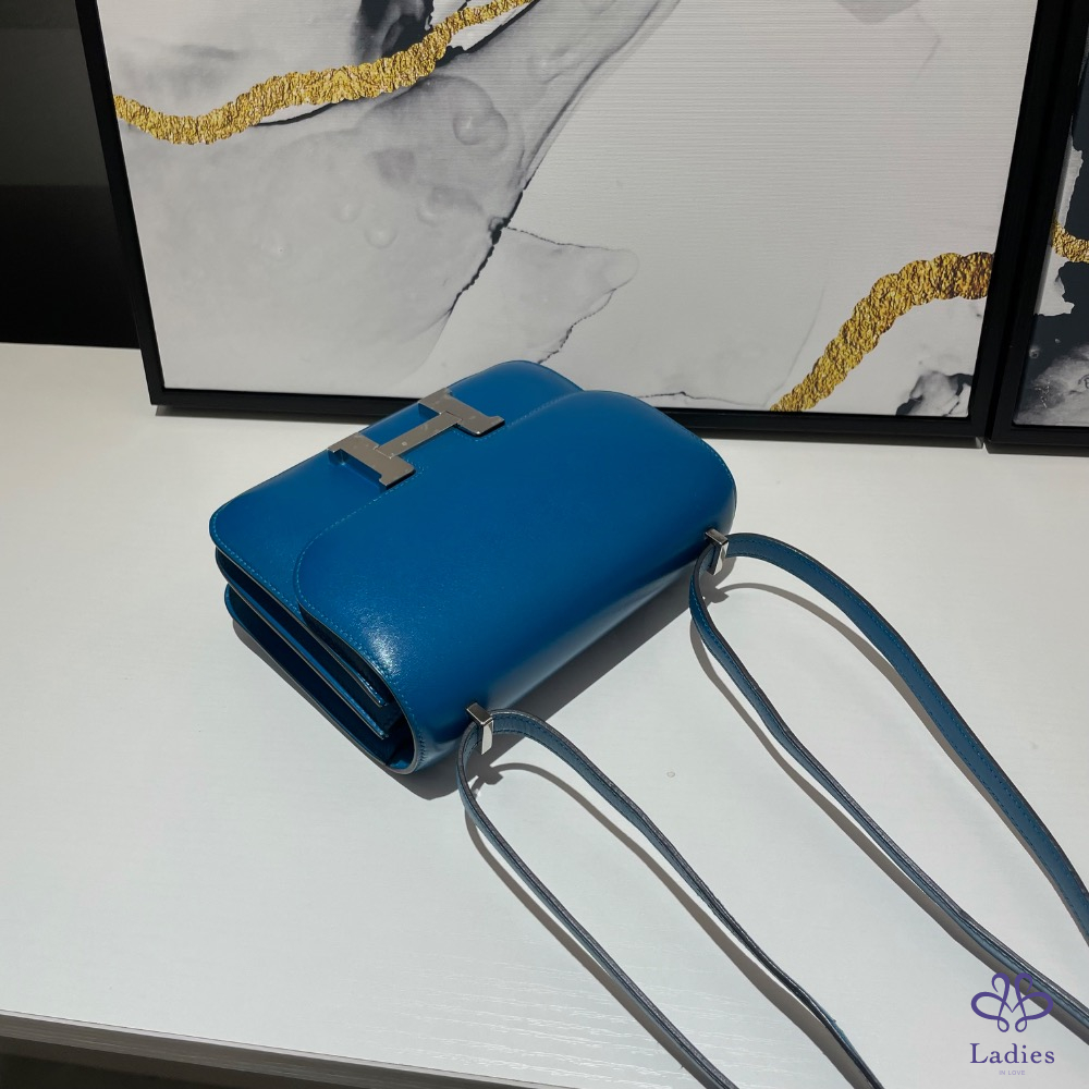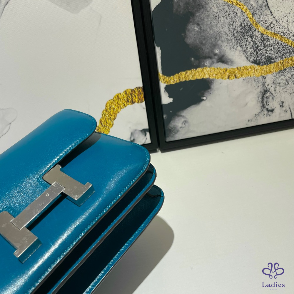 Hermes constance 19藍色銀釦