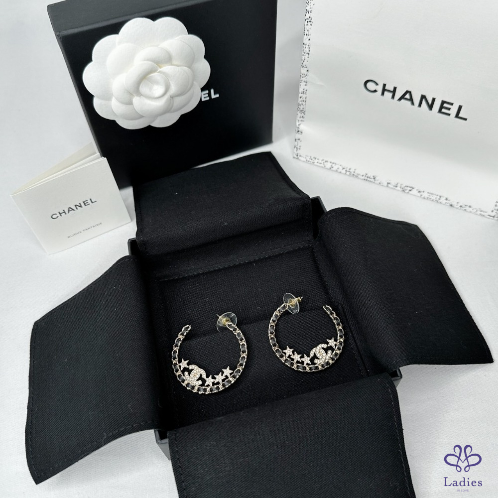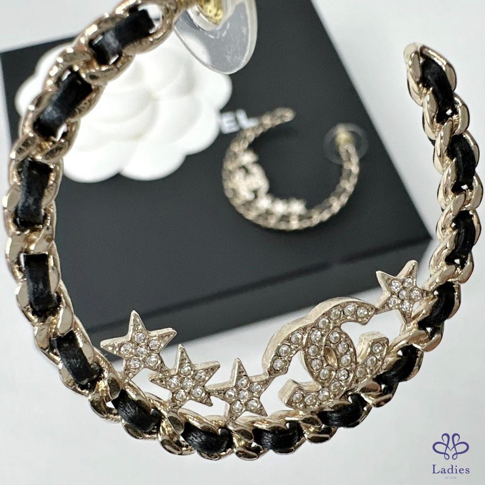 產品信息 【CHANEL 23C水鑽星星半圓耳環】 淡金色小雙c加星星,點綴水鑽閃閃發亮 這款超仙~實品真的美翻 整體品項新舊如圖,二手商品均有正常使用/存放痕跡 尺寸:直徑3.8cm 附件:原廠盒、原廠紙袋、原廠防塵袋、說明書 #A113102303