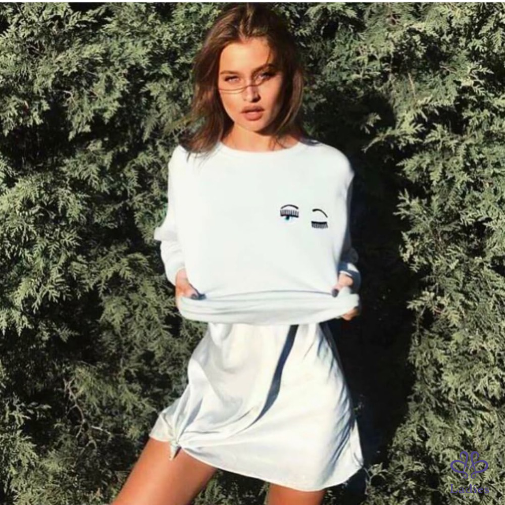 全新Chiara Ferragni可愛眨眼刺繡白色衛衣
